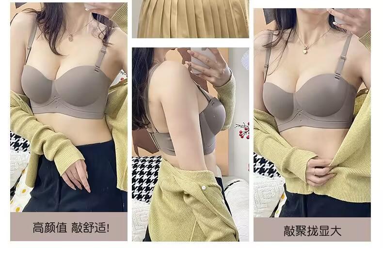 Ropa Interior Sin Costuras para Mujer Pecho Pequeño Grande Almohadilla de Pecho Engrosada Pecho Recogido Anti-caída Sujetador Sling Push-up sin Aros