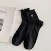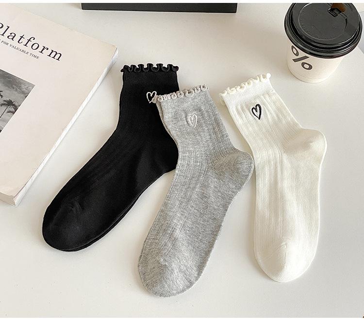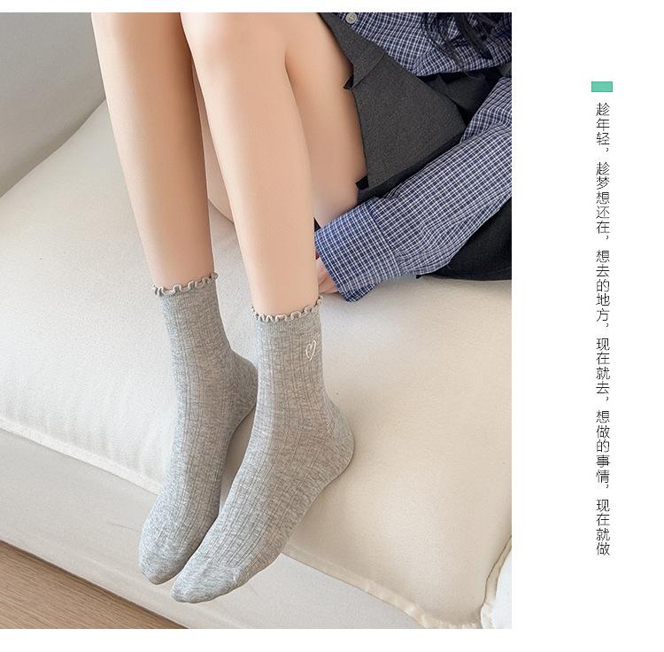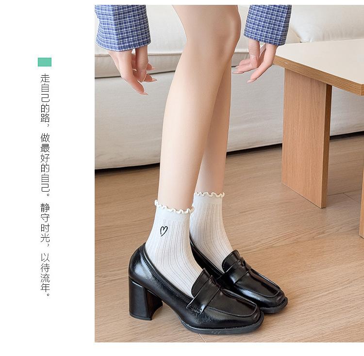 Calcetines de Amor con Oreja de Madera Calcetines Cortos para Mujer Calcetines Cortos de Encaje de Algodón Fino de Verano Japonés Calcetines Blancos de Barco Calcetines de Primavera y Otoño para Mujer