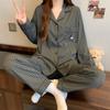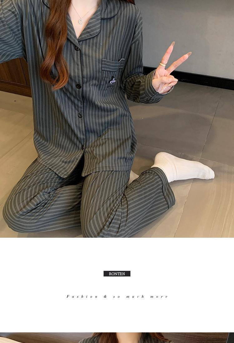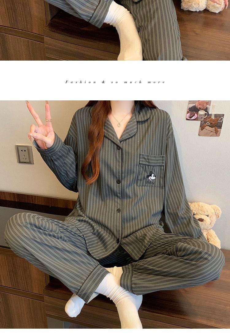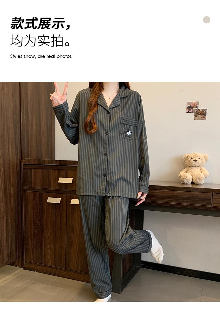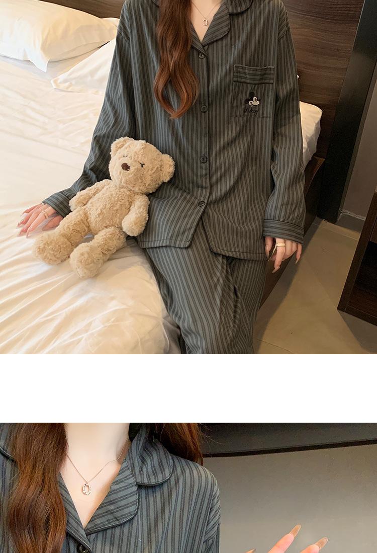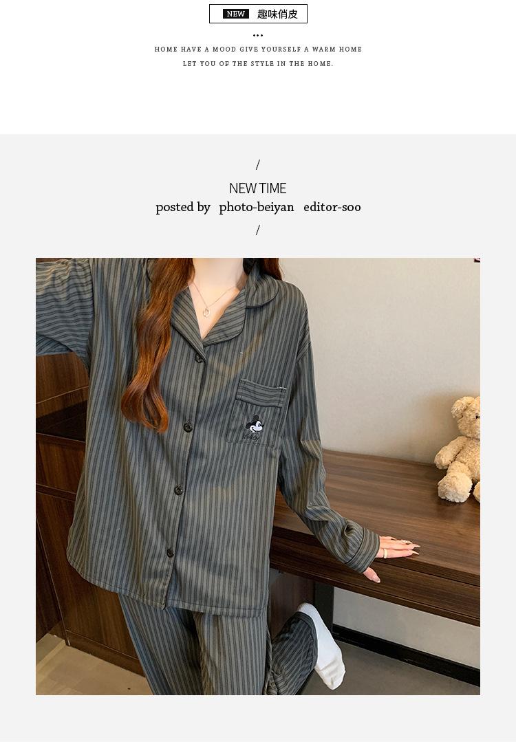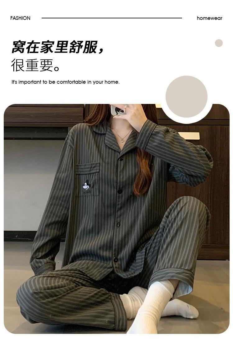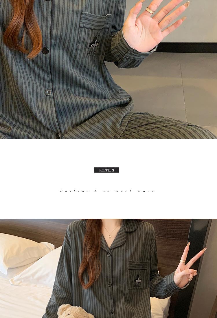Pijamas coreanos lindos de dibujos animados bordados para mujer Primavera Nuevo Pantalones de manga larga Ropa para el hogar Trajes de moda Venta al por mayor
