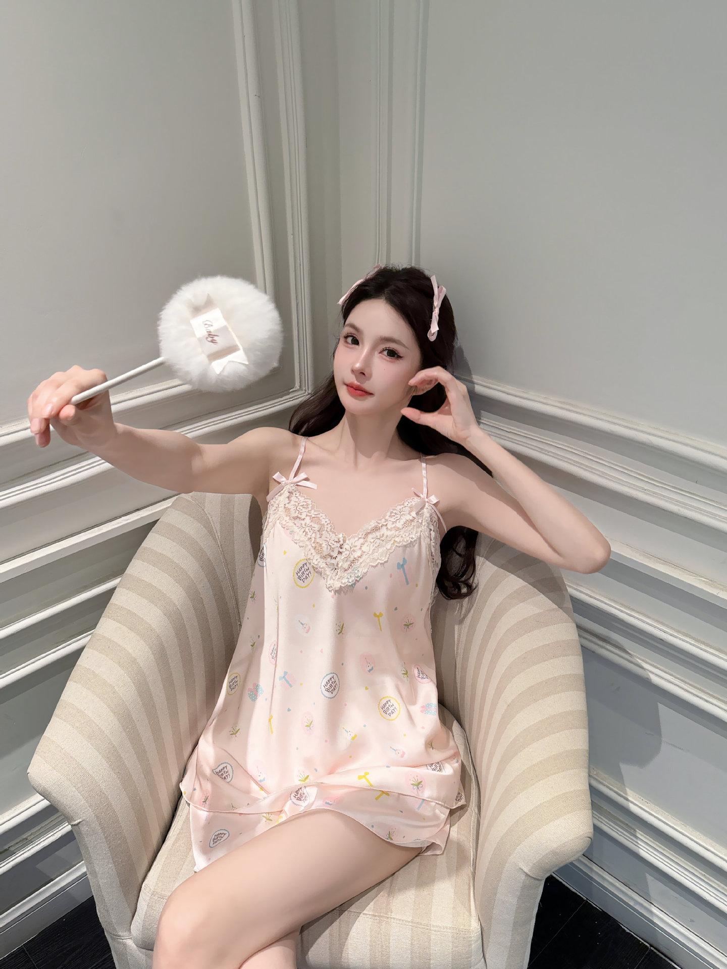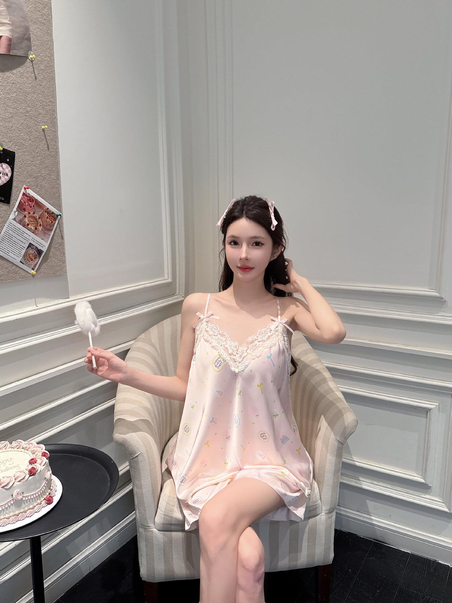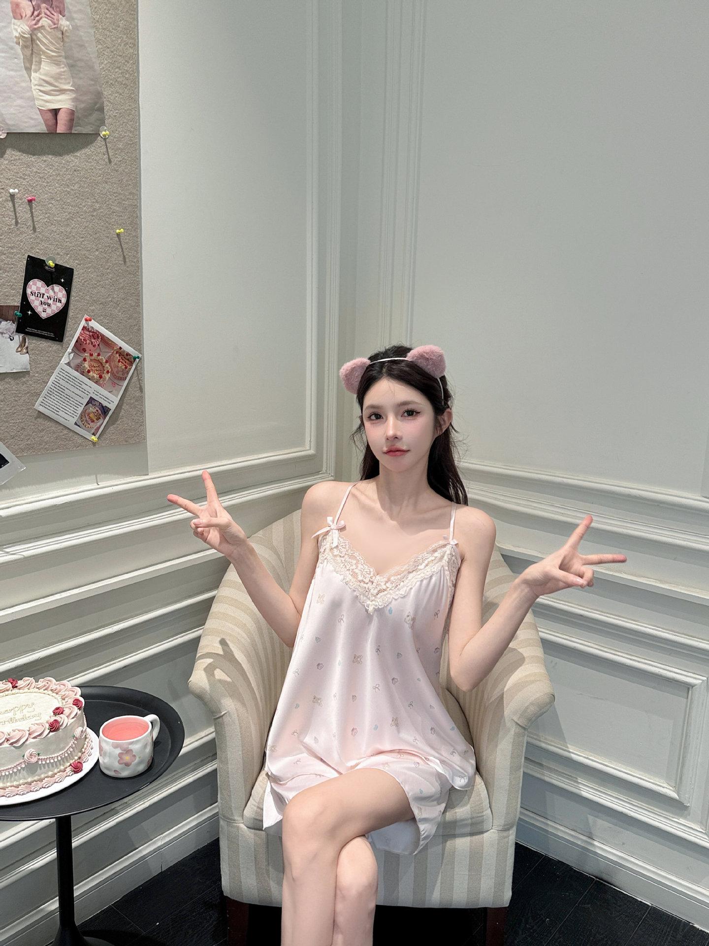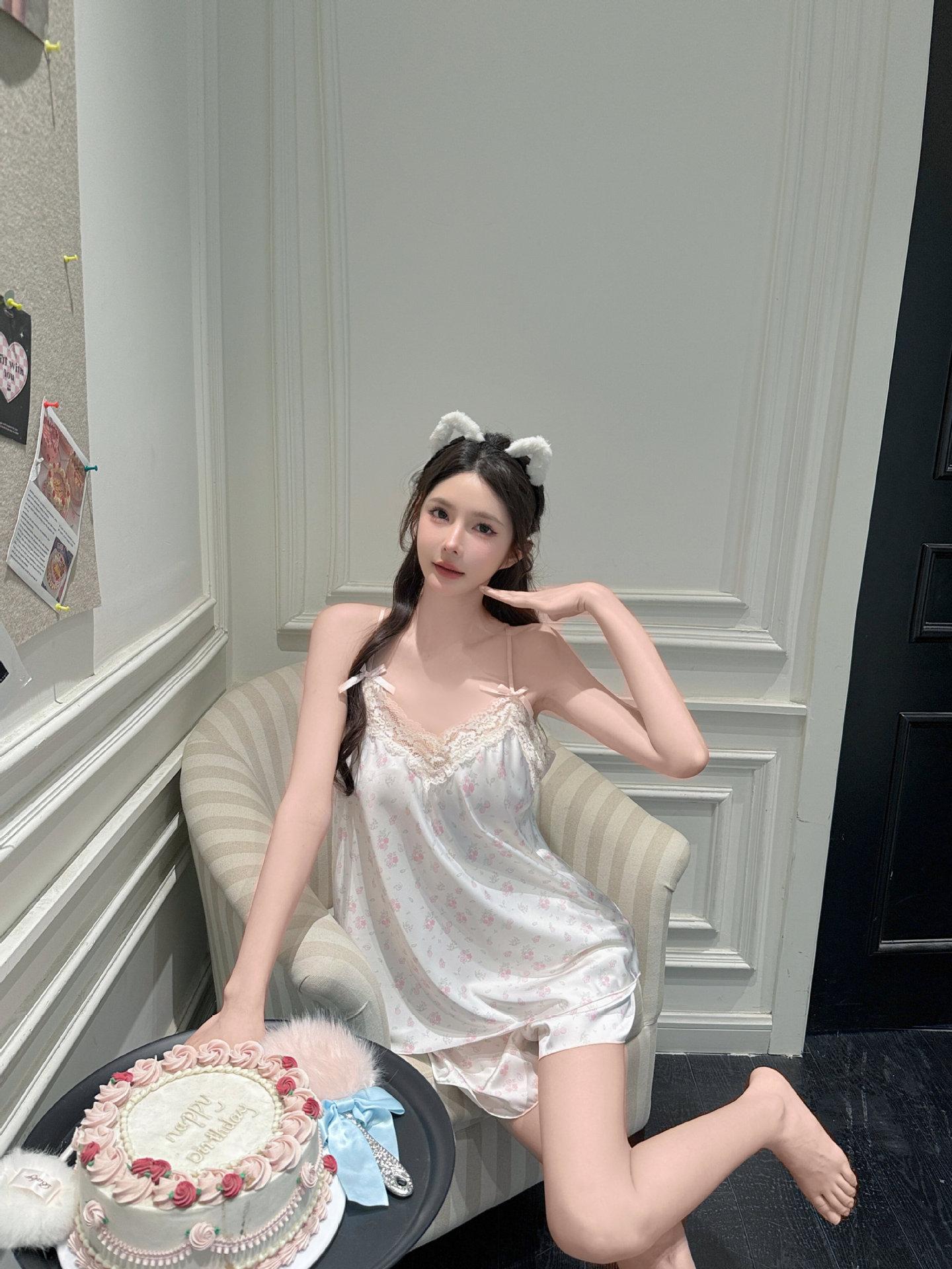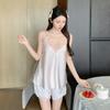 Conjunto de dos piezas de pijama de seda helada para mujer, pantalones cortos con tirantes, ropa de casa cómoda de manga larga para principios de primavera