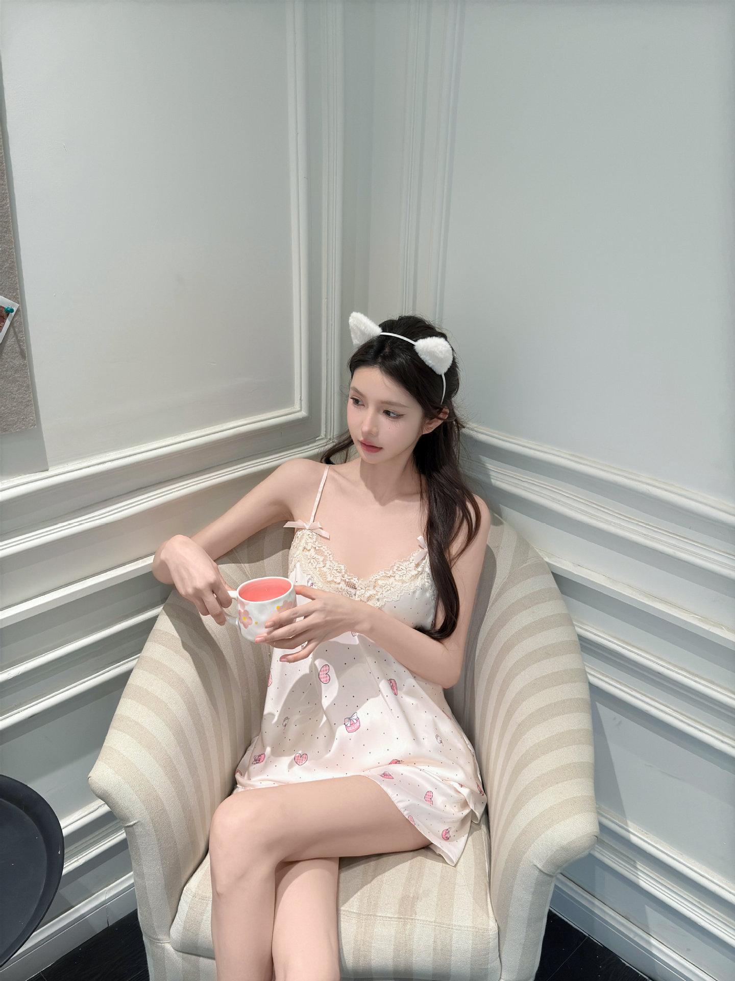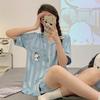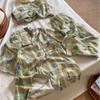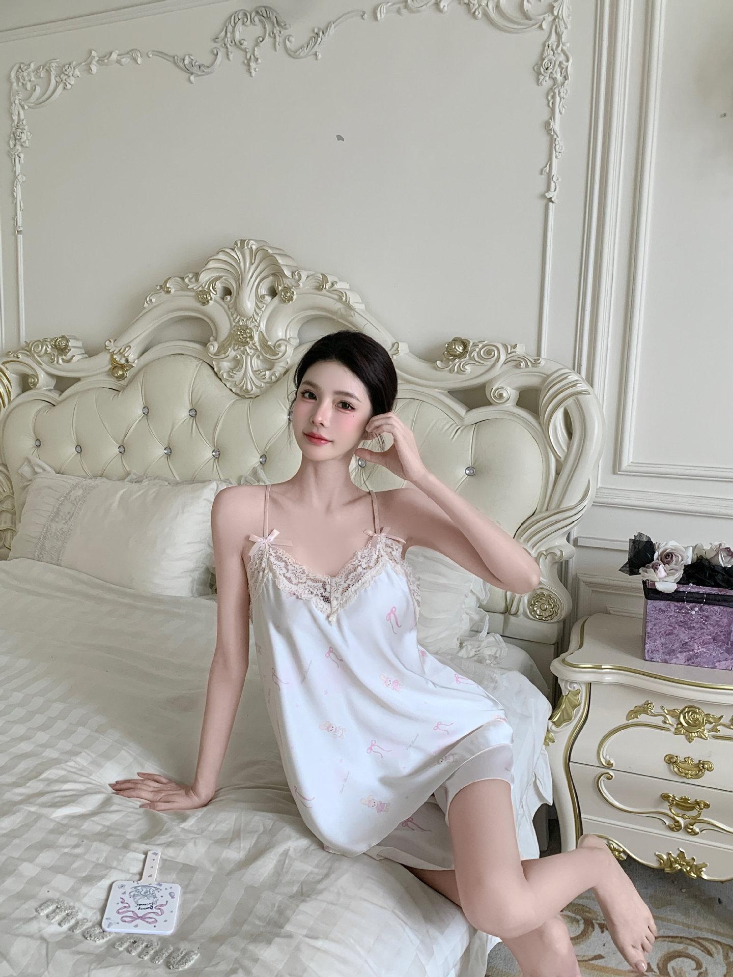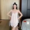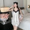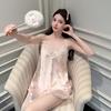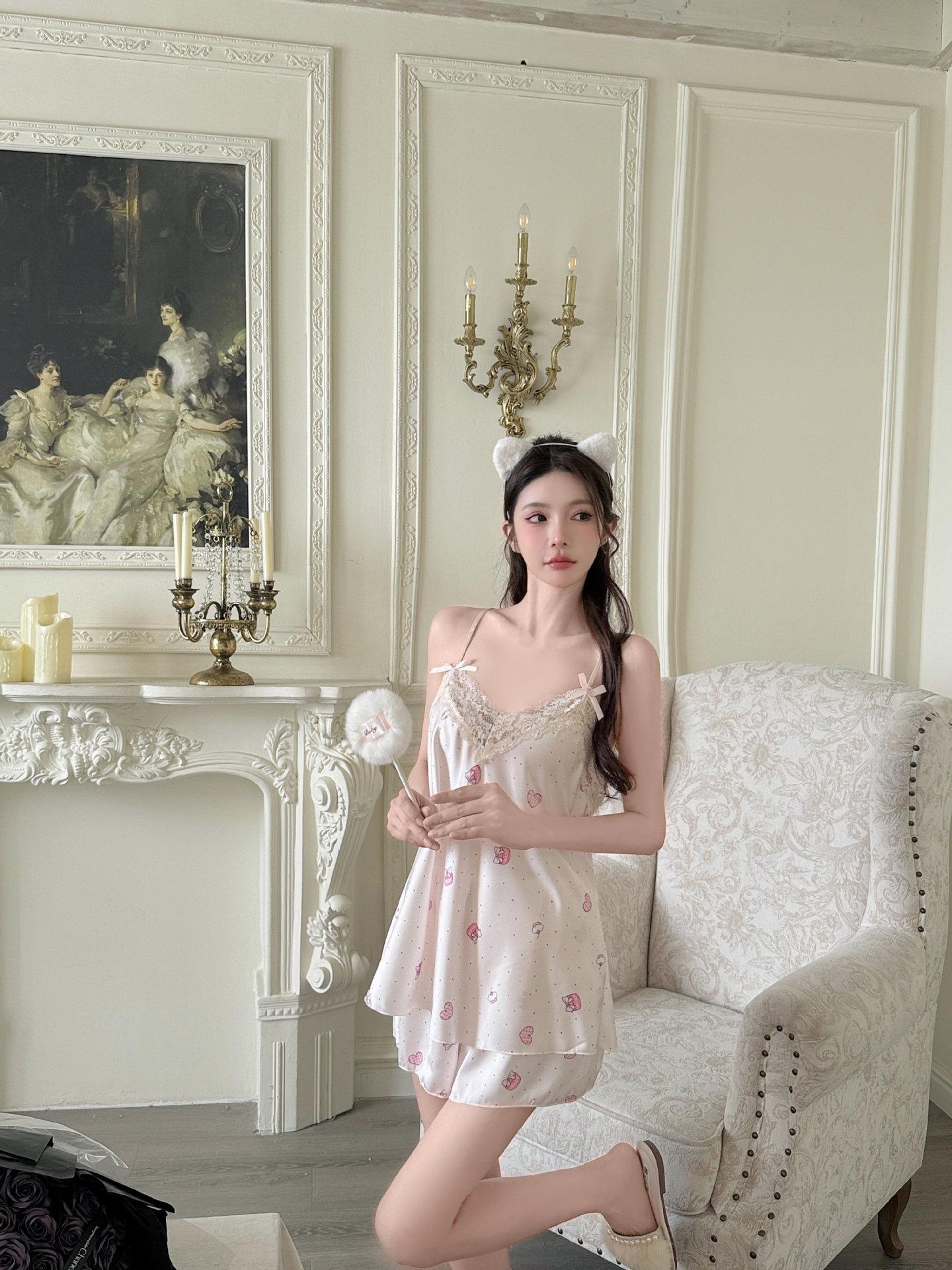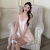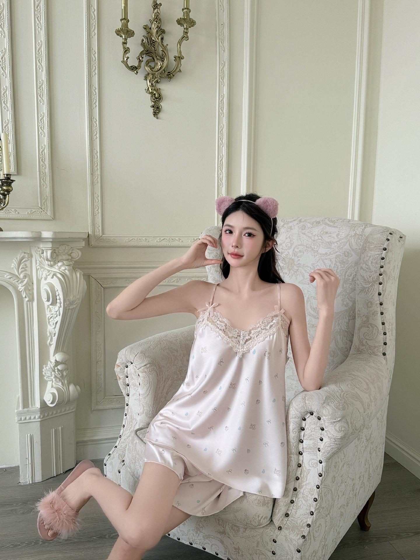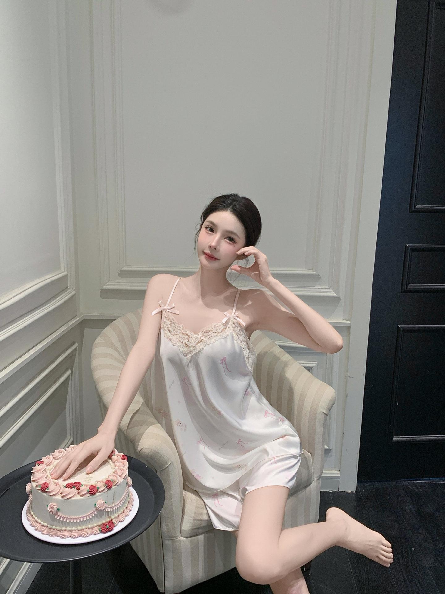 Conjunto de dos piezas de pijama de seda helada para mujer, pantalones cortos con tirantes, ropa de casa cómoda de manga larga para principios de primavera