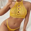 Conjunto de dos piezas de lencería sexy europea y americana Malla entrelazada Halter Bra Lencería sexy Temu Venta caliente transfronteriza Coqueteo