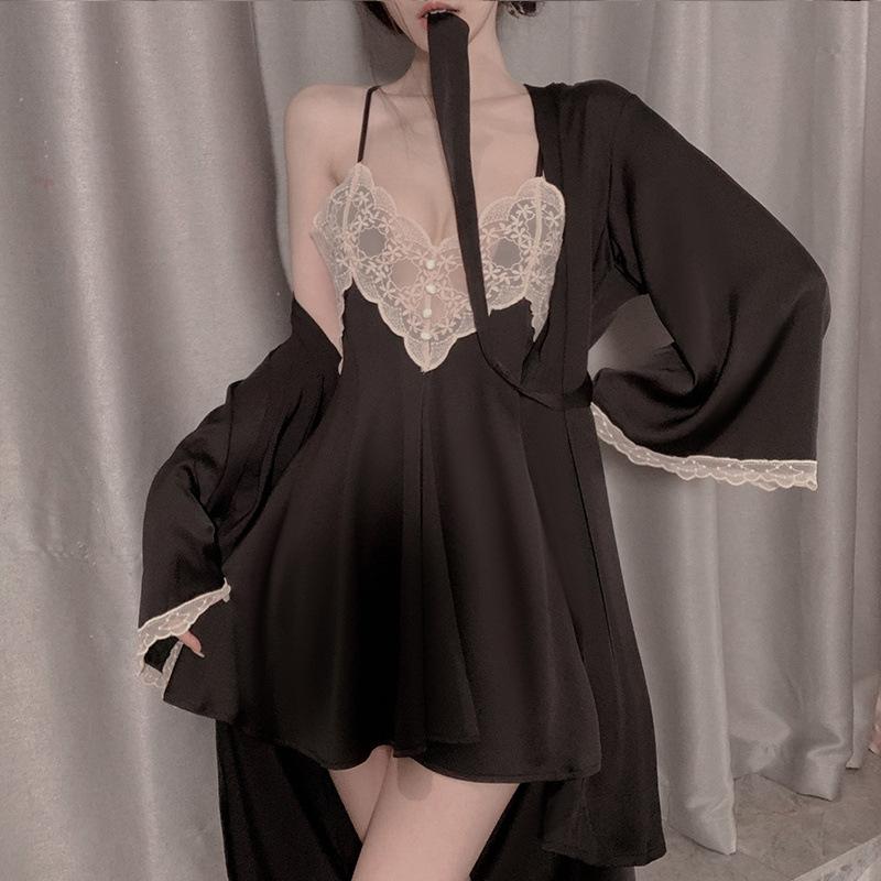 Black suspender skirt single piece, Rose gold suspender skirt single piece, Rose gold robe single piece, Black robe single piece