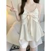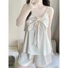 Conjunto de pijama con pantalones cortos y lazo, estilo dulce y puro deseo, bonito estilo coreano, ropa para el hogar, conjunto de dos piezas para niña para verano