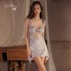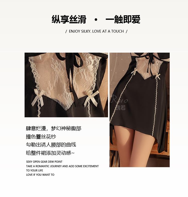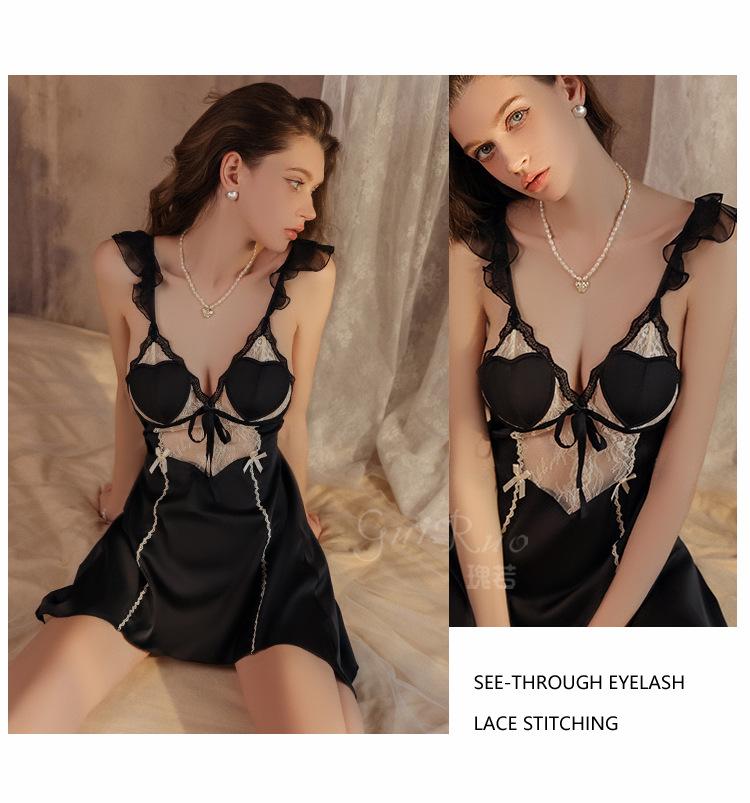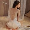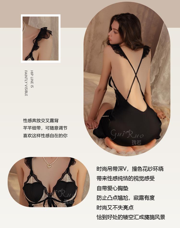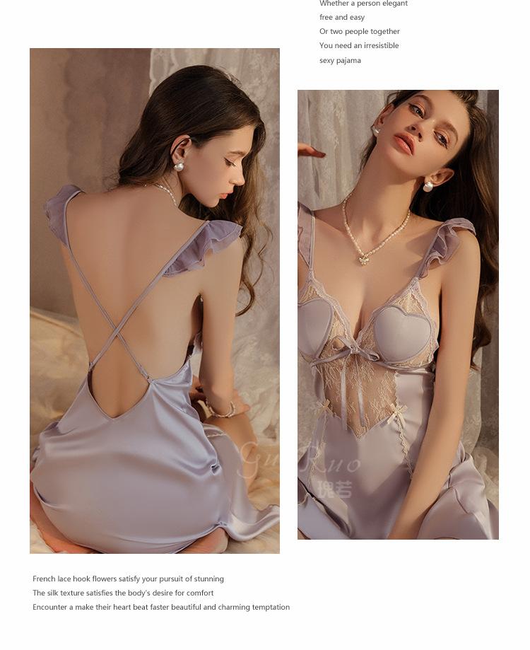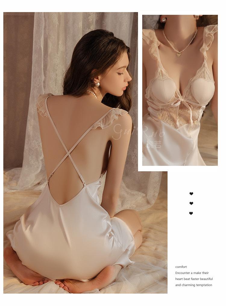 Guiruo - Pijama sexy de satén con escote en V profundo y almohadillas para el pecho, sin espalda, para el hogar, 3591