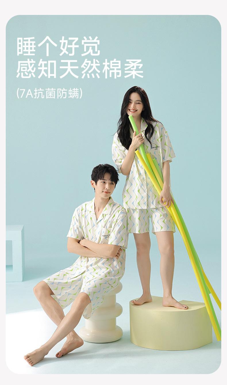 [7A Antibacteriano] Pijama de Verano Fino de Algodón Puro para Parejas para Mujer de Manga Corta con Estampado de Dibujos Animados a la Moda Ropa de Casa Pijama para Mujer