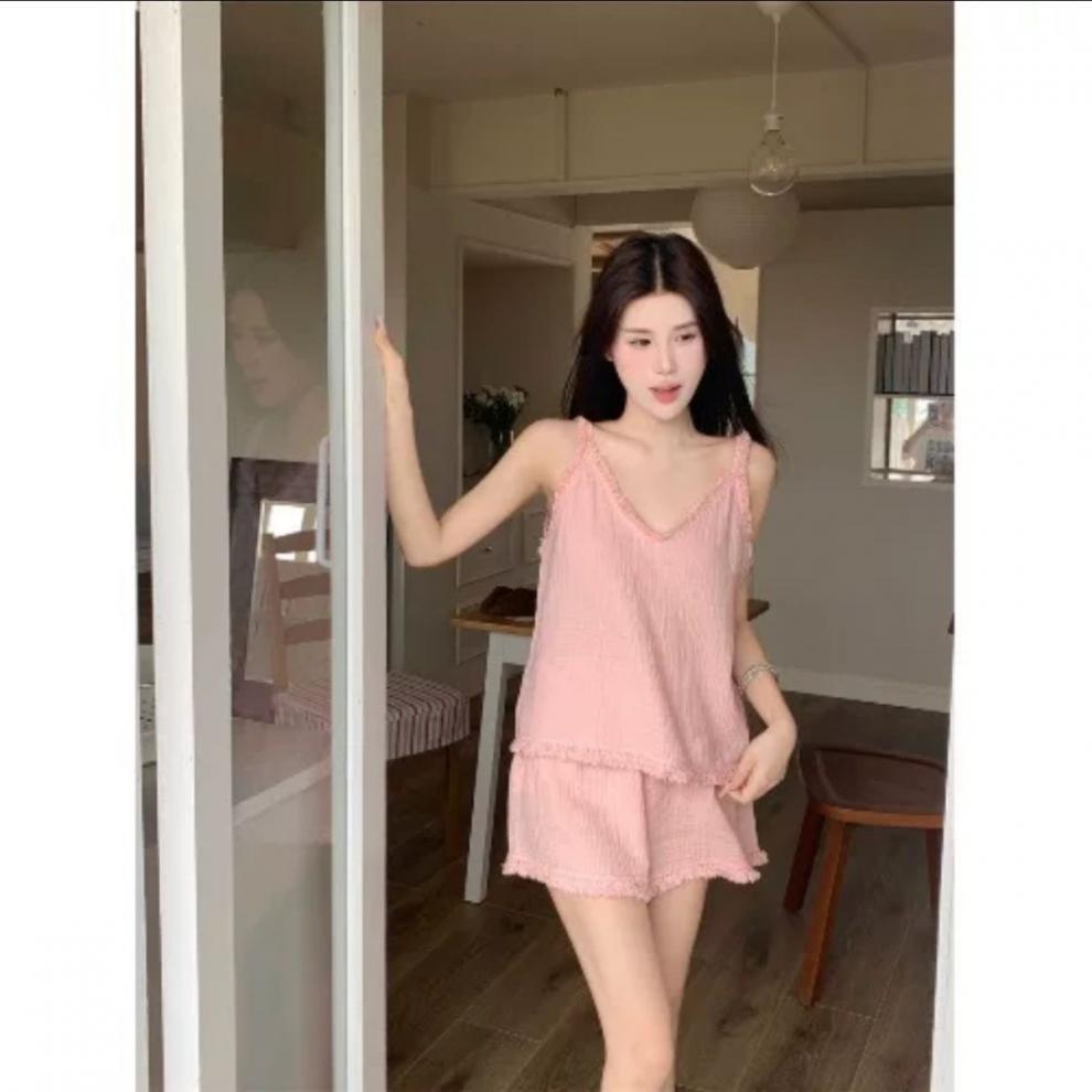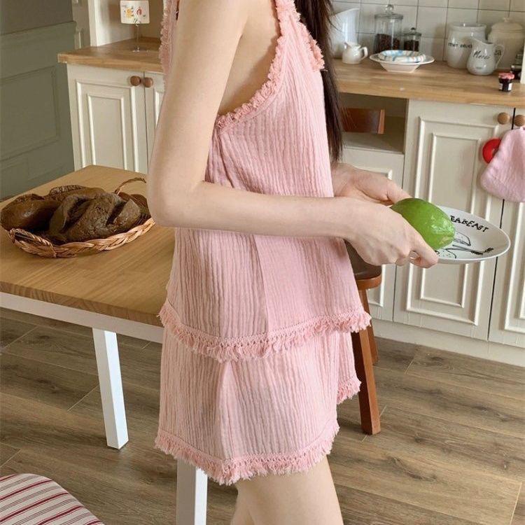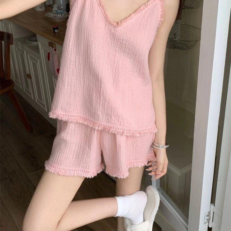 Falda adelgazante de encaje estilo suave para dormitorio rosa 2025, ropa de dormir de verano de nicho, ropa de dormir para el hogar, pijamas