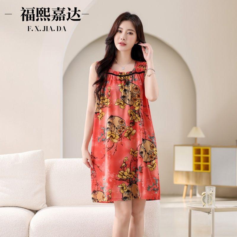 Verano Nuevo Camisola de Tirantes sin Mangas Vestido de Noche Suelto Sexy Adelgazante Estilo Perezoso Camisón Camisola de Tirantes para Mujer