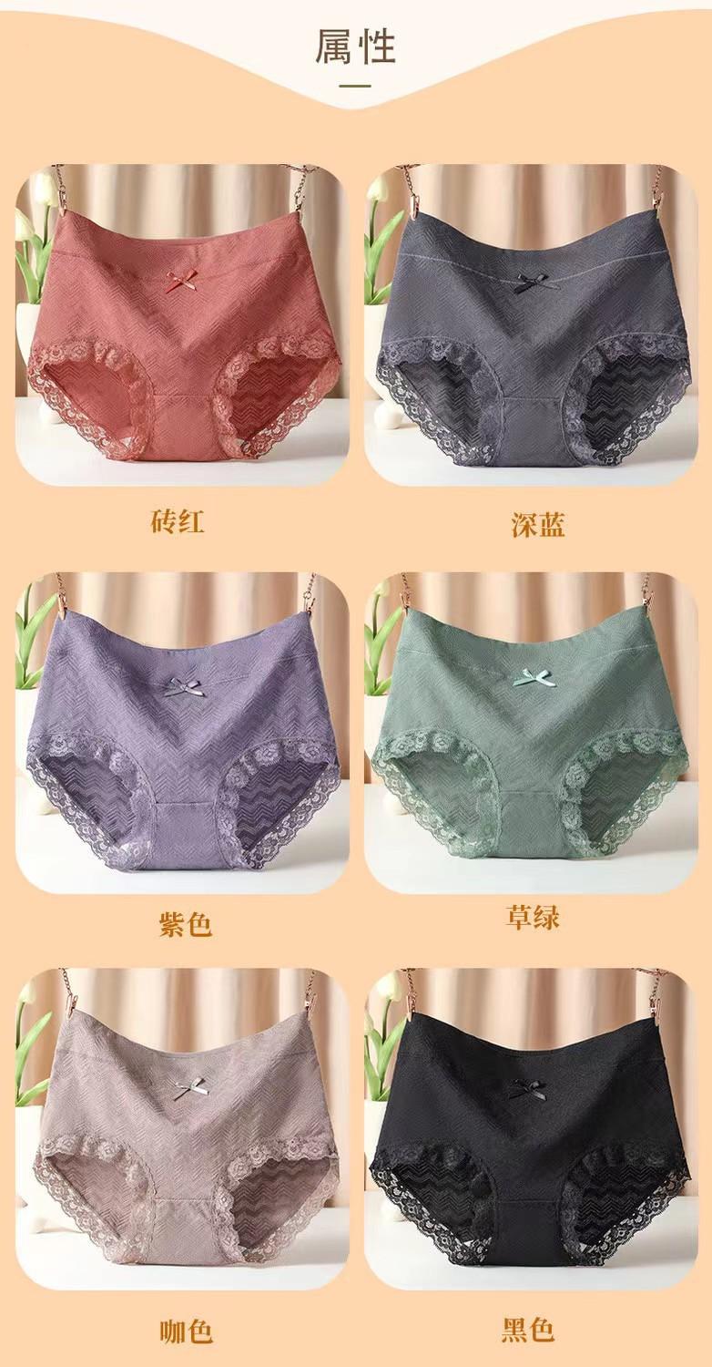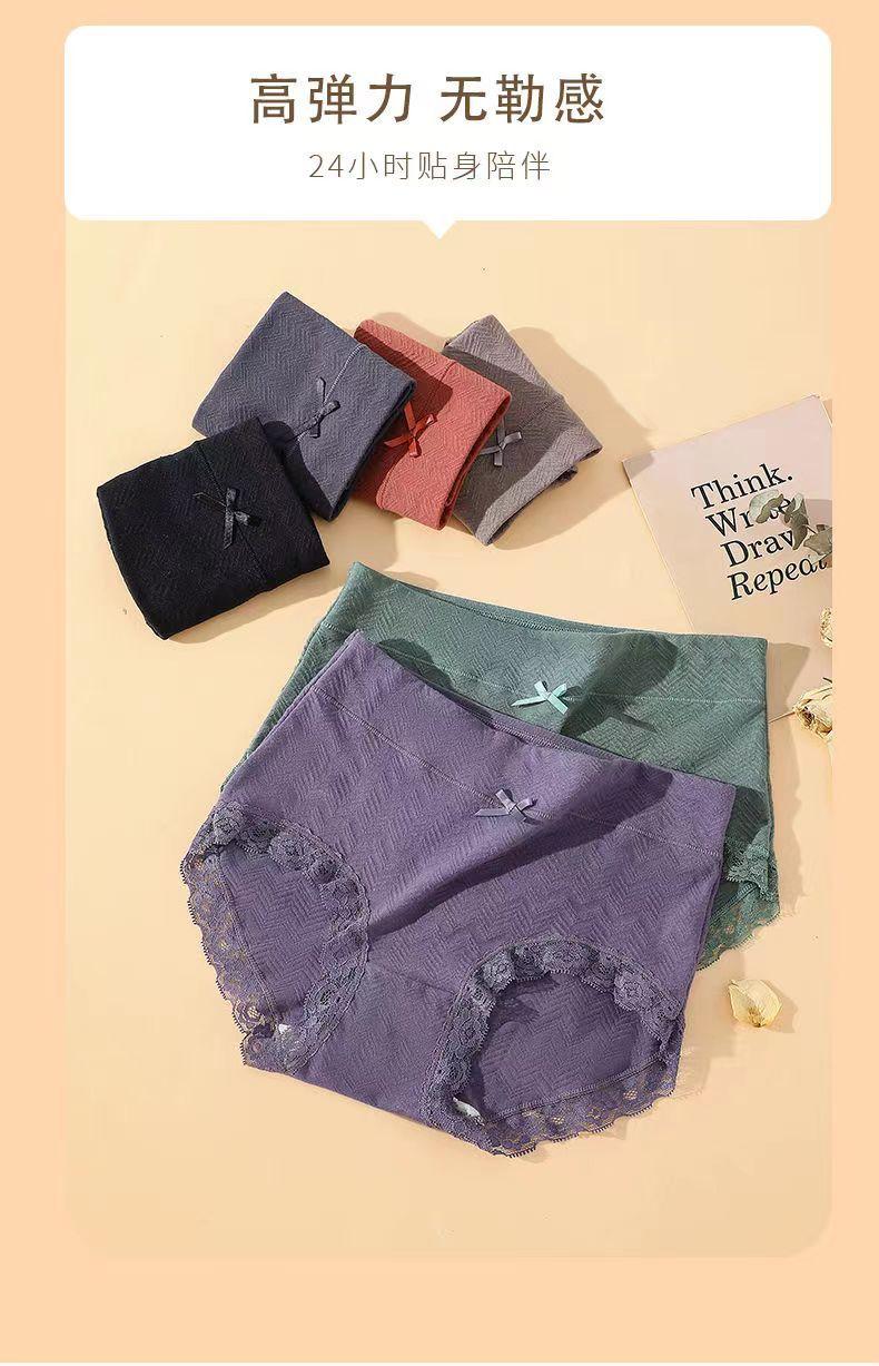 Ropa interior de algodón de talle alto para mujer de talla grande, entrepierna antibacteriana cubierta, glúteos, ropa interior transpirable, encaje en la pierna, cómodos briefs sin costuras