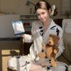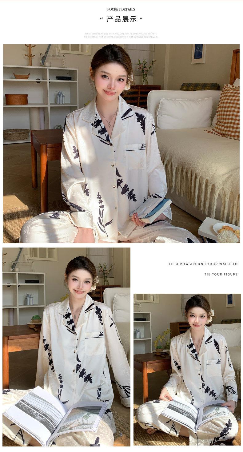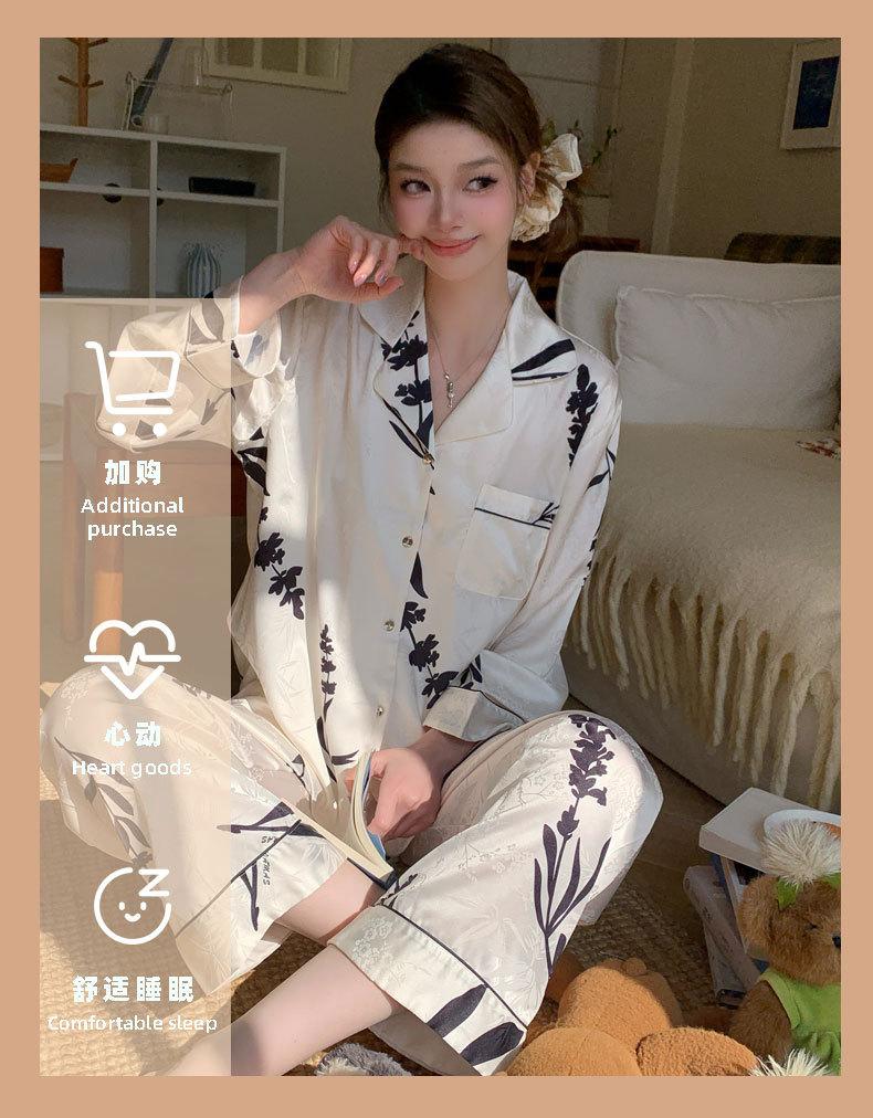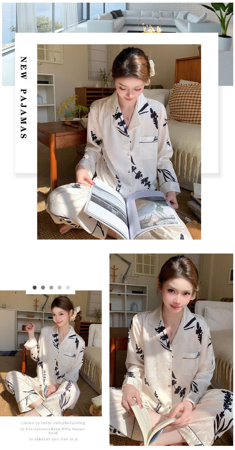 [selección estricta] pijamas nuevos para mujer primavera estilo nacional manga larga estampado traje popular moda jacquard delgados ropa para el hogar
