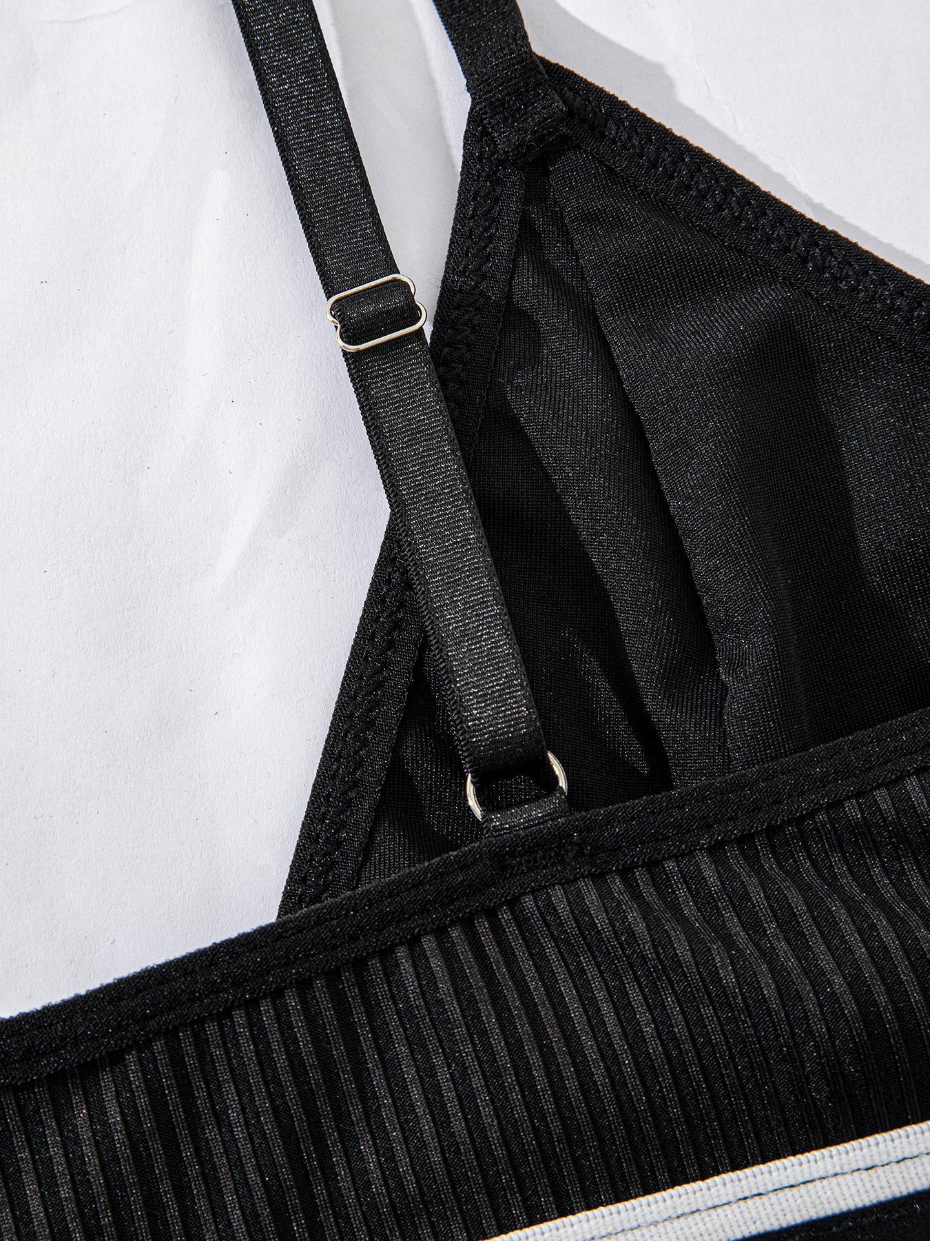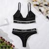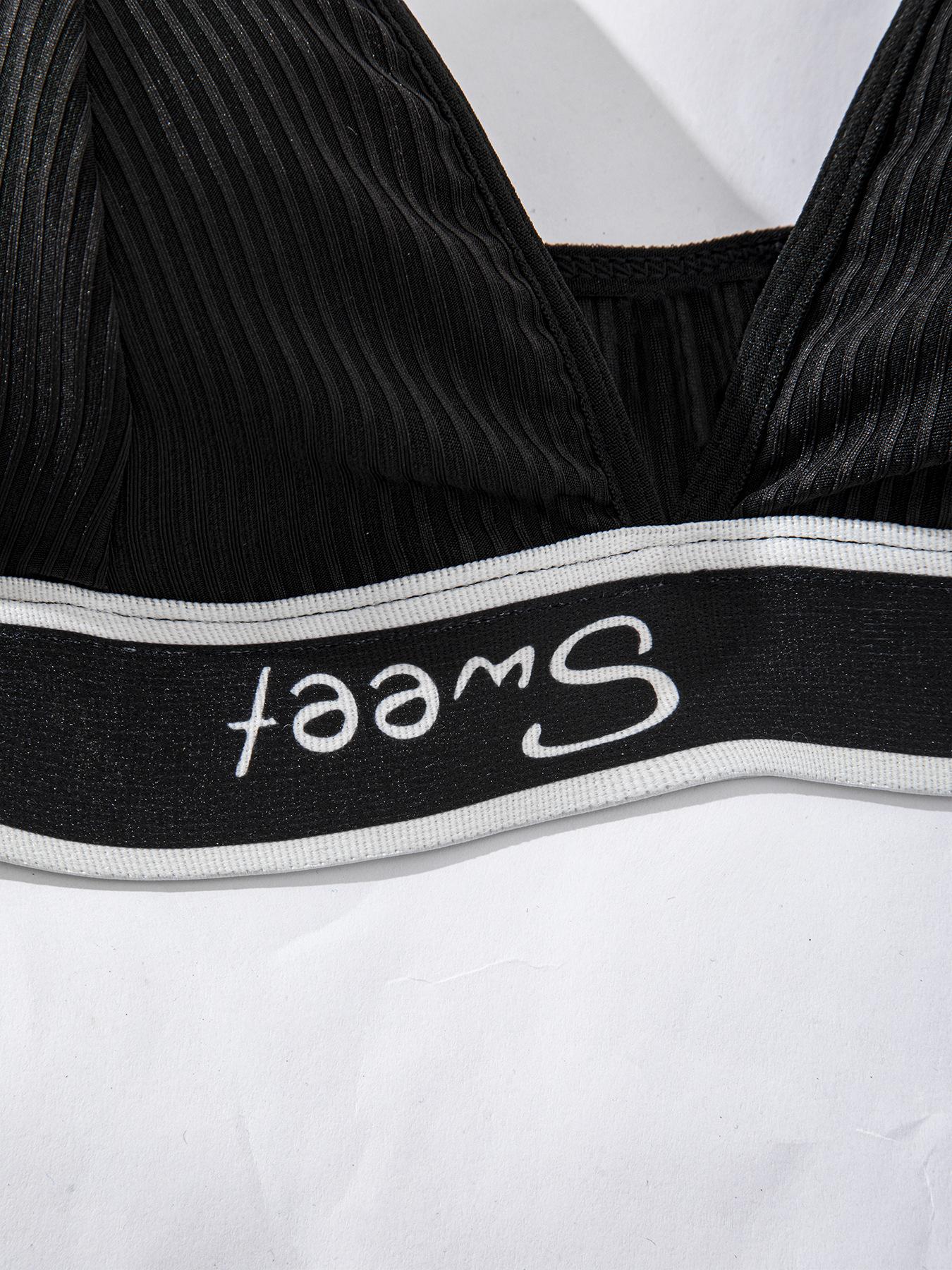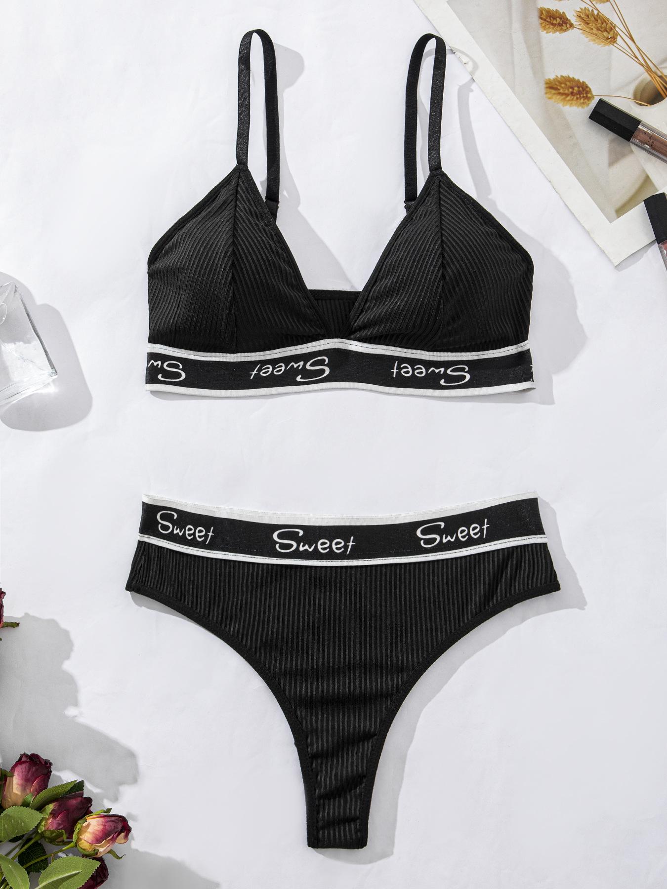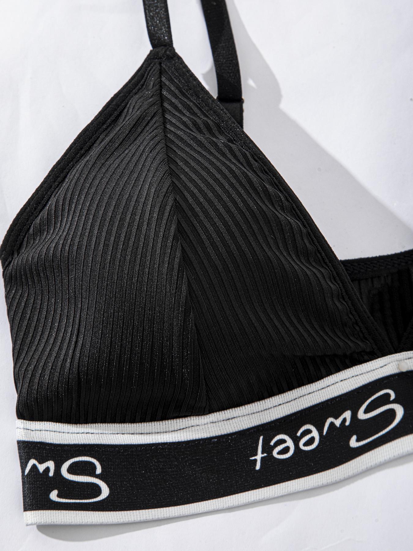 Conjunto de Ropa Interior de Sujetador Deportivo Sexy de Moda con Letras de Algodón Acanalado Transpirable Europeo y Americano para Mujer