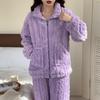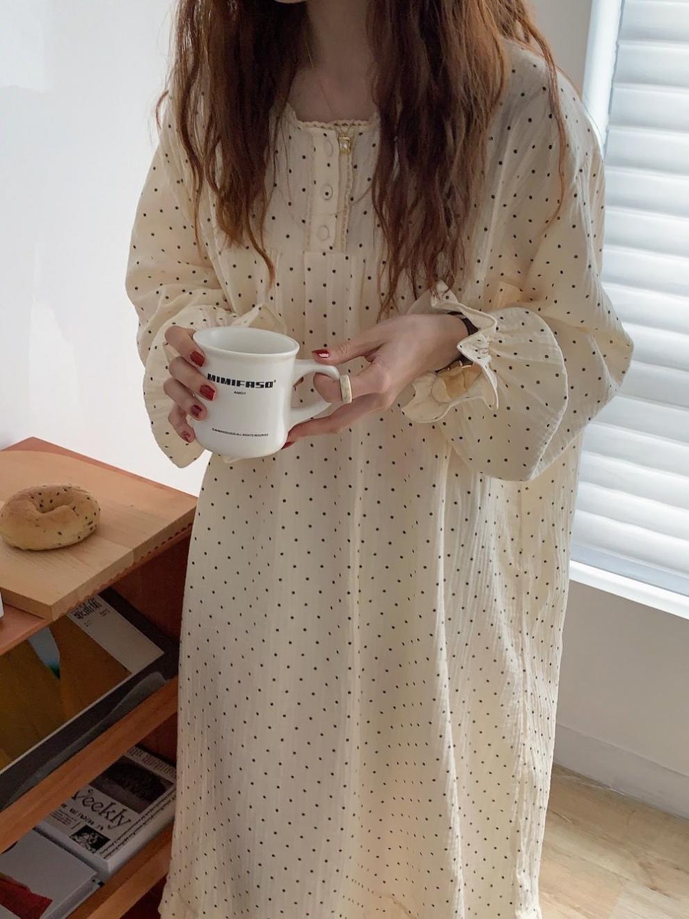 Pijamas de estilo coreano para mujer, otoño e invierno, de alta calidad, sencillos, con encaje de hojas de loto y lunares ondulados, conjunto de dos piezas para el hogar
