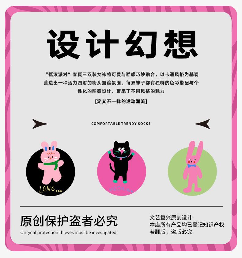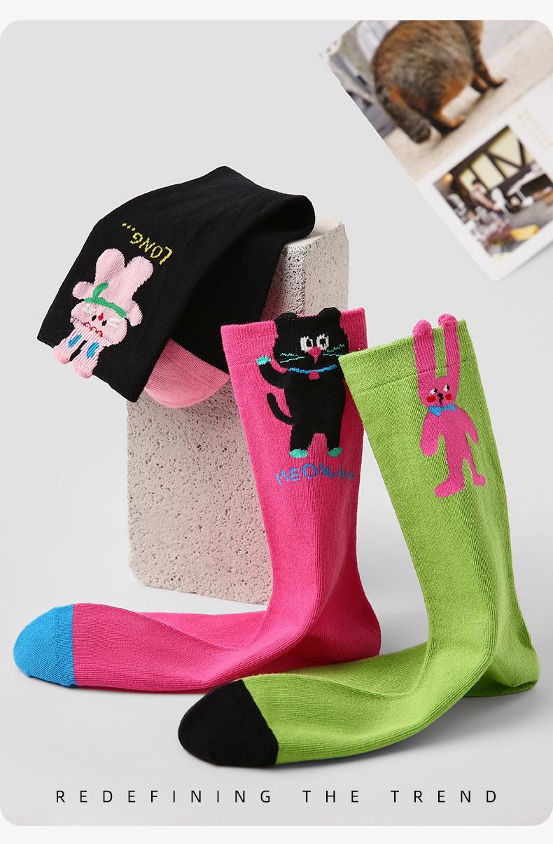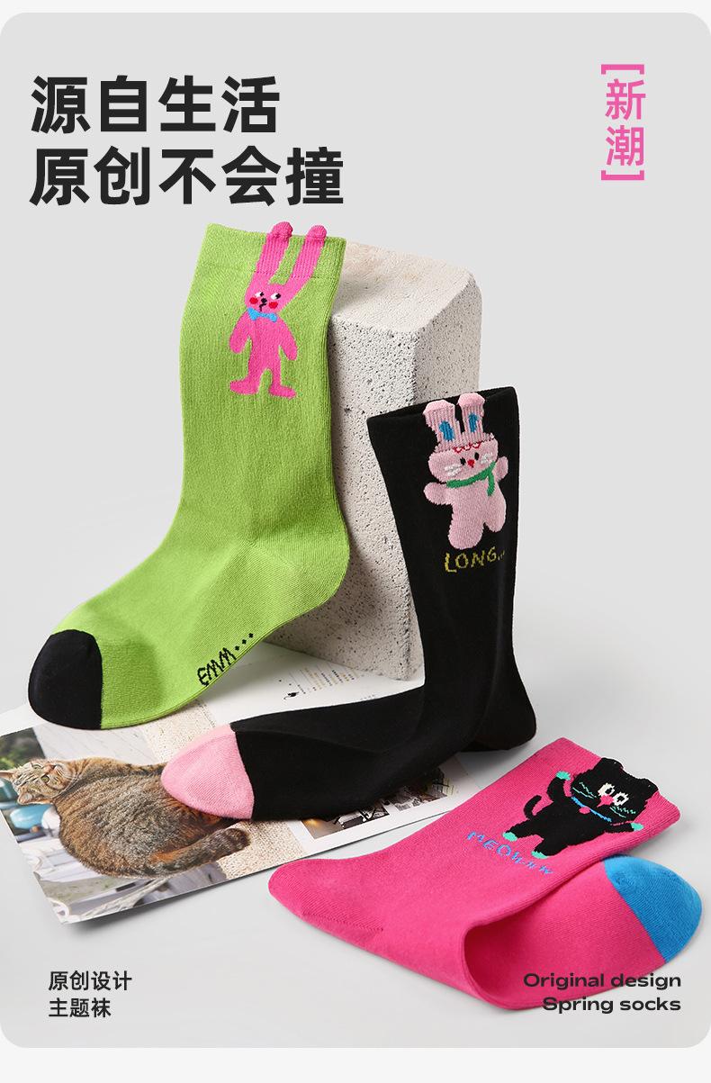 Calcetines originales renacentistas para mujer, primavera y verano, calcetines tridimensionales de animales, calcetines de tubo medio de algodón peinado con dibujos animados de colores sólidos para mujer.
