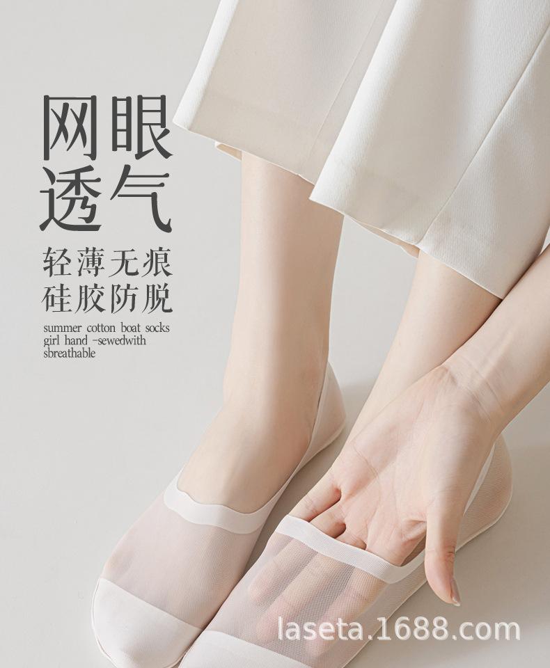 Calcetines náuticos de malla sin costuras, finos, de verano, de algodón, de color liso, invisibles, de silicona, con talón antideslizante, reforzados con la cabeza, transpirables, para mujer