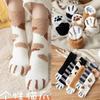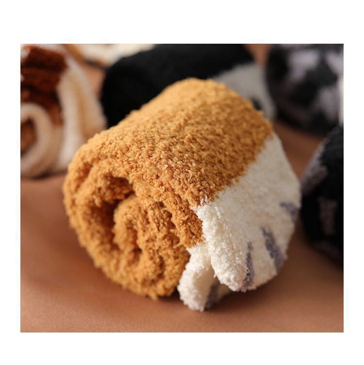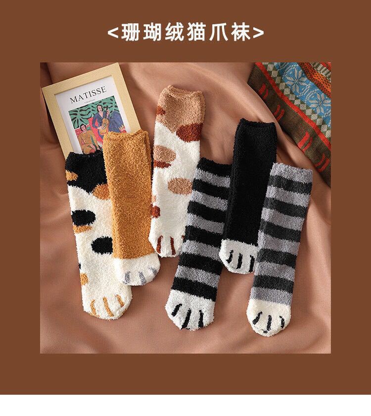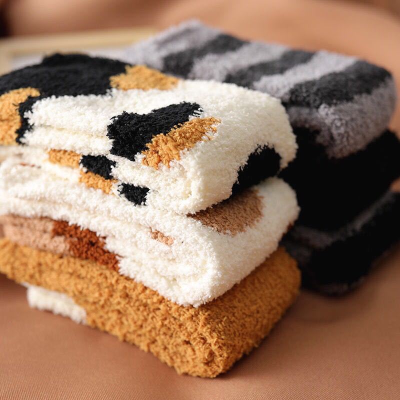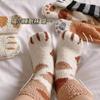 Calcetines para Mujer de Vellón Coral de Media Caña Garra de Gato Cálidos con Pelo Otoño e Invierno Gruesos con Forro Polar para Dormir en el Piso Calcetines de Tubo Largo de Luna