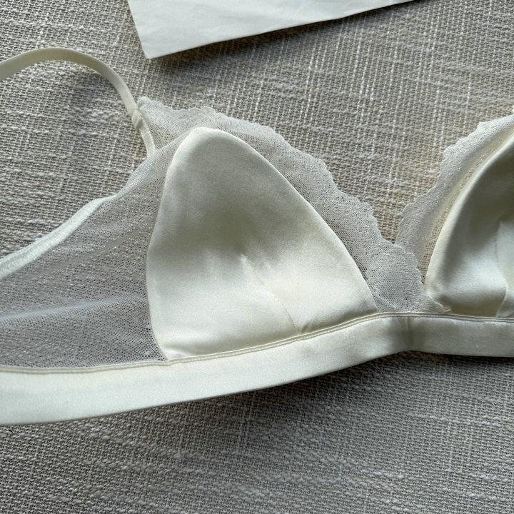 Las copas interior y exterior están hechas de tela de satén elástico de seda, 93% seda de morera y 7% elastano