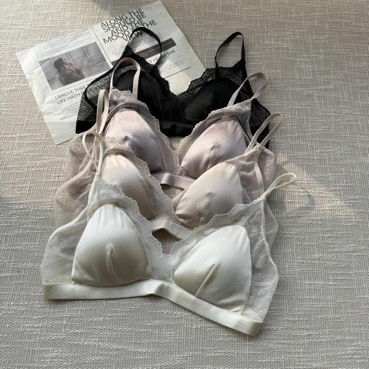 Diseño de copa triangular francés, almohadilla fija de algodón de seda de 3 mm, transpirable y antigolpes
