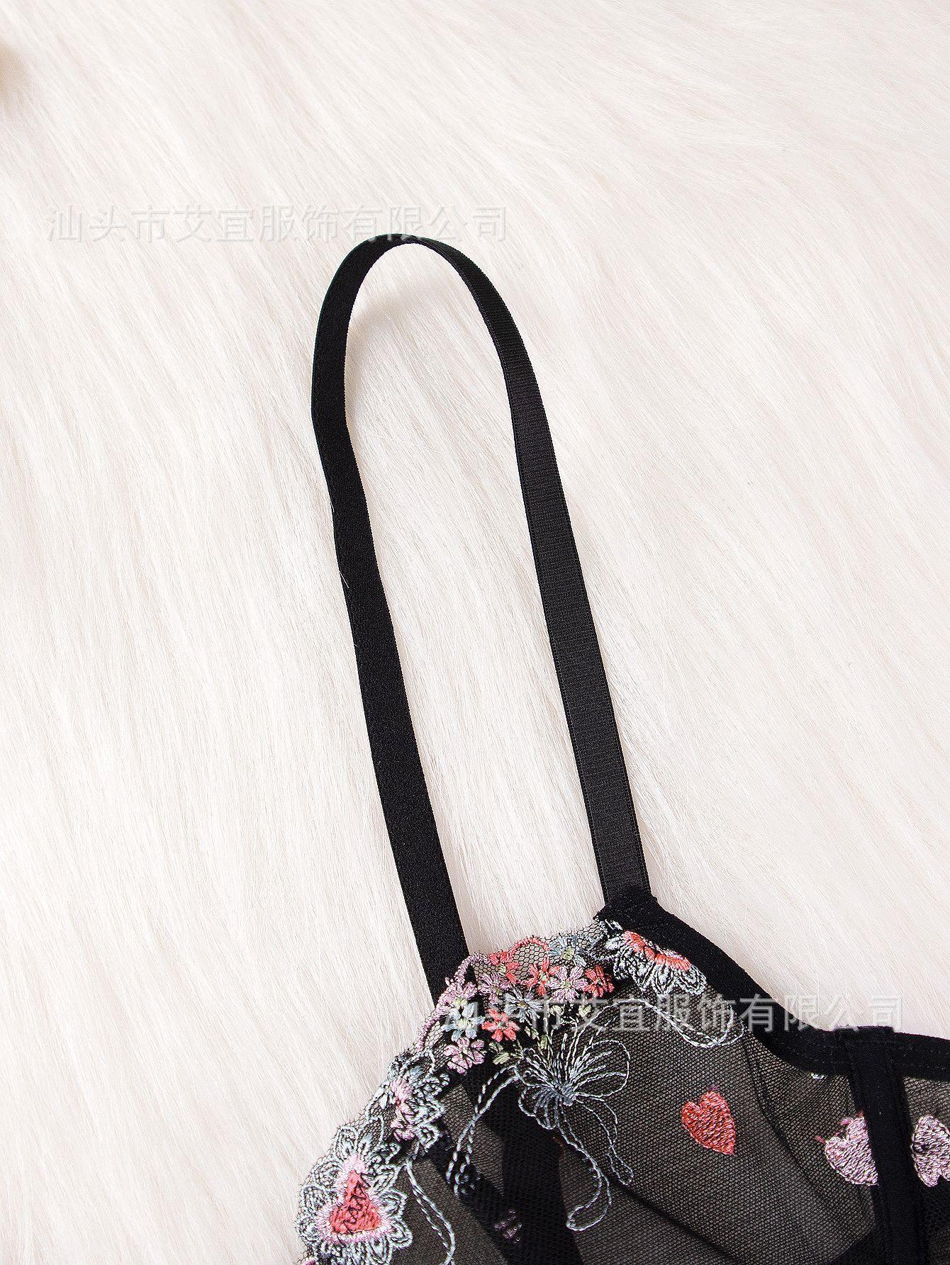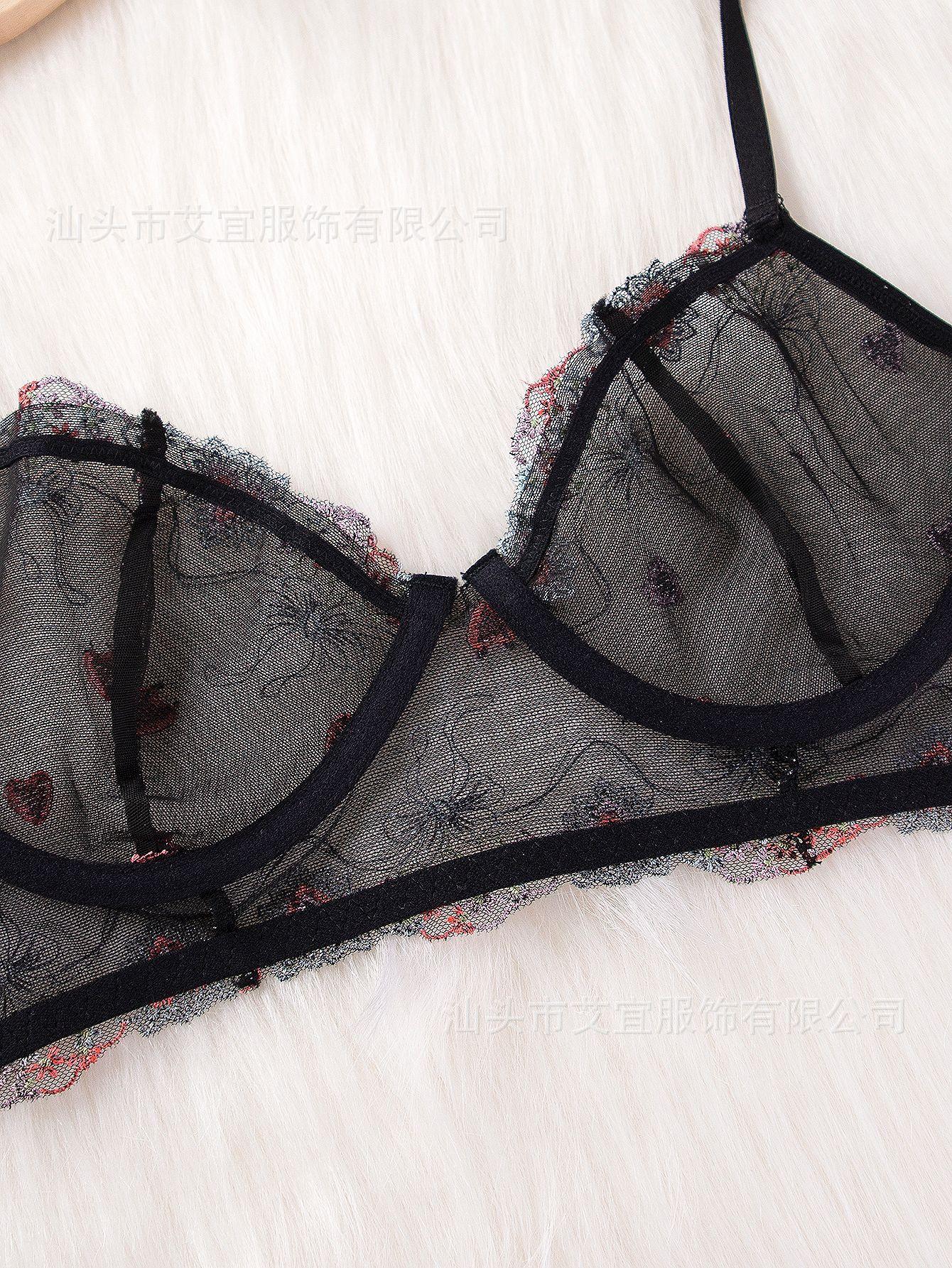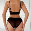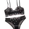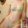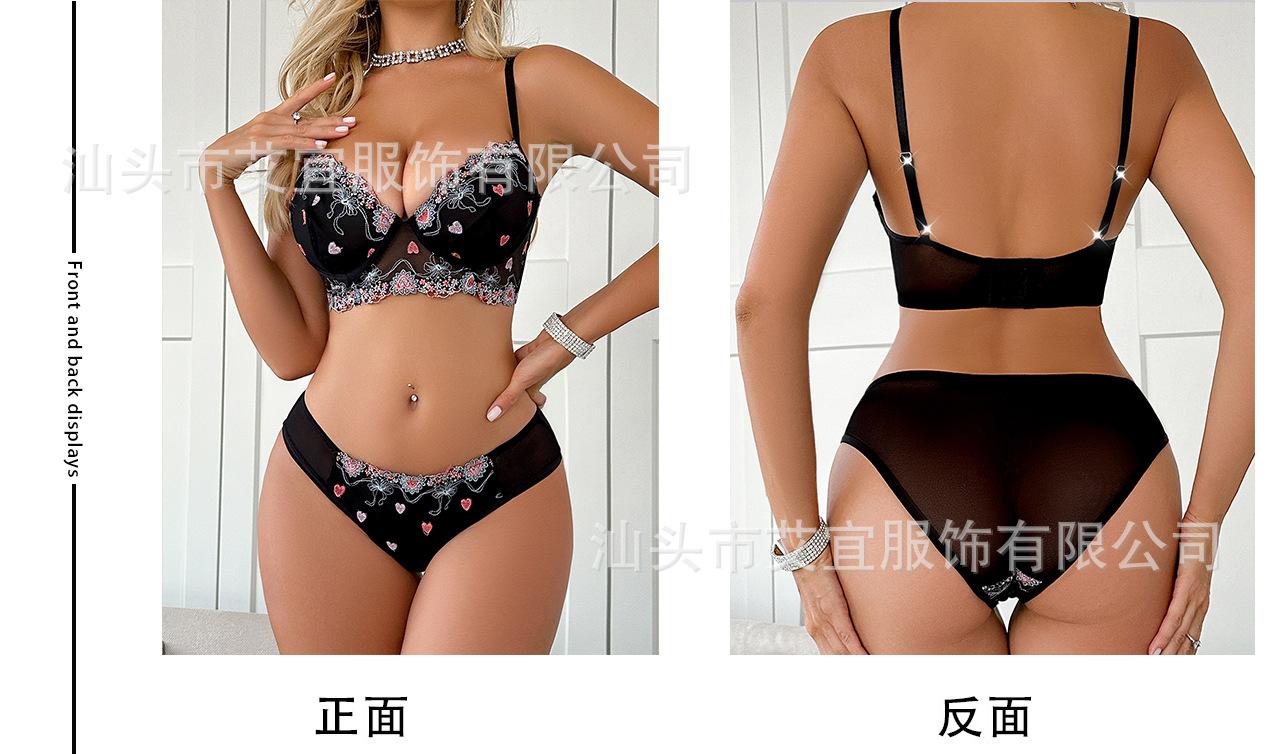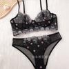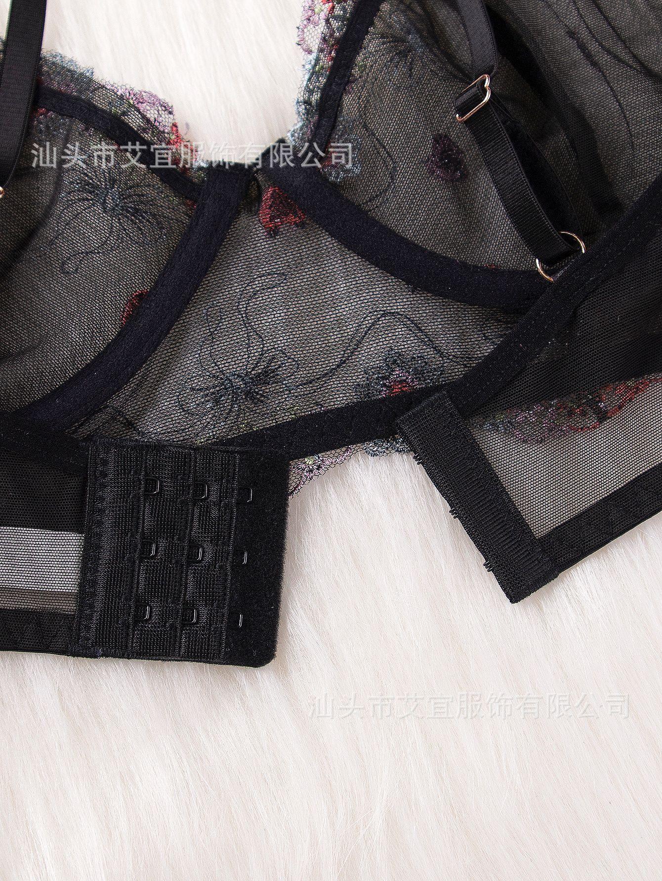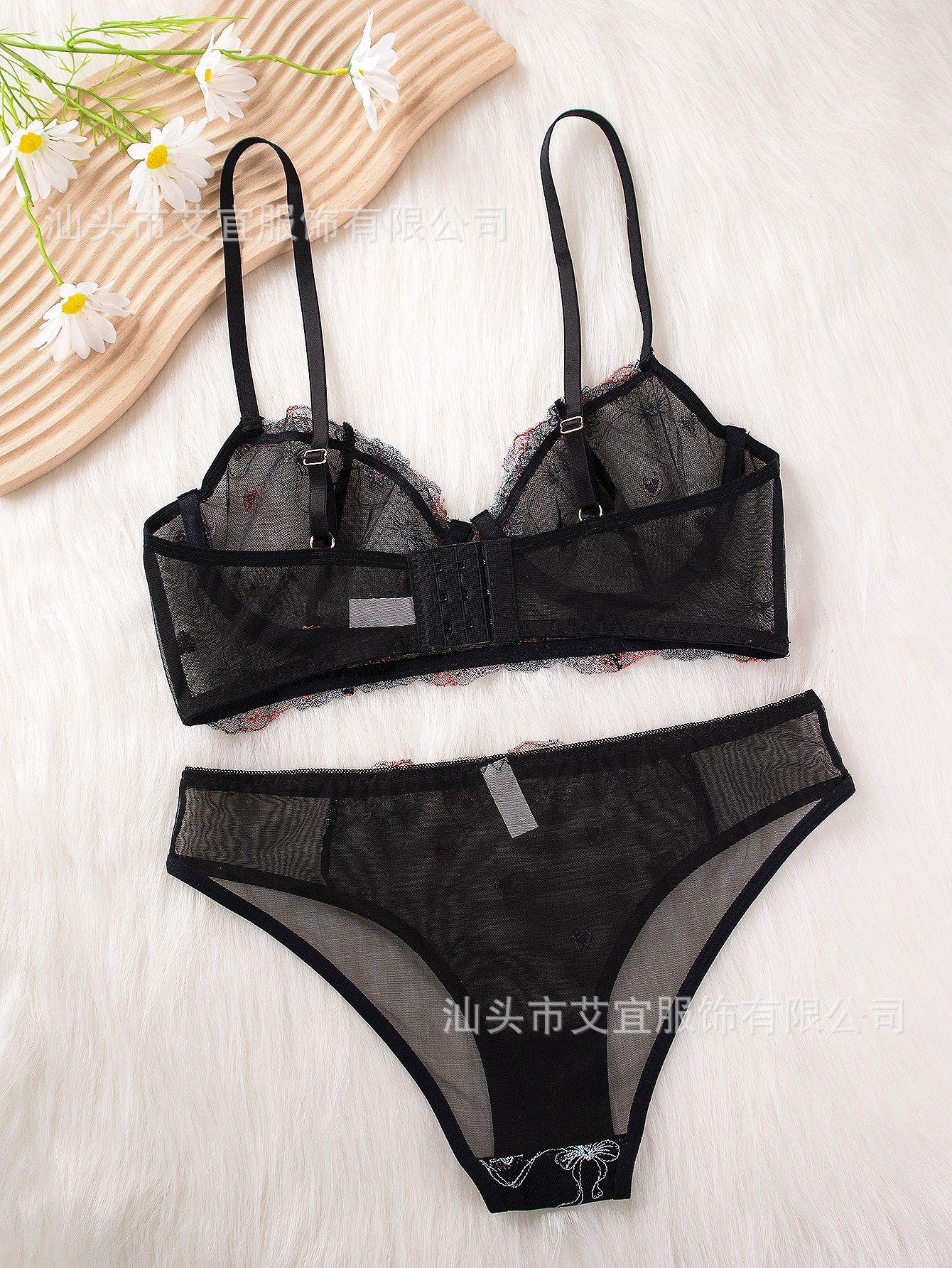 Conjunto de Lencería Sexy Bordado Transfronterizo Europeo y Americano, Sujetador Push-Up de Malla Transparente, Braguitas Triángulo Finas Eróticas
