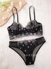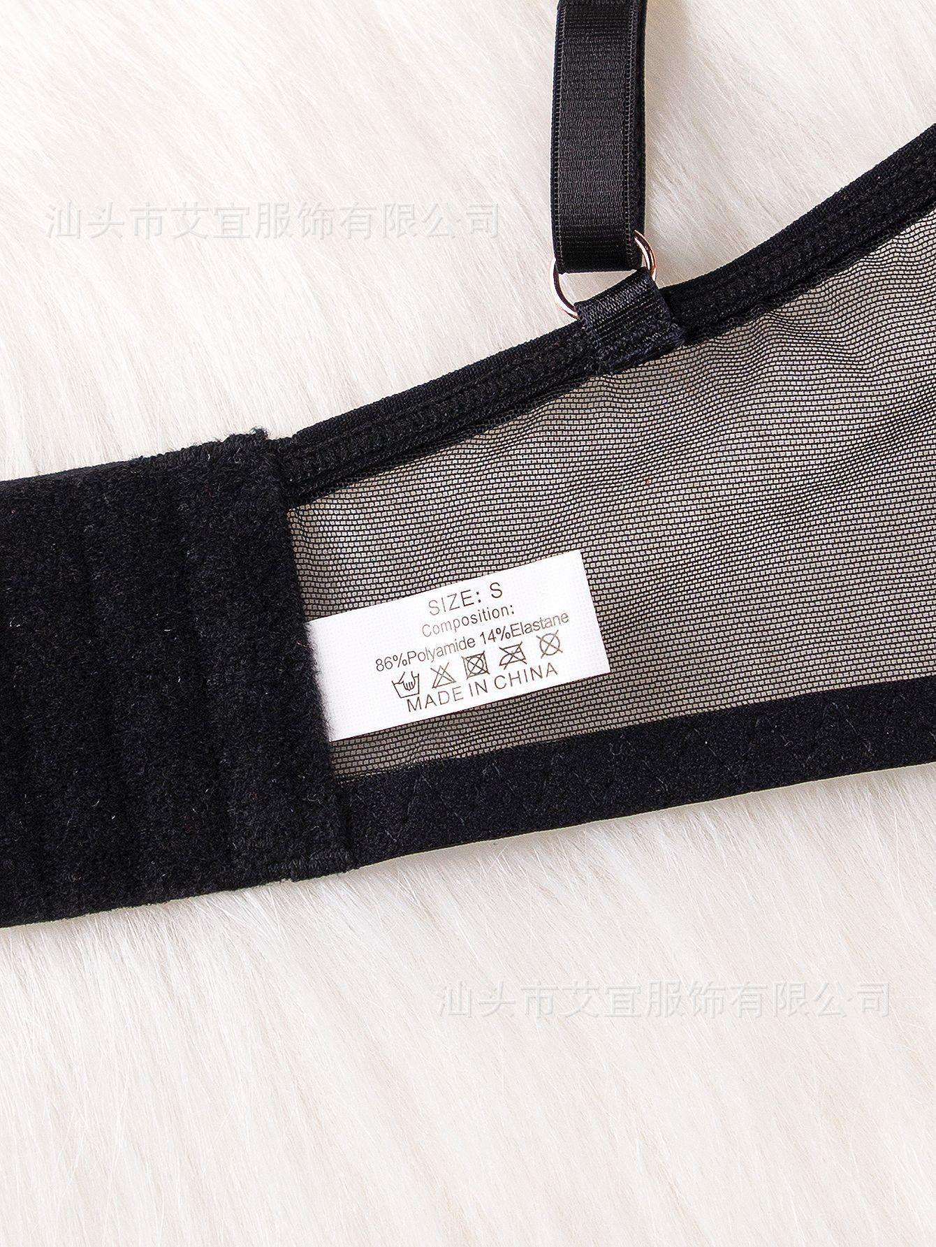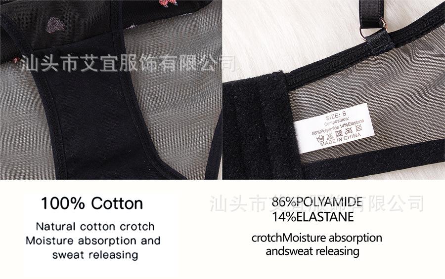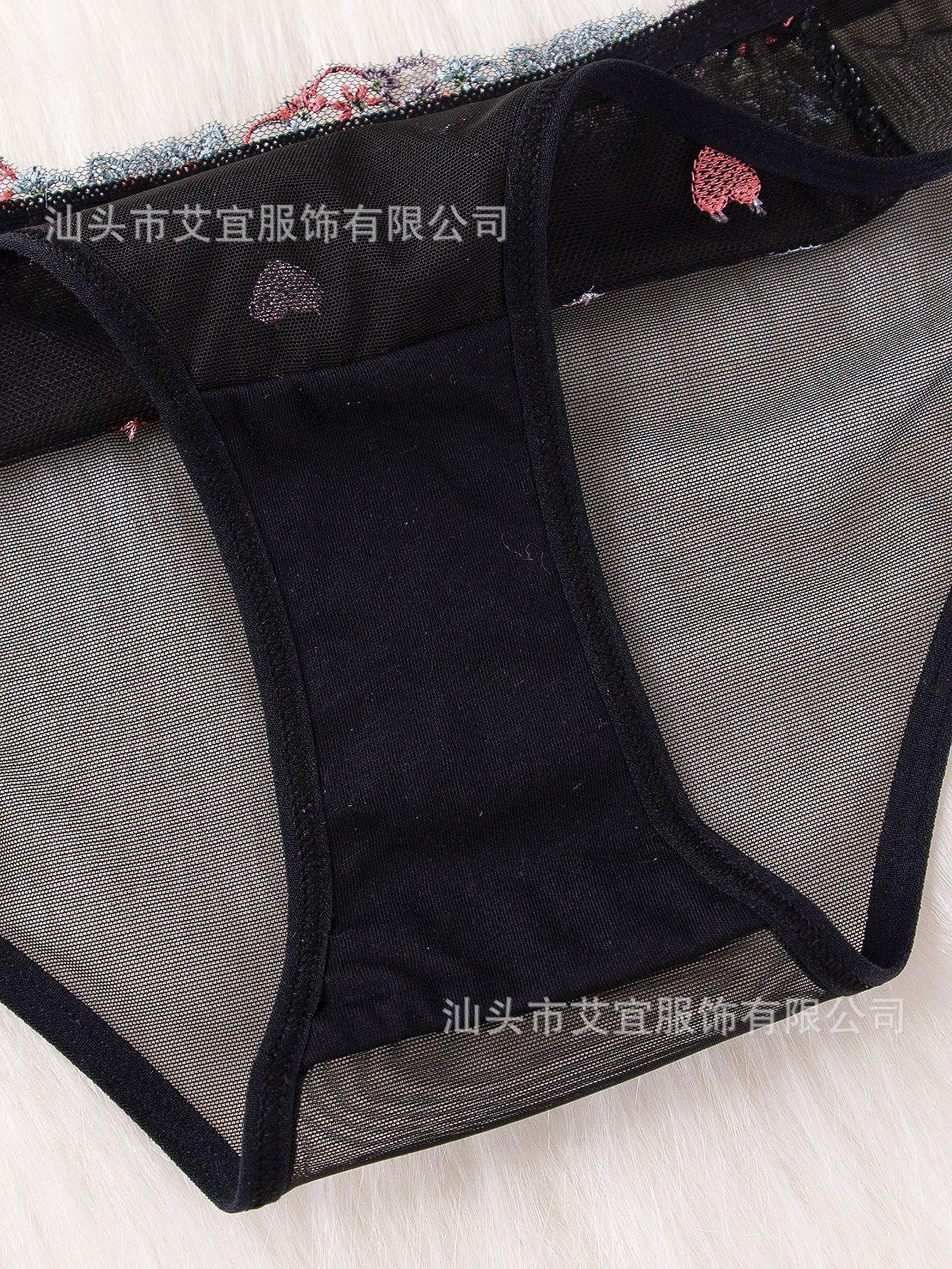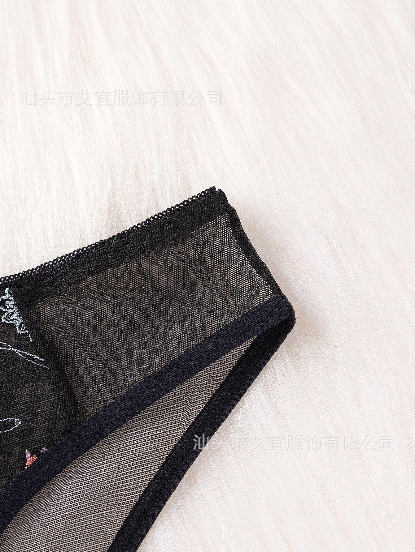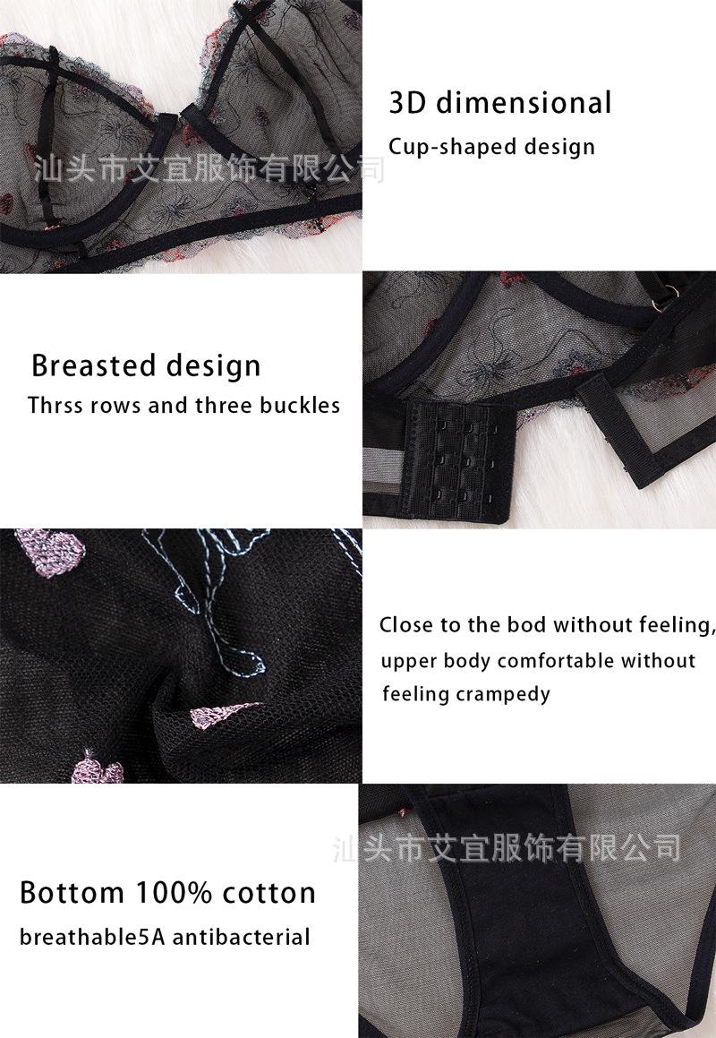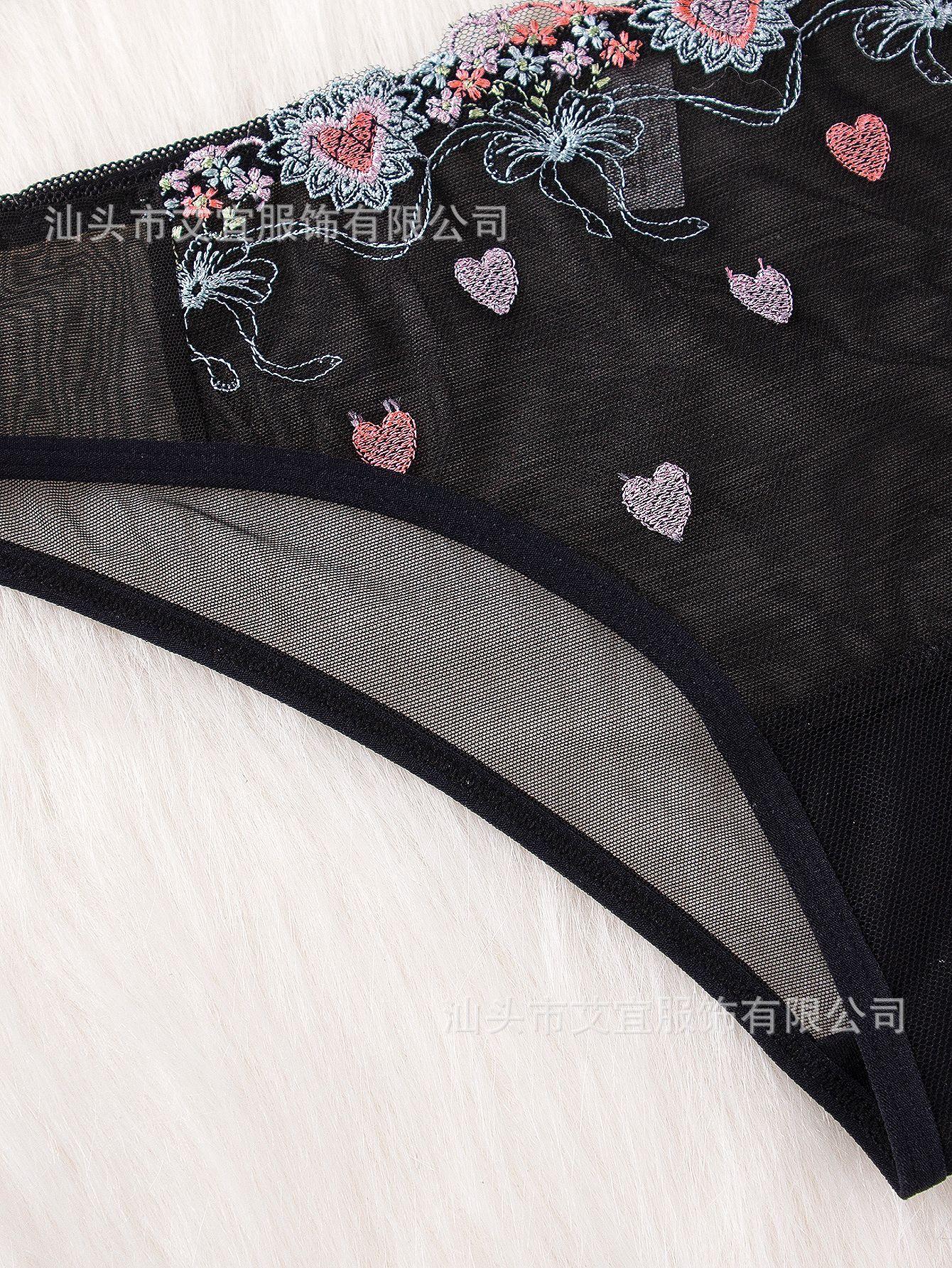 Conjunto de Lencería Sexy Bordado Transfronterizo Europeo y Americano, Sujetador Push-Up de Malla Transparente, Braguitas Triángulo Finas Eróticas