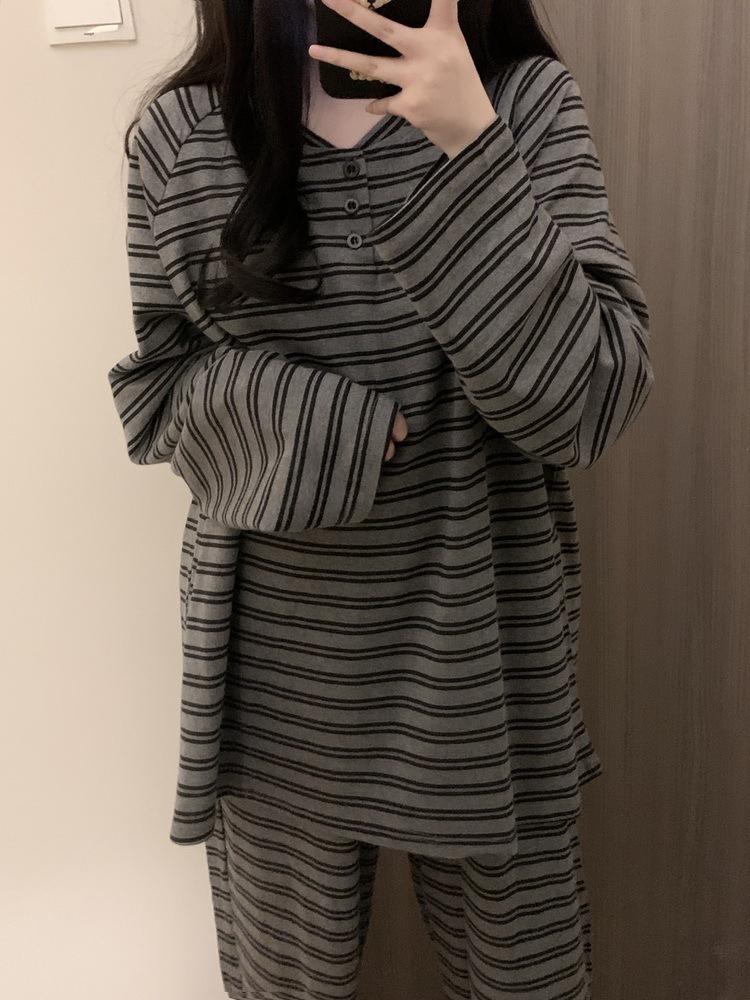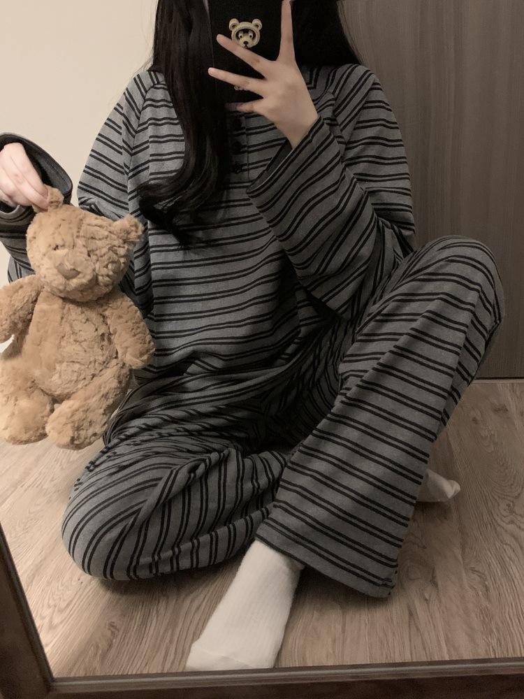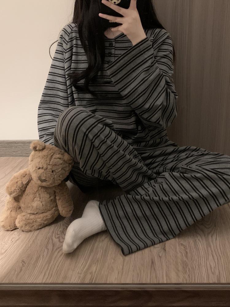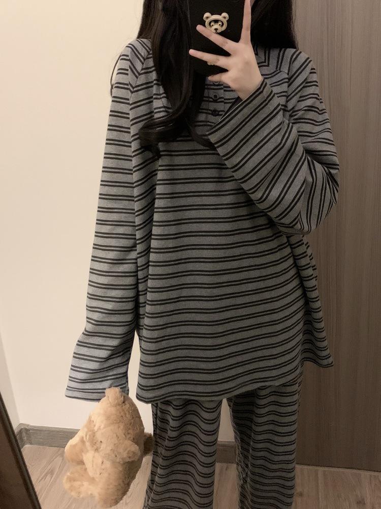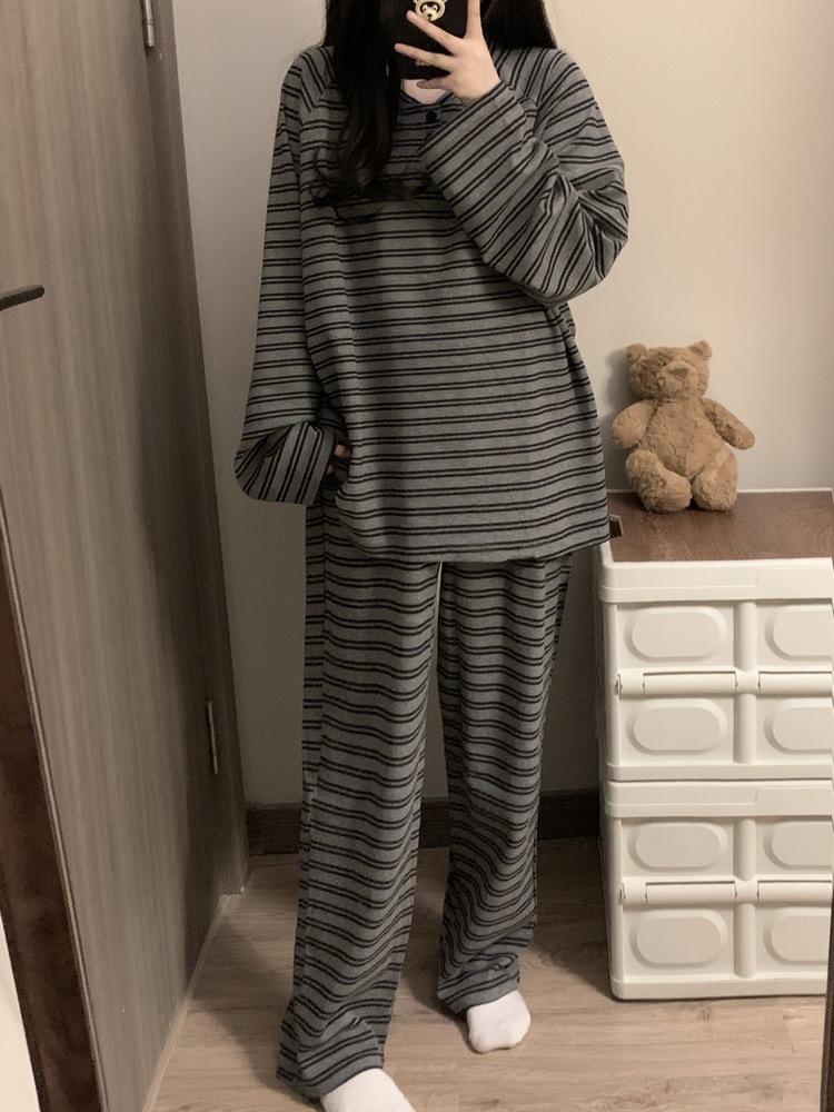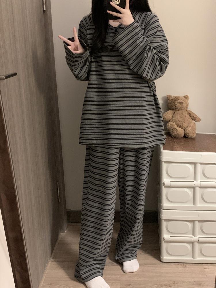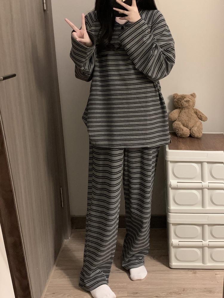Pijama holgado de manga larga a rayas de moda para mujer, primavera y otoño de 2025, ropa de abrigo para el hogar