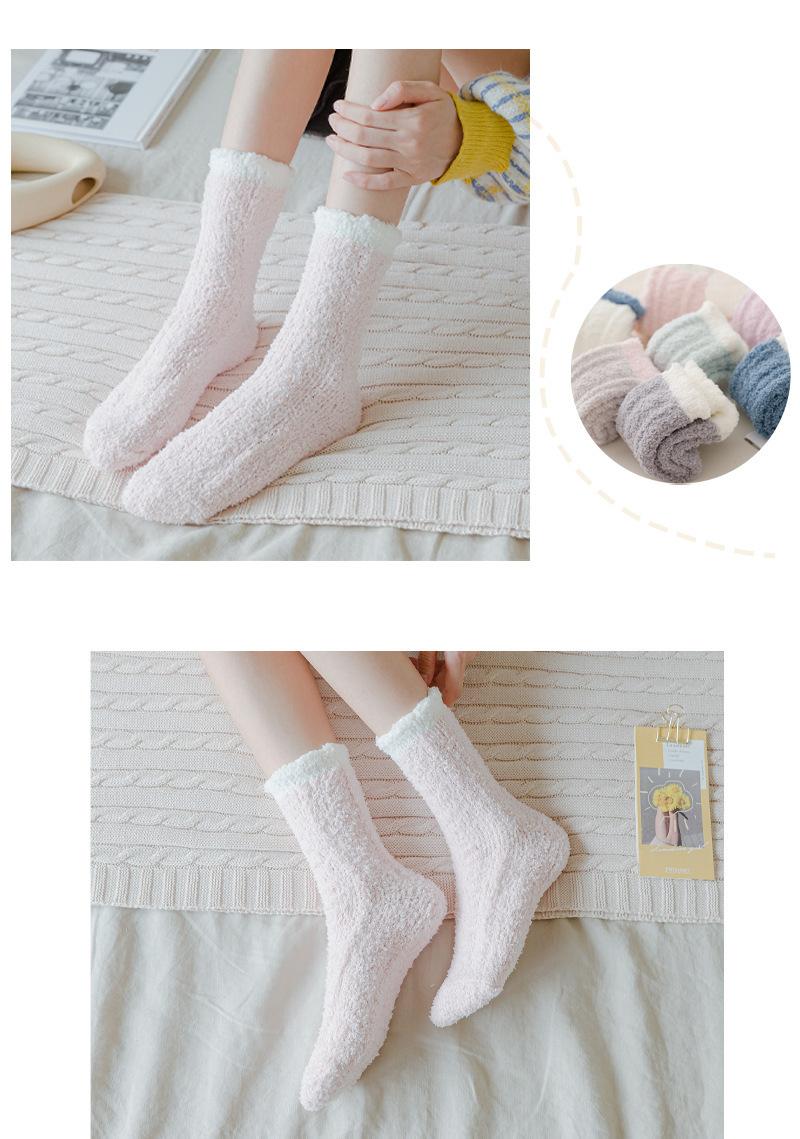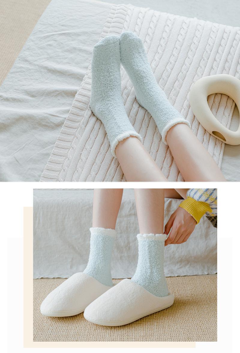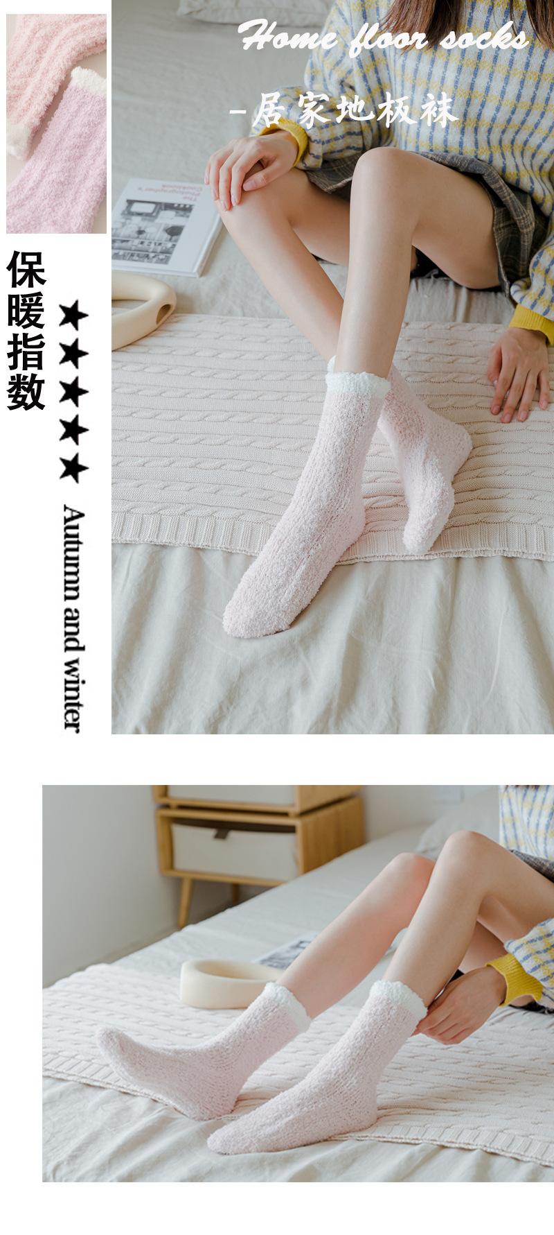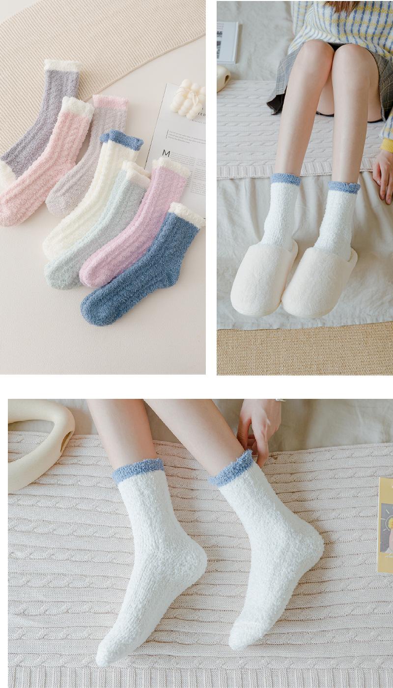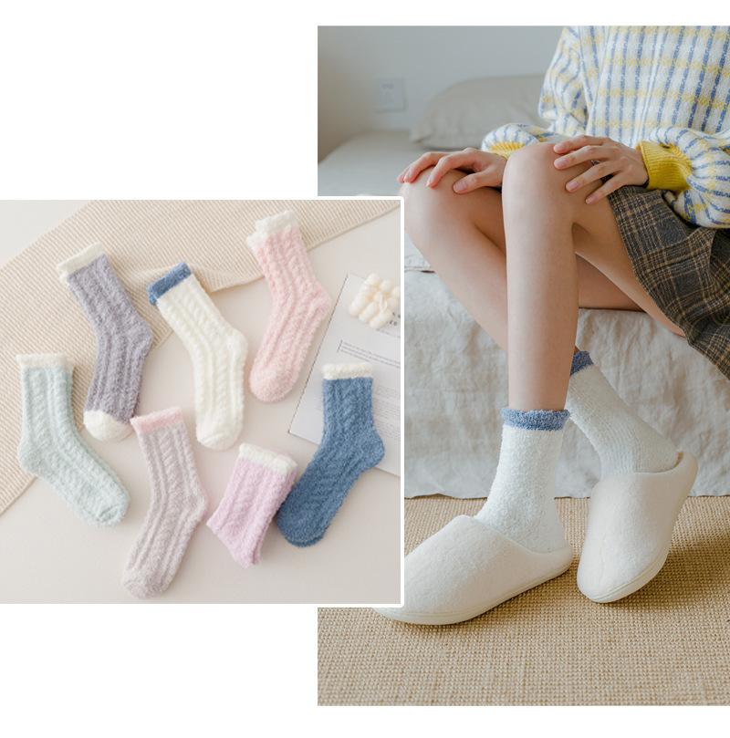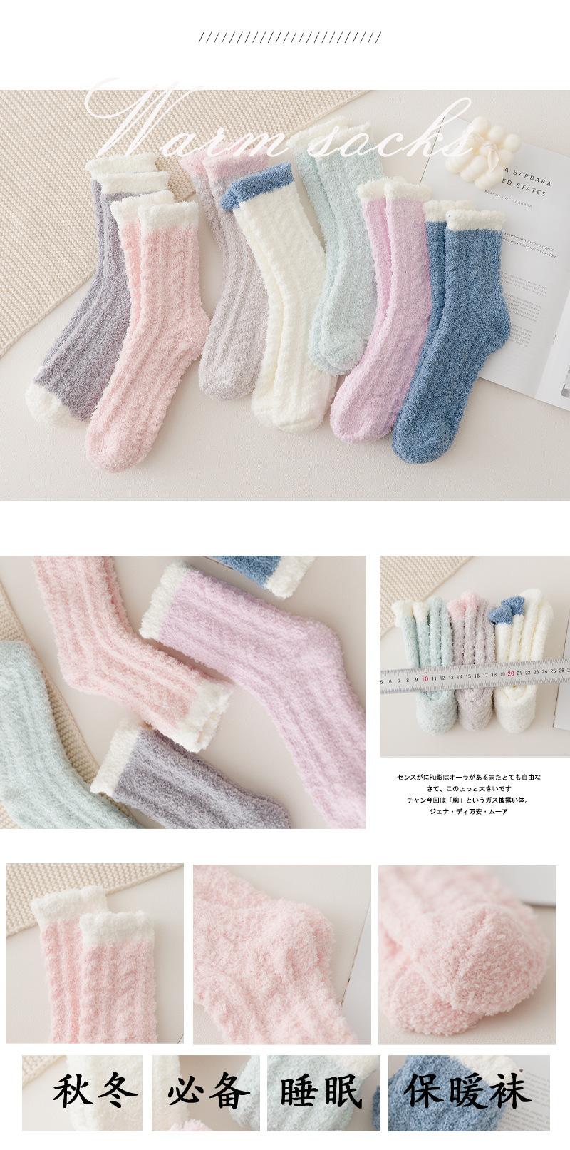 Calcetines gruesos de otoño e invierno para mujer con forro polar de coral trenzado