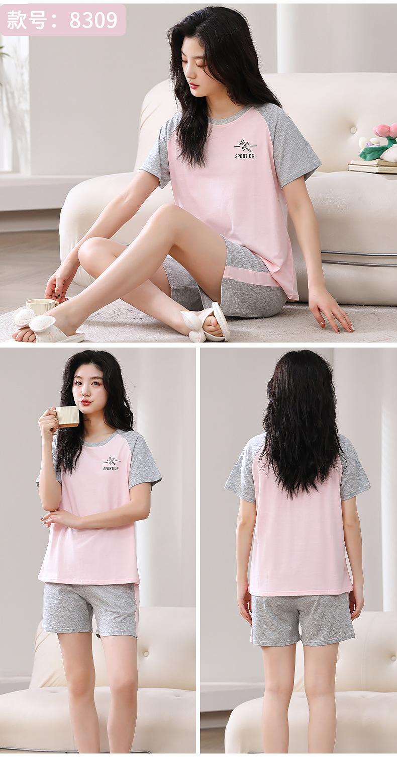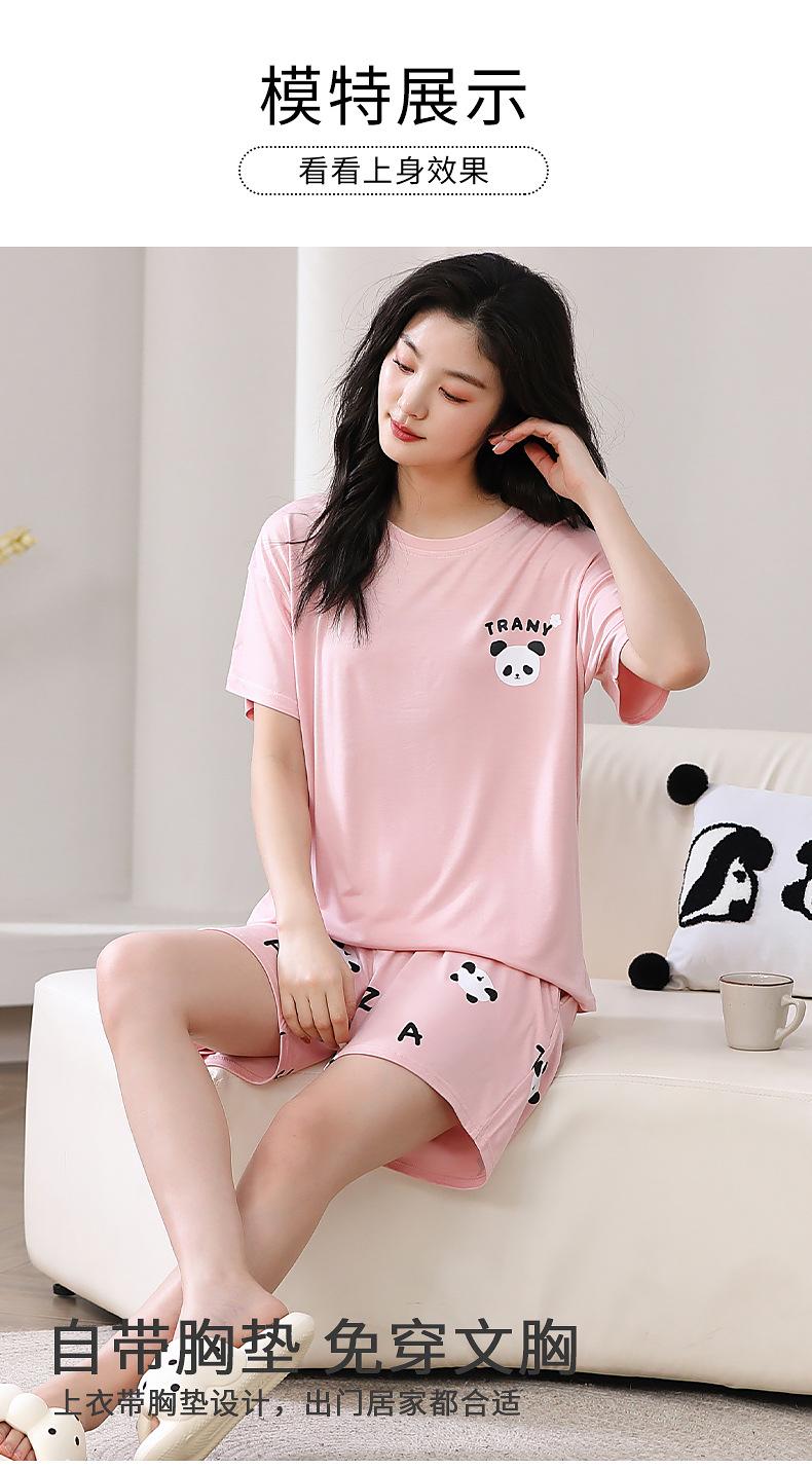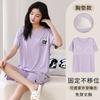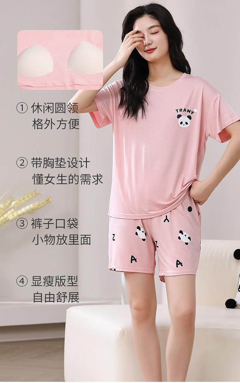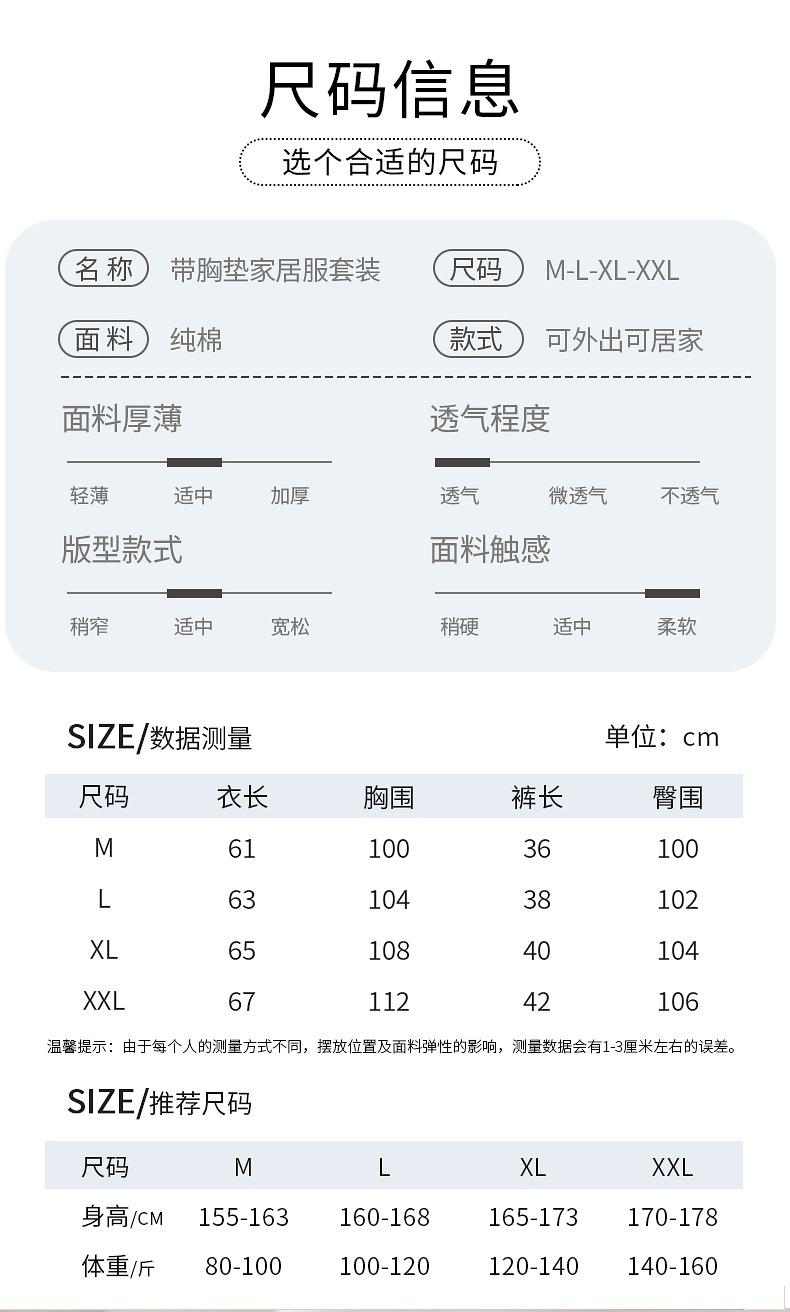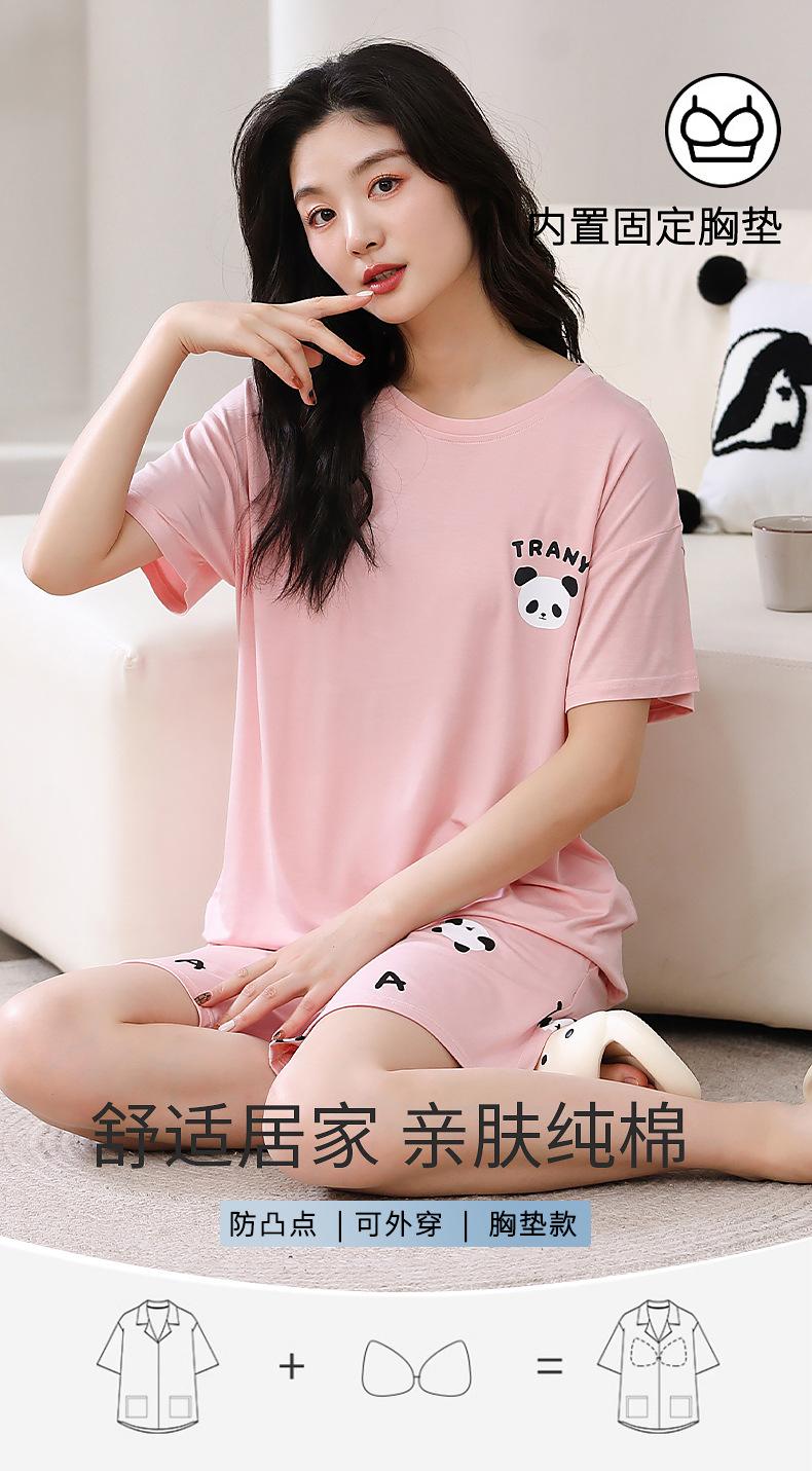 Pijama de algodón para mujer con almohadilla para el pecho, pantalones cortos de verano de manga corta, cuello redondo fino, ropa exterior holgada, ropa para el hogar, traje