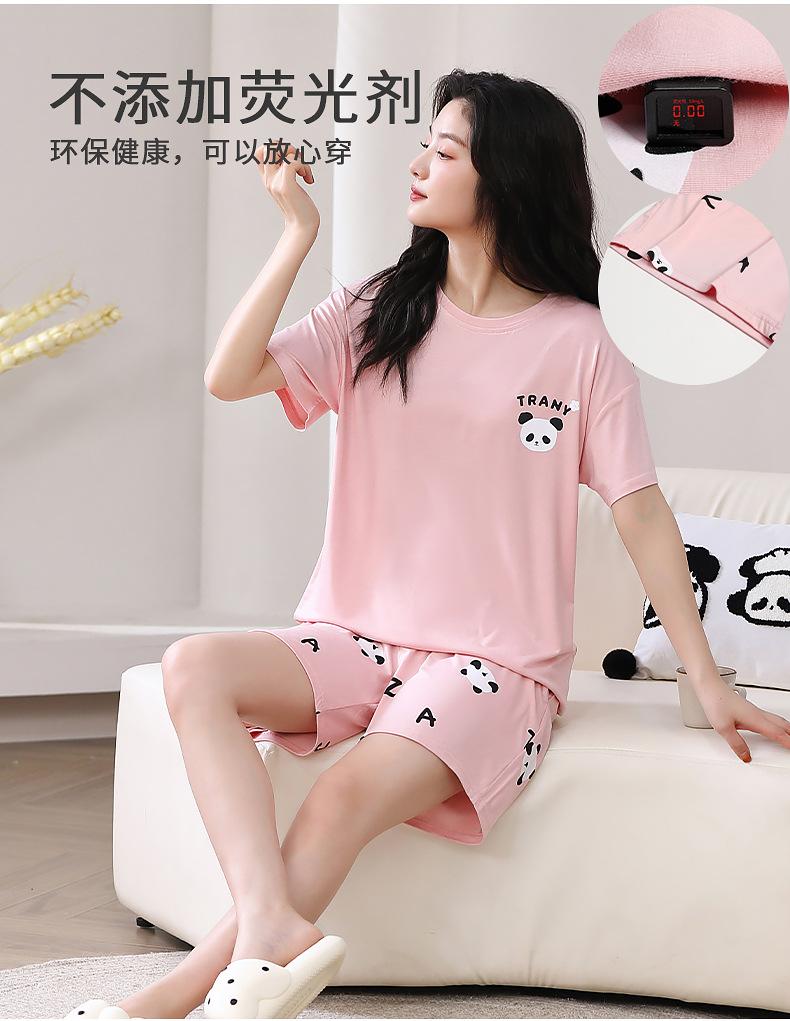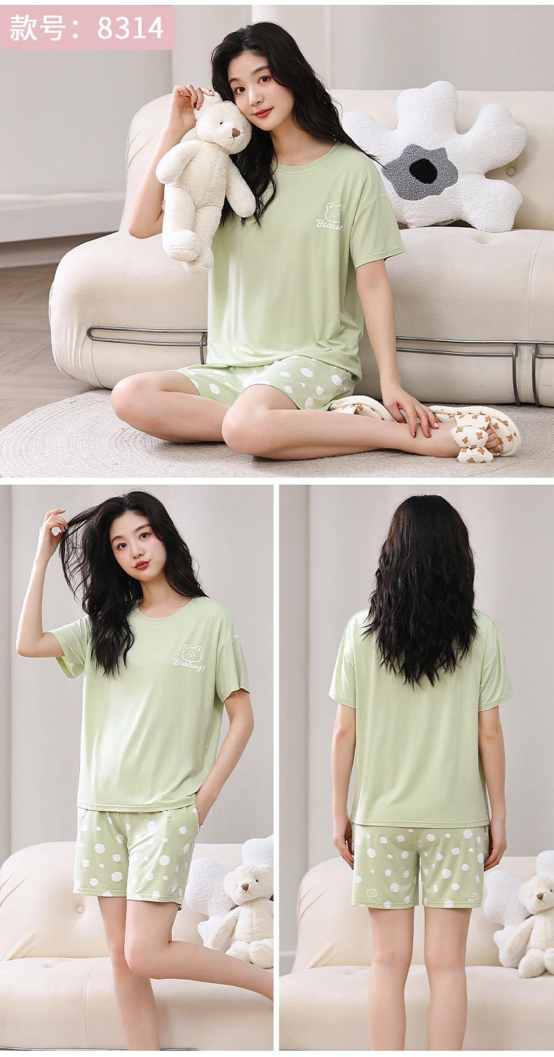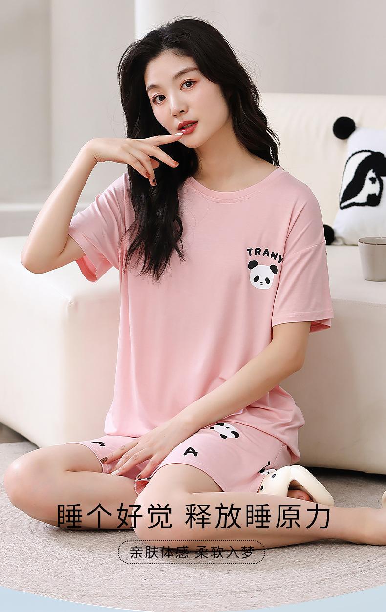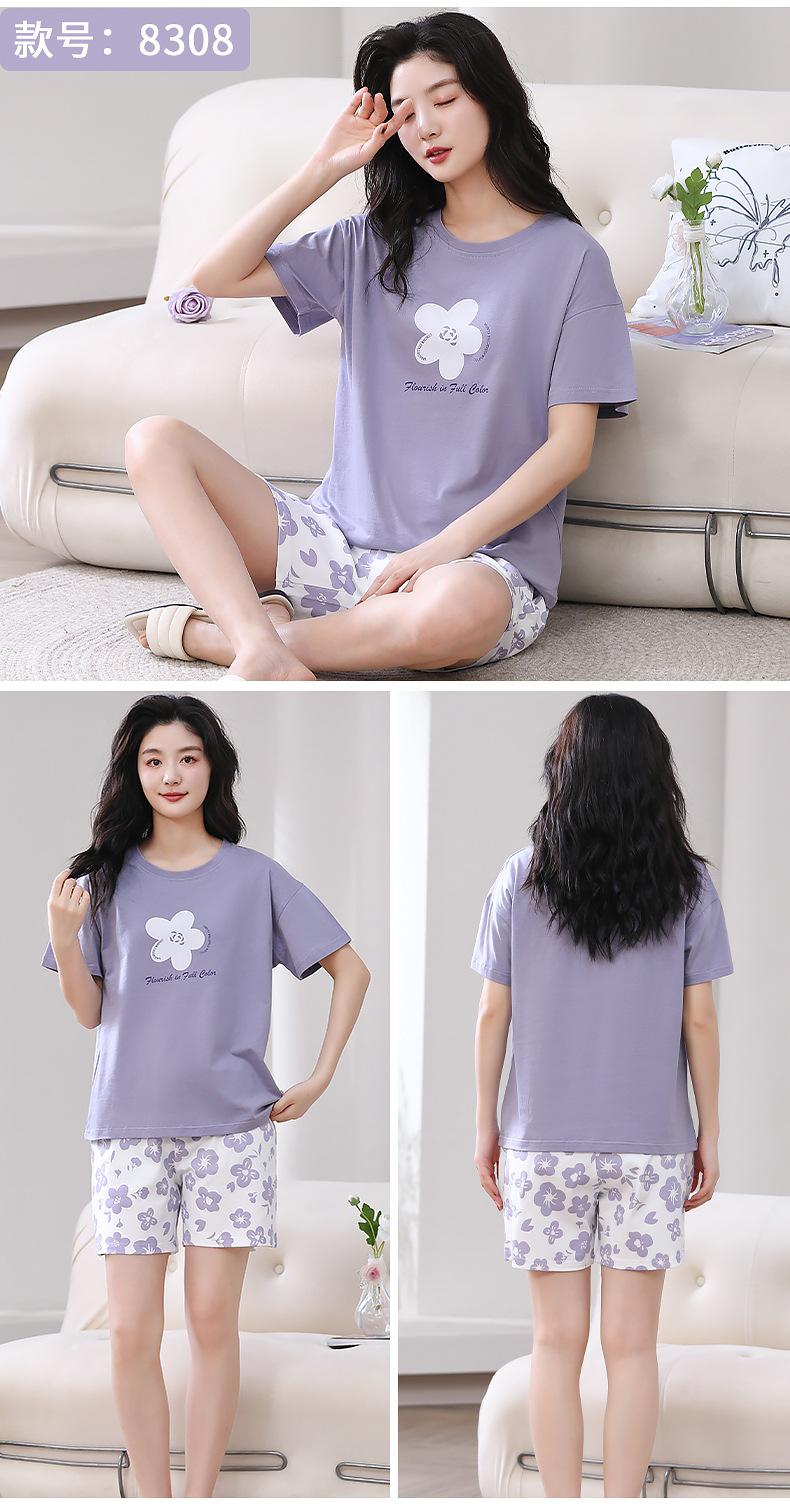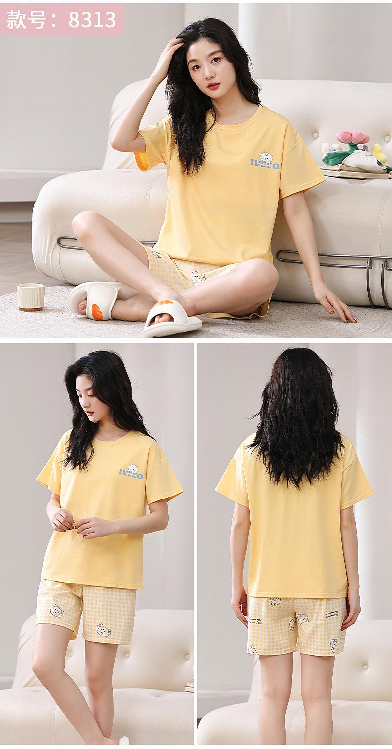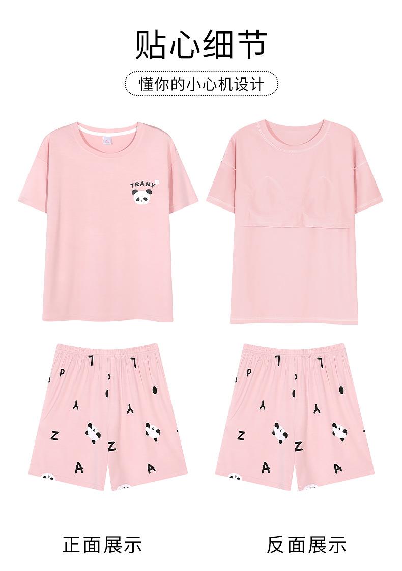 Pijama de algodón para mujer con almohadilla para el pecho, pantalones cortos de verano de manga corta, cuello redondo fino, ropa exterior holgada, ropa para el hogar, traje