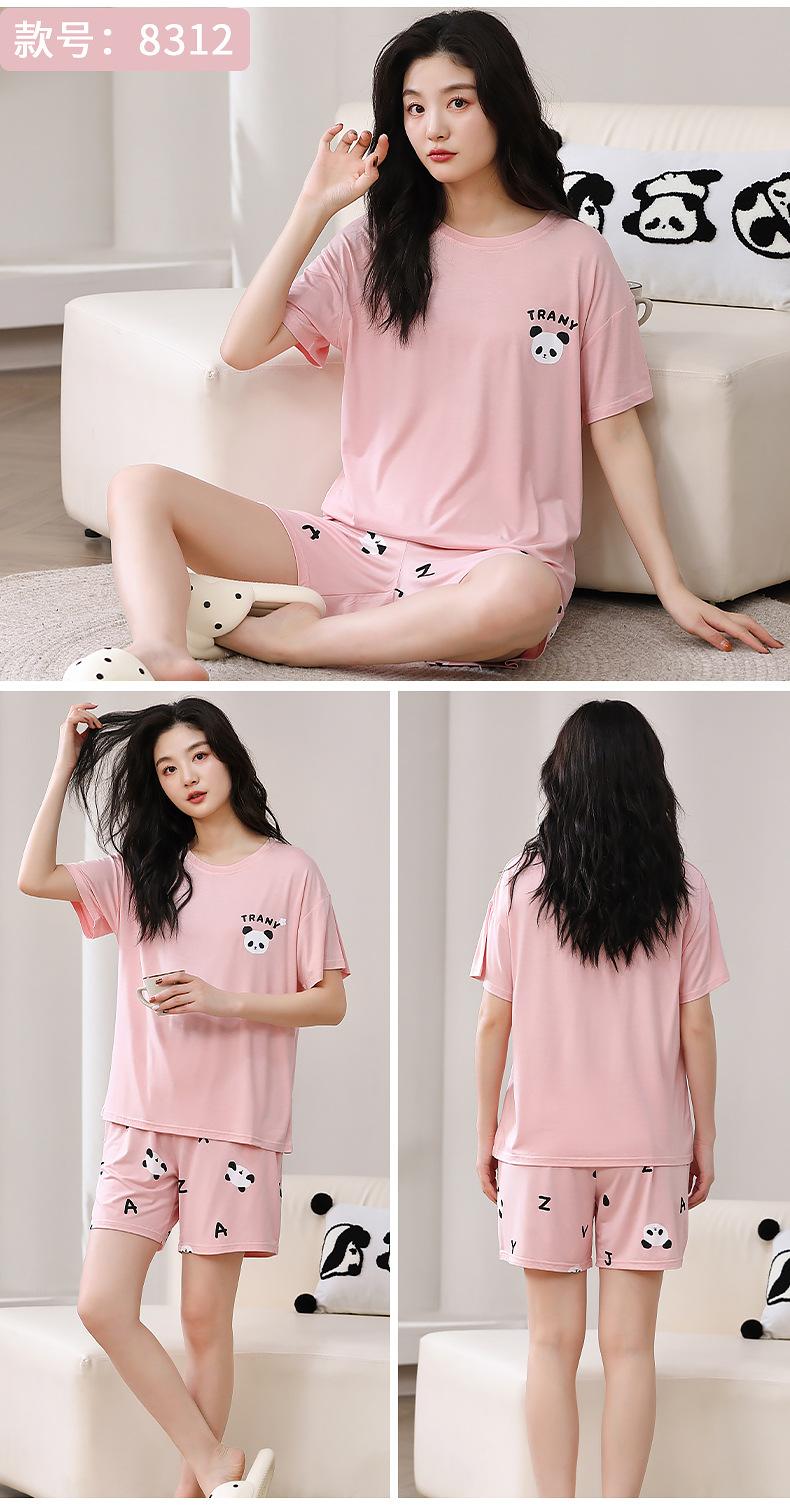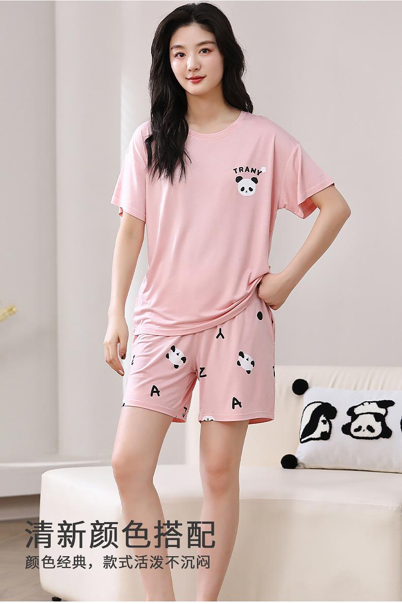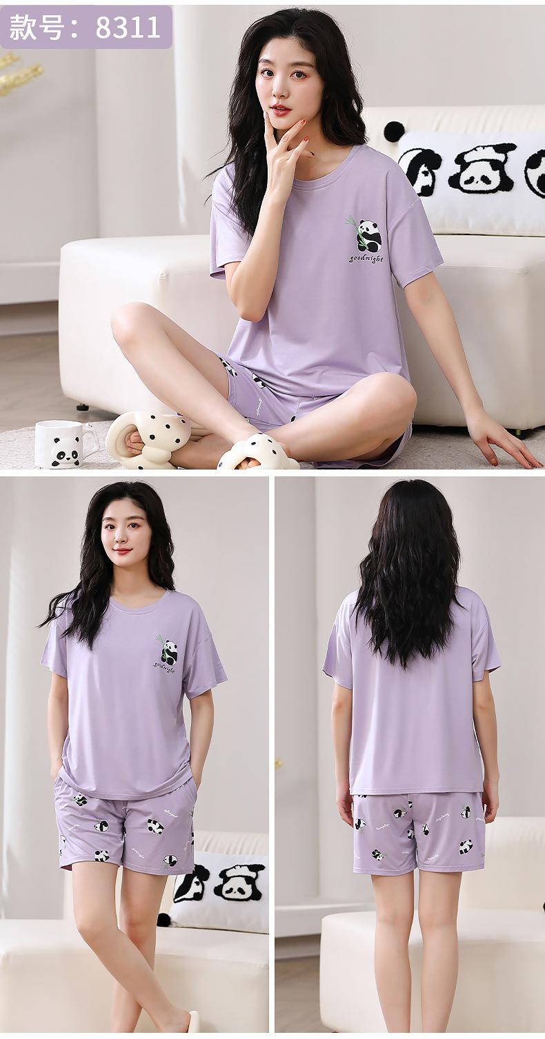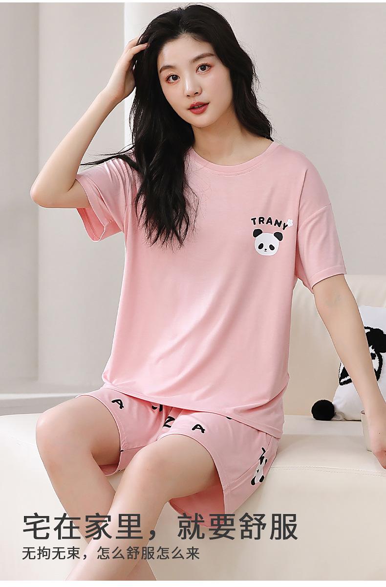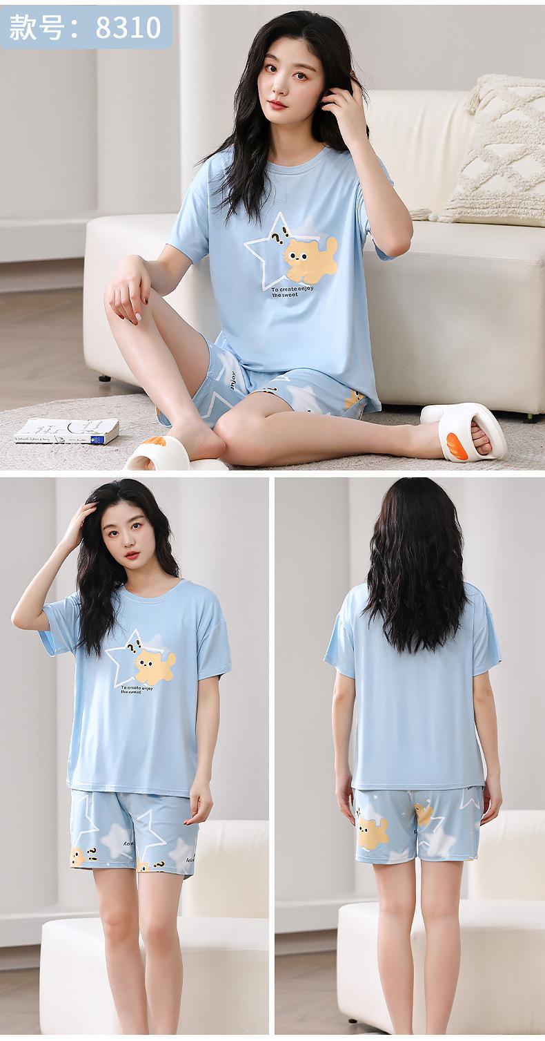 Pijama de algodón para mujer con almohadilla para el pecho, pantalones cortos de verano de manga corta, cuello redondo fino, ropa exterior holgada, ropa para el hogar, traje