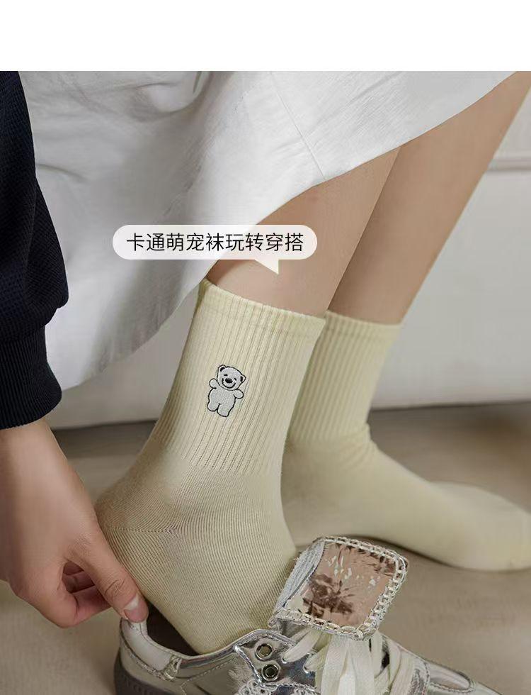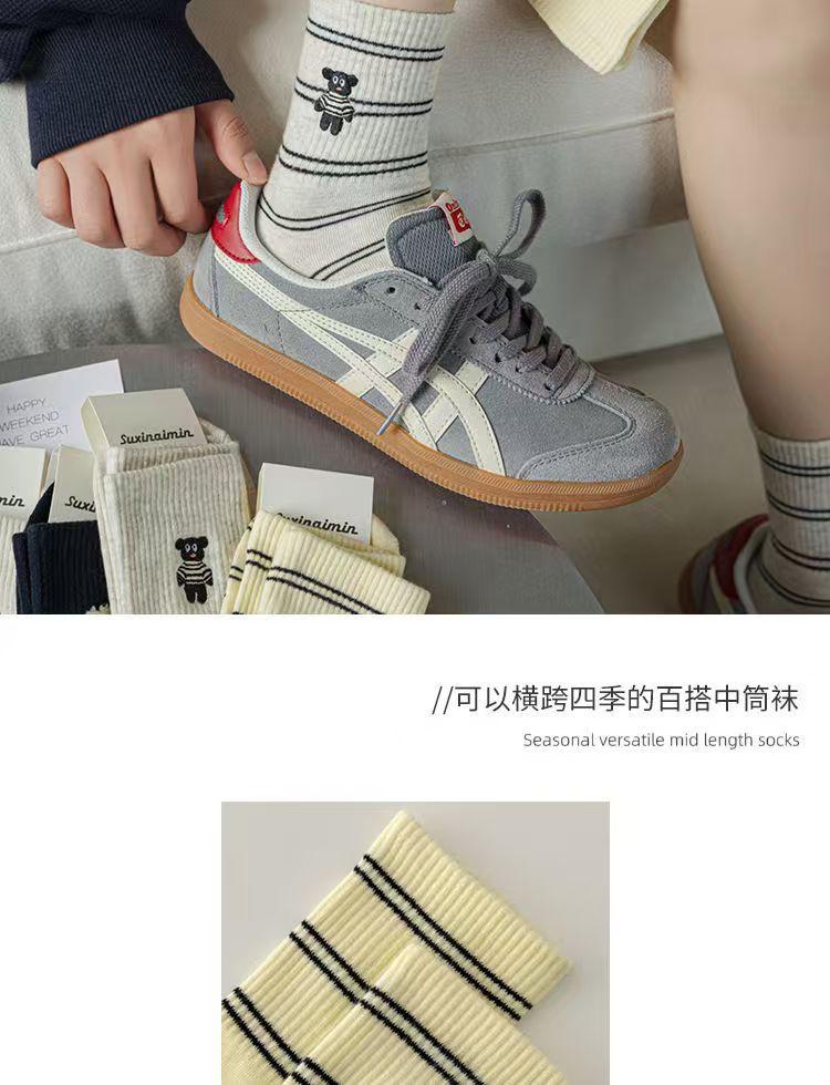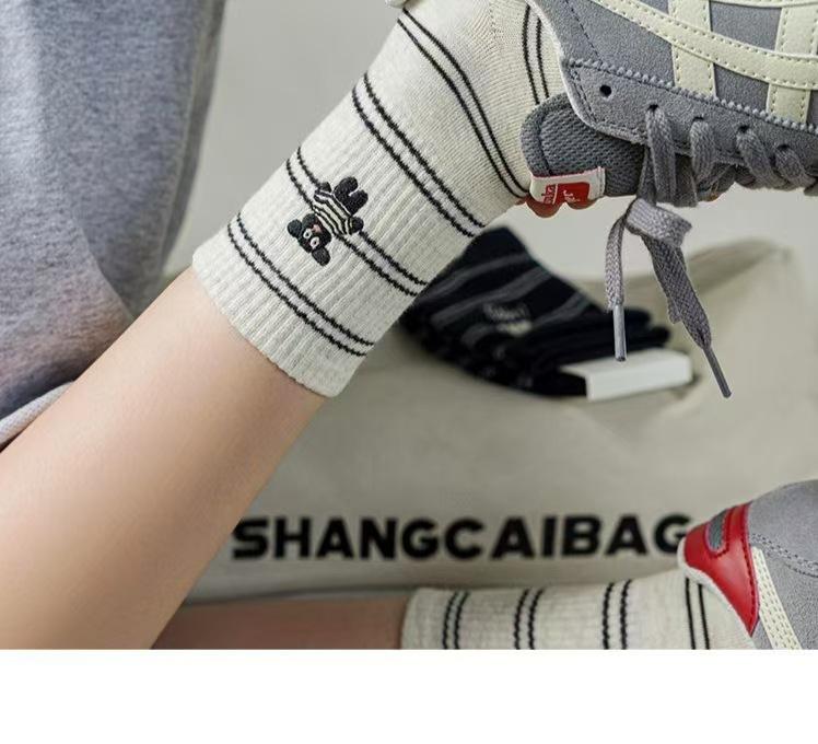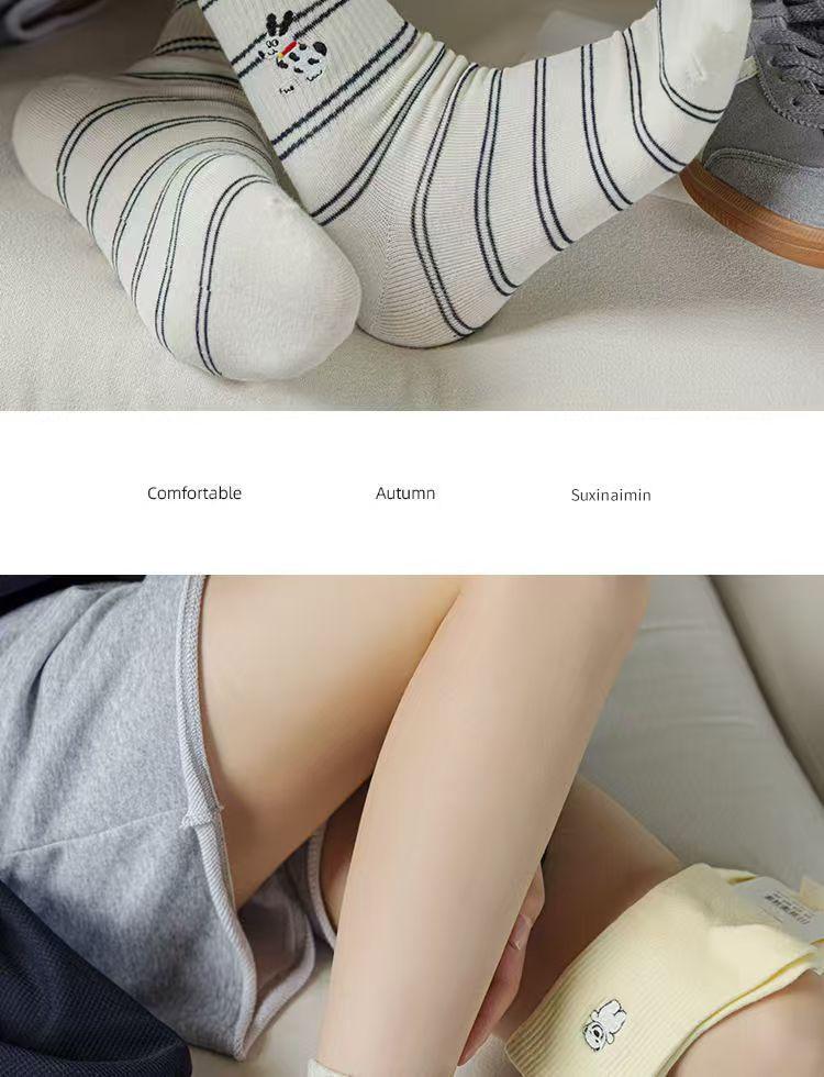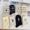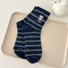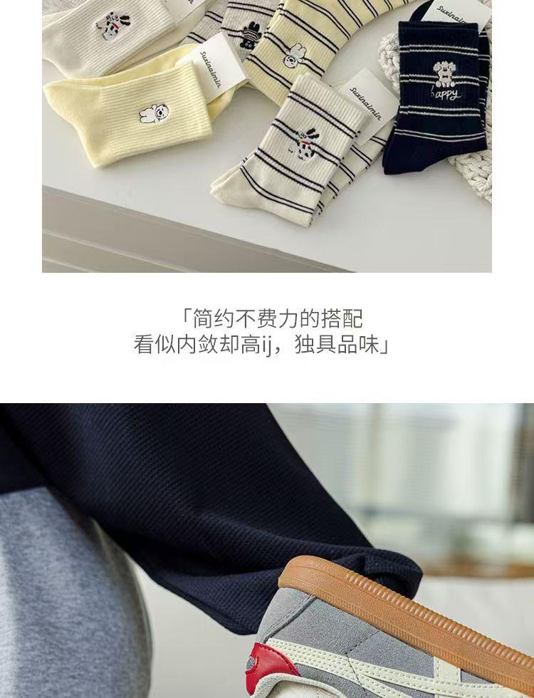 Calcetines de otoño para mujer, bonitos calcetines de rayas con diseño de perro, calcetines de longitud media, calcetines de estilo académico.