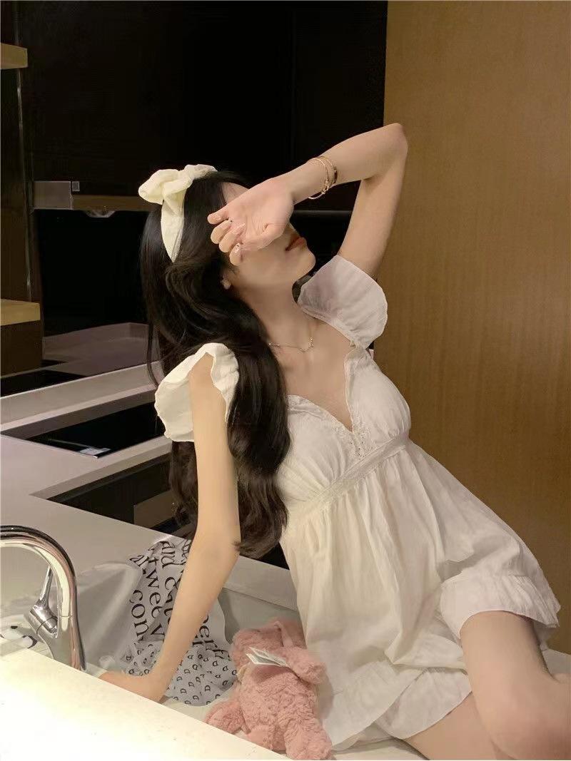 8835#White suit [with chest pad], Kt cat nightgown