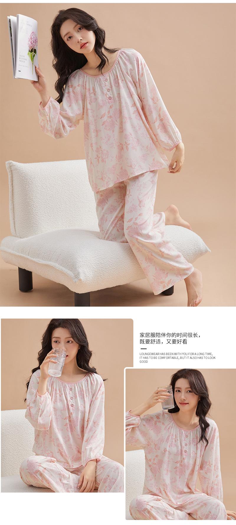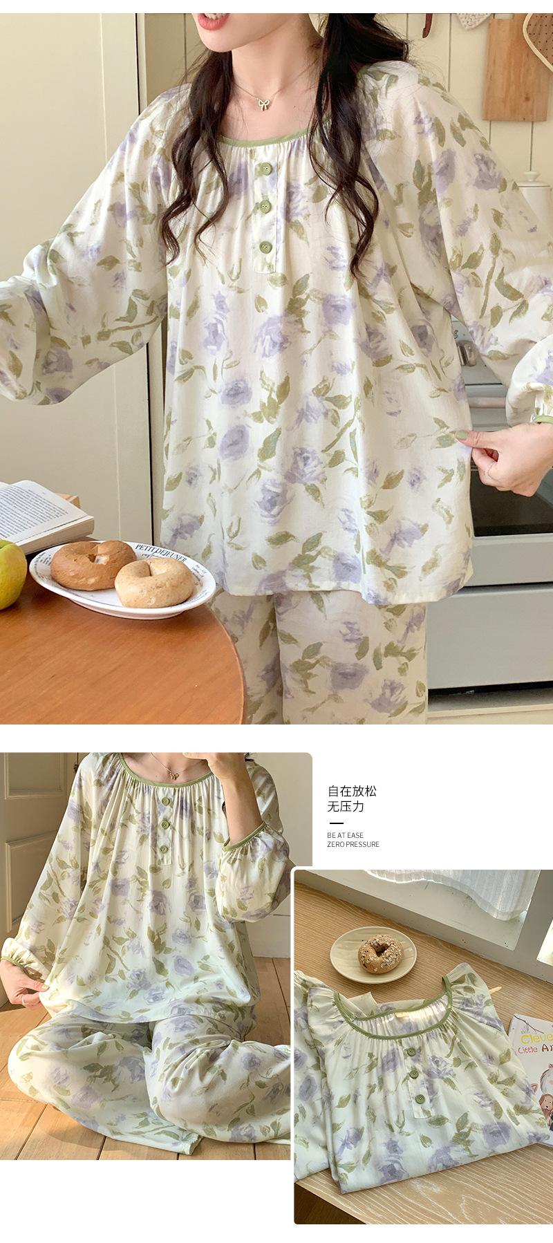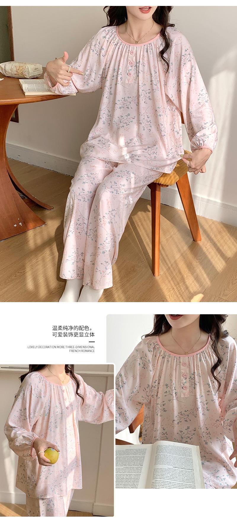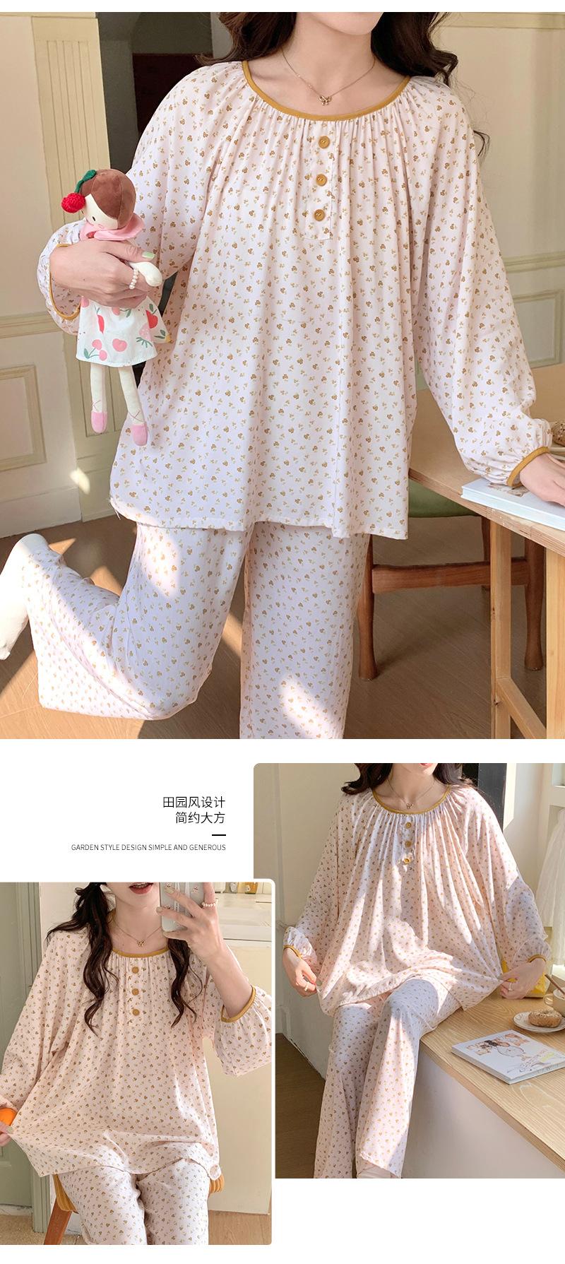 Pijama de primavera para mujer, nuevo estilo, para el hogar, con estampado holgado, cuello redondo, manga larga, estampado floral, informal, para uso exterior
