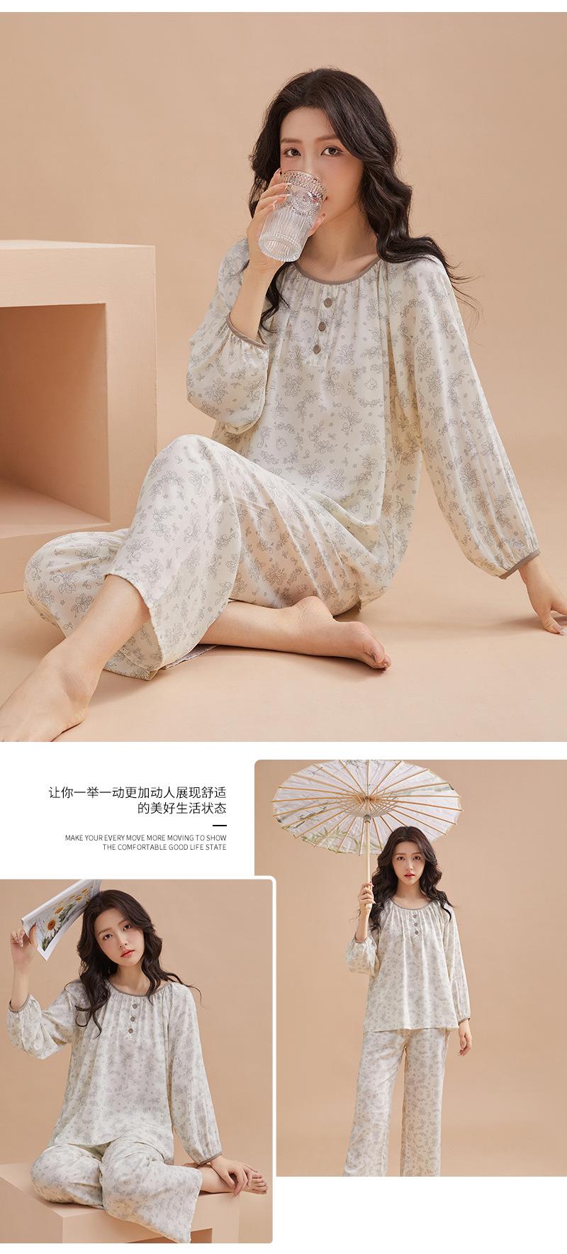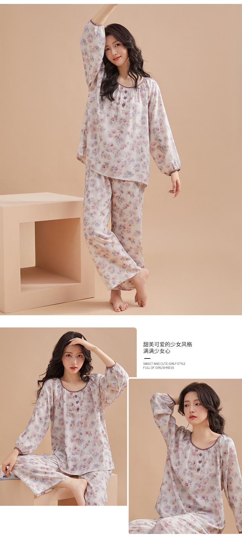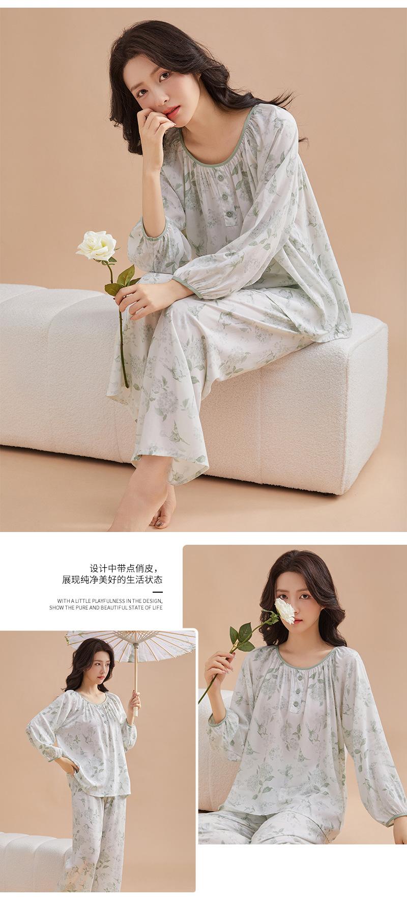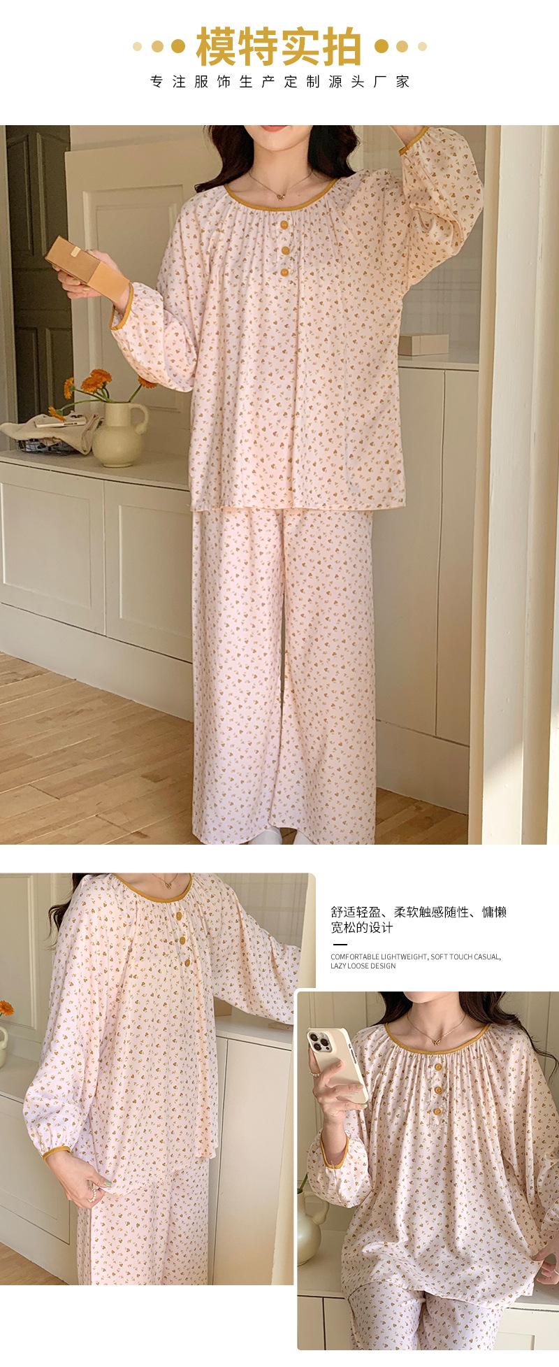 Pijama de primavera para mujer, nuevo estilo, para el hogar, con estampado holgado, cuello redondo, manga larga, estampado floral, informal, para uso exterior