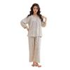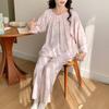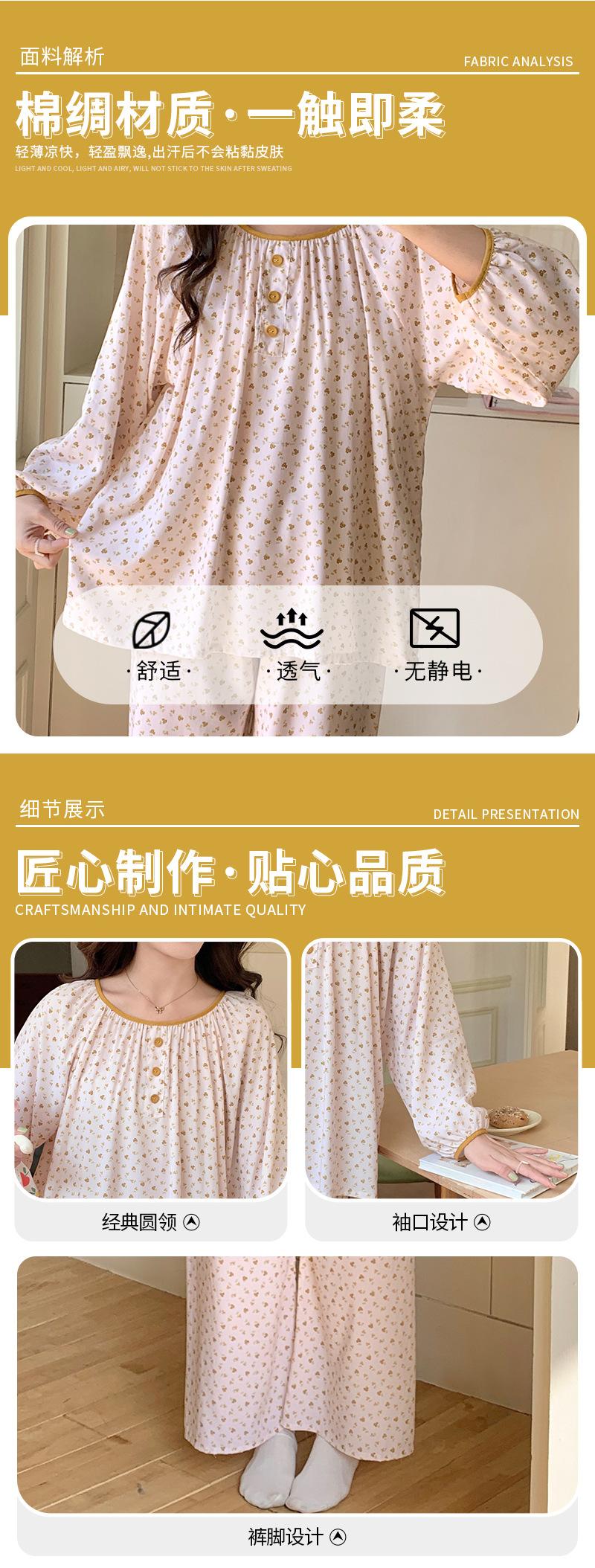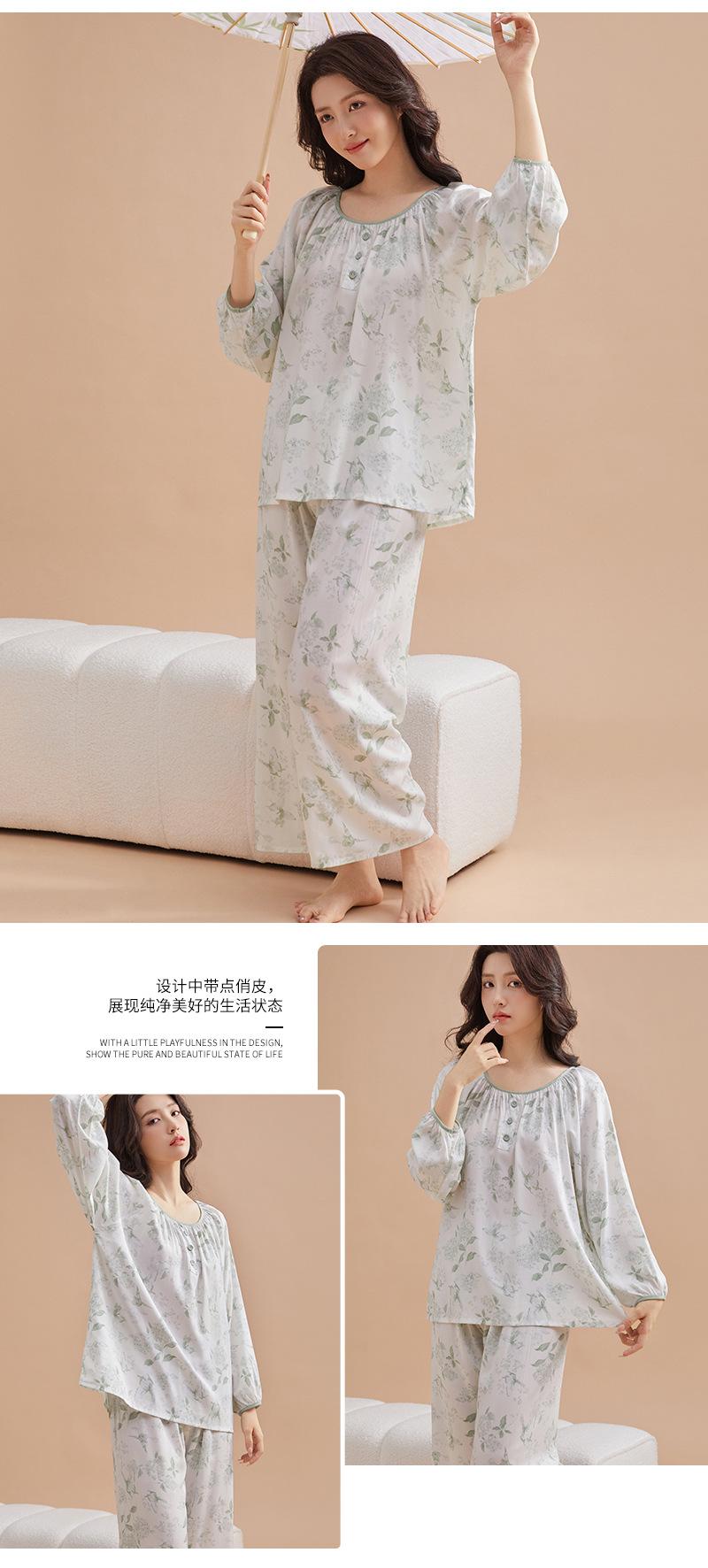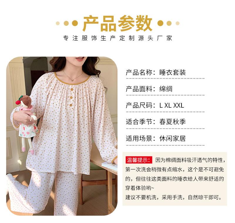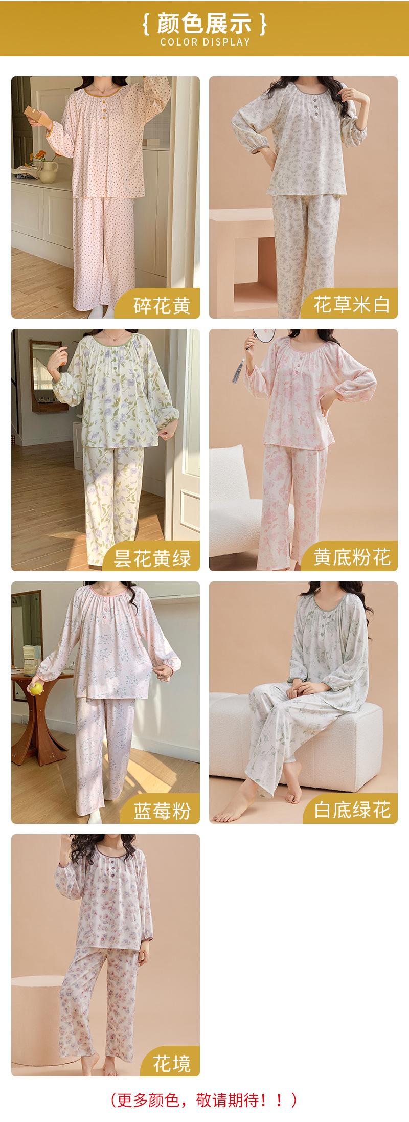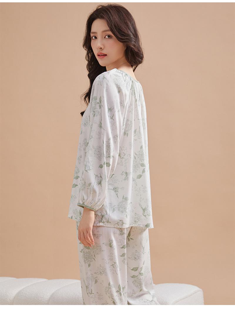 Pijama de primavera para mujer, nuevo estilo, para el hogar, con estampado holgado, cuello redondo, manga larga, estampado floral, informal, para uso exterior
