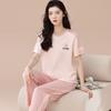 Pijama de algodón puro para mujer, jersey de manga corta, pantalones, ropa de hogar, traje fino transpirable de verano, novedad de 2025