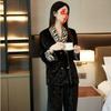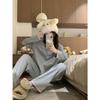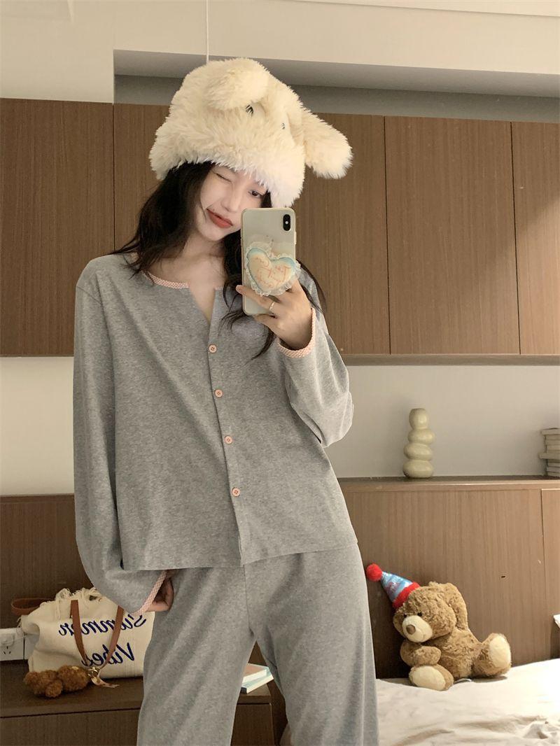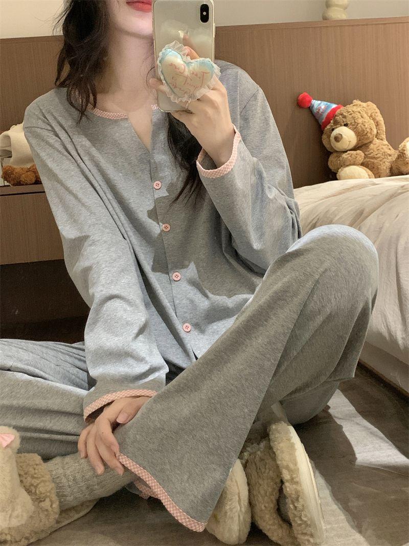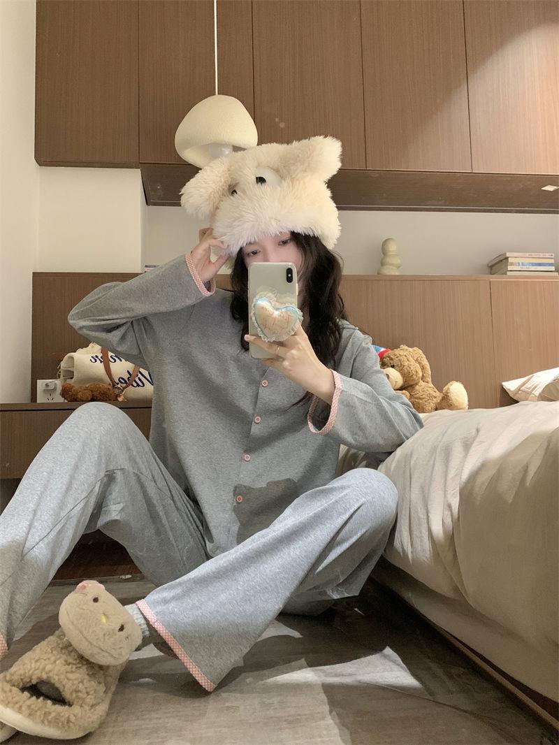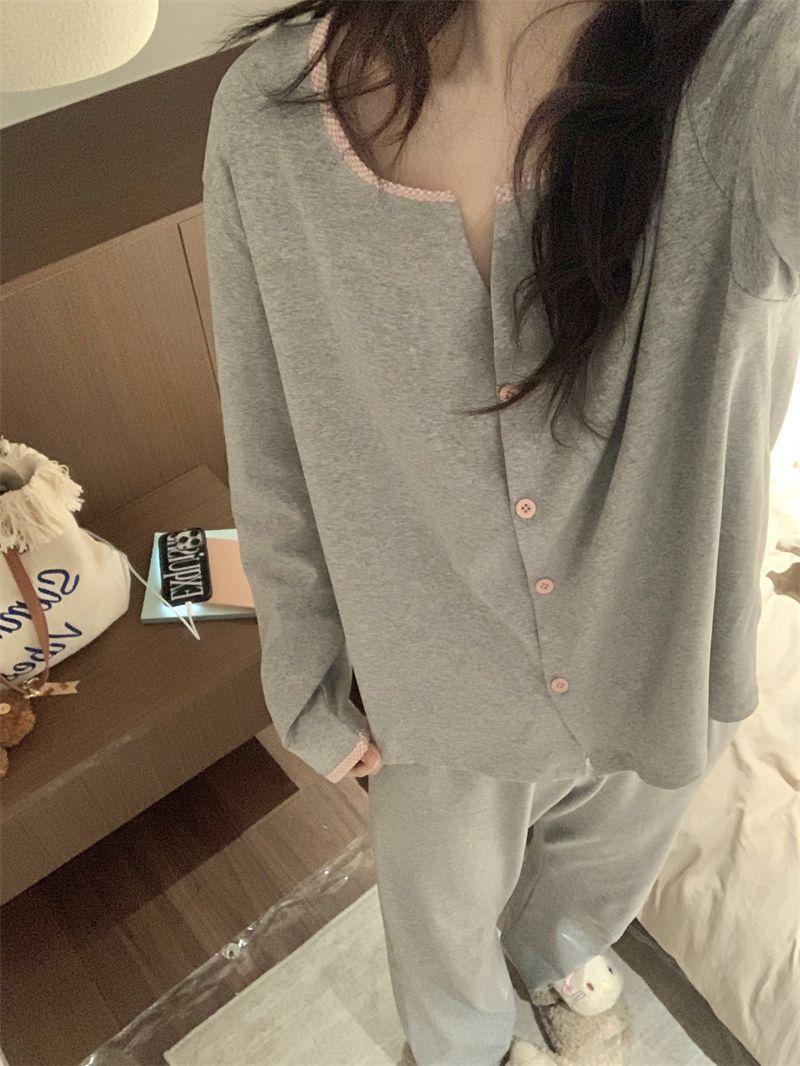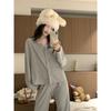 Pijamas de mujer para primavera y otoño, ropa de casa, traje de mujer de alta gama, sentido del color sólido, cárdigan suelto, pantalones de manga larga, primavera y otoño