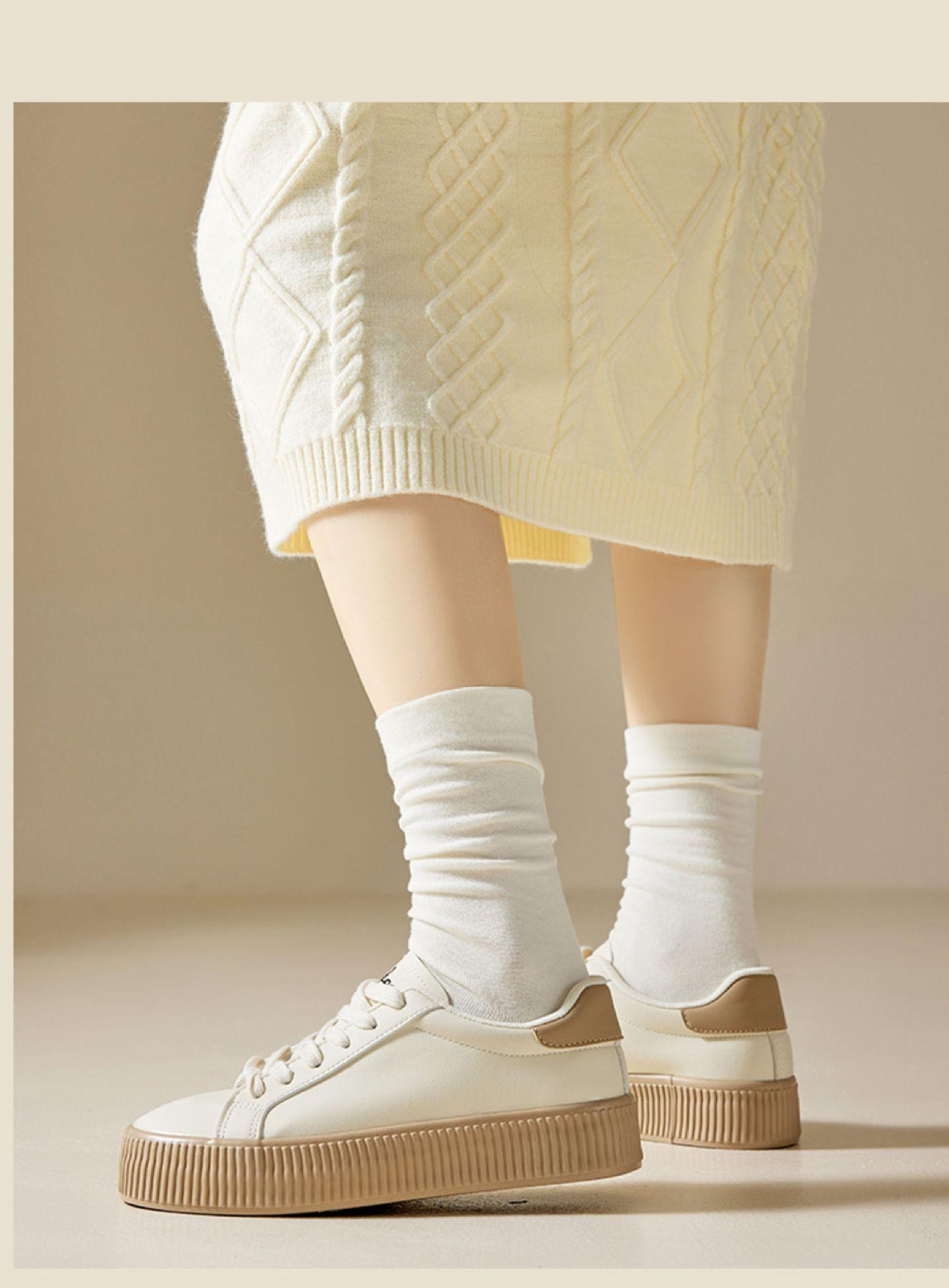 Calcetines de primavera y otoño para mujer, de algodón, sueltos, de color liso, con agujeros de luna, estilo japonés, modernos, en blanco y negro, a juego.
