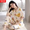 Pijama de verano para mujer, pantalones de manga corta, cárdigan fino de algodón de verano para mujer, ropa de casa de talla grande, traje