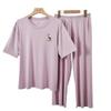 Pijamas de modal para mujer, ropa de casa de verano de manga corta, pijamas de cuello redondo para mujer, traje de verano para niñas para el hogar y el ocio.