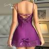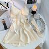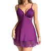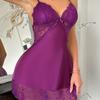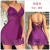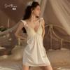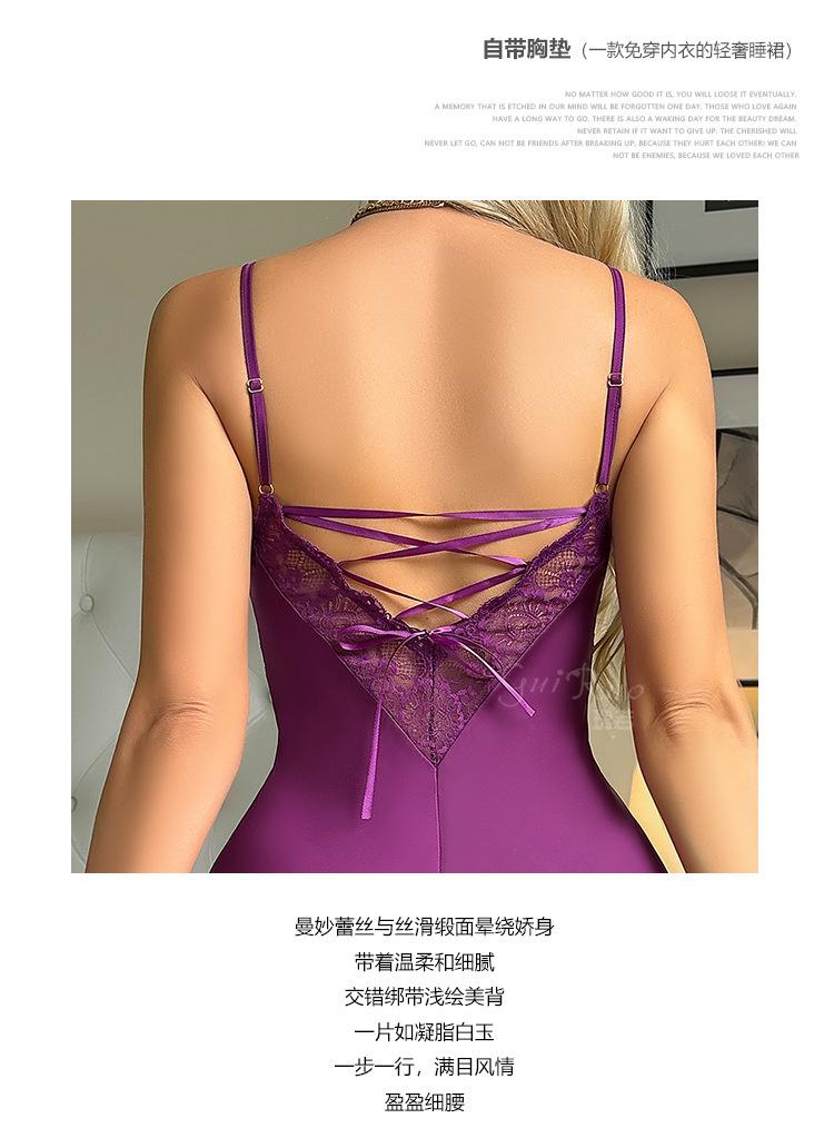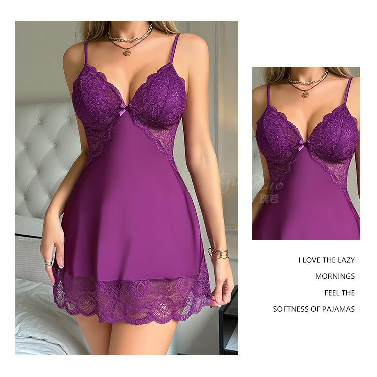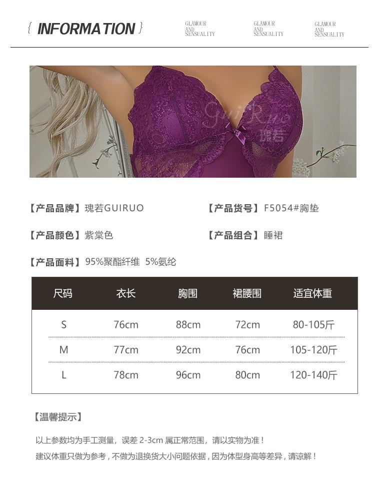 Guiruo Ms. Pijama de Seda de Hielo de Comercio Exterior Escote en V Profundo con Relleno en el Pecho Camisón de Encaje Dulce Traje Ropa para el Hogar F5054