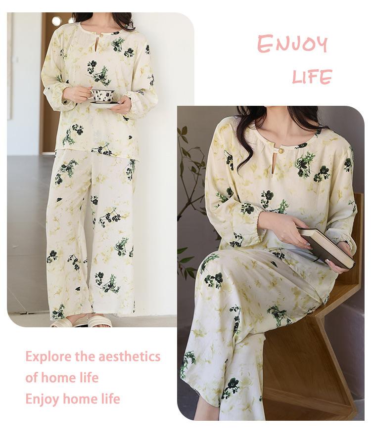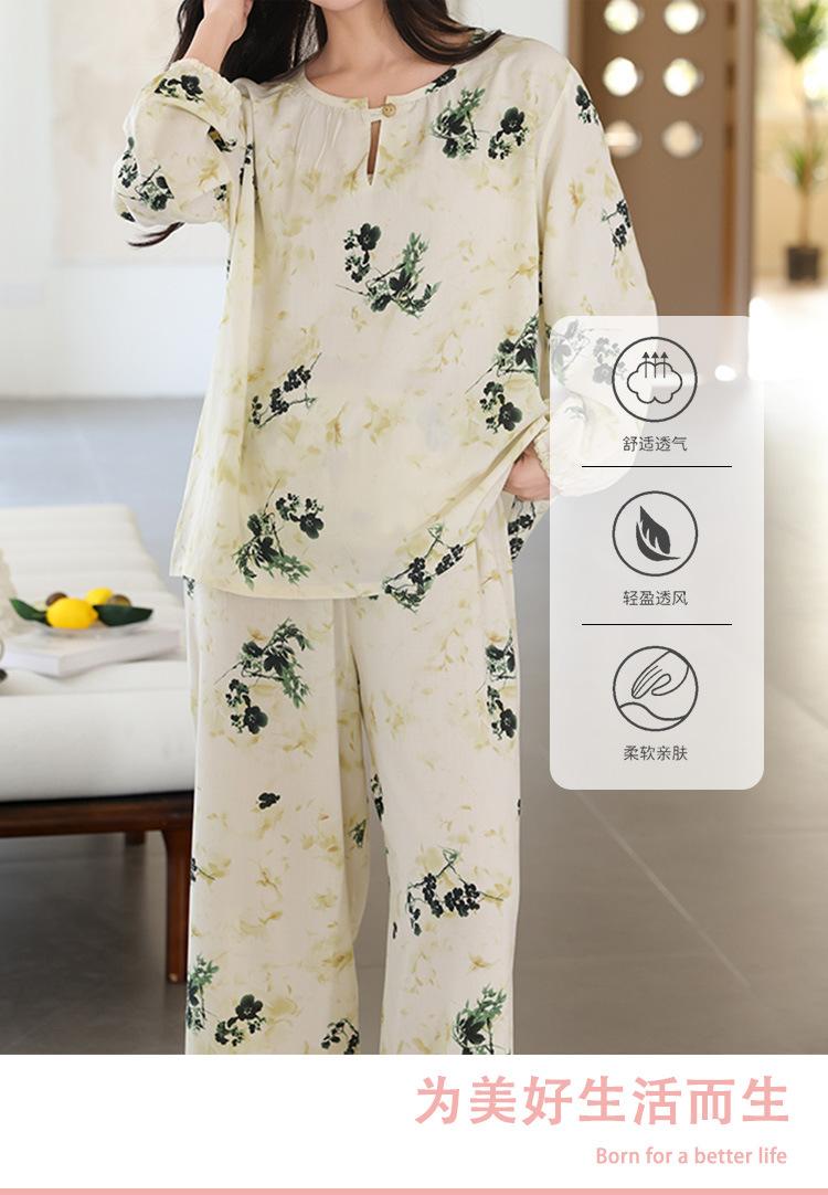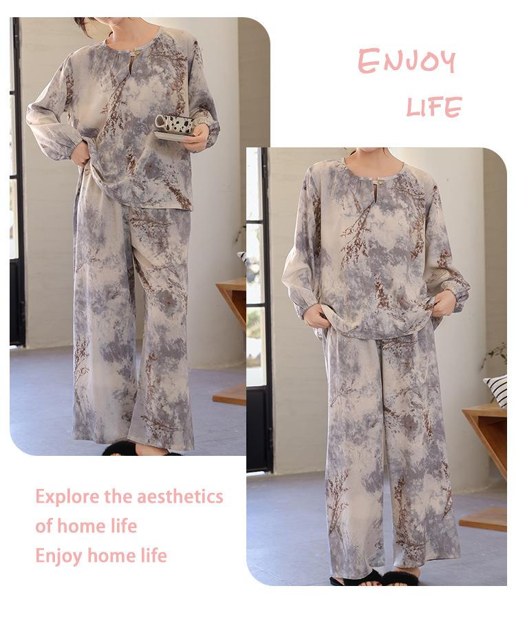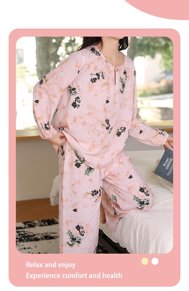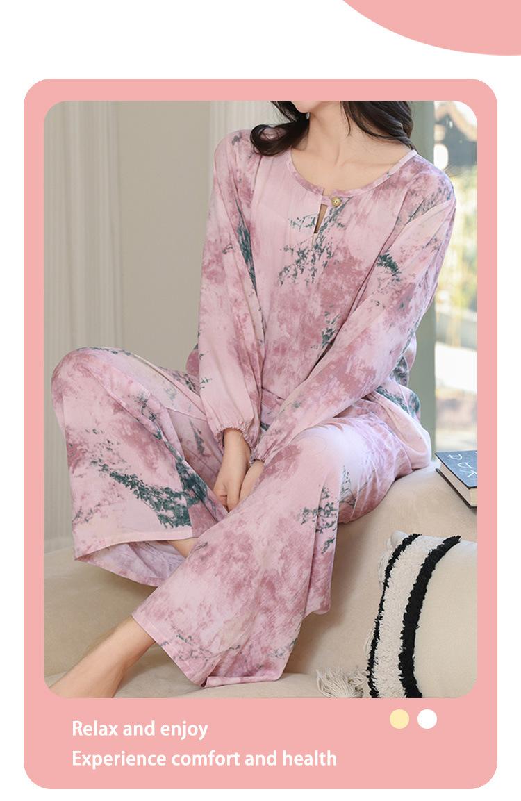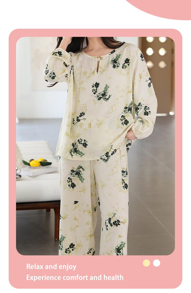 Pijama de Algodón Seda Talla Grande para Chica Gordita para Mujer Primavera y Otoño Nuevo Estilo Chino Estilo Nacional Ropa de Casa Holgada Traje de Algodón Seda de Verano