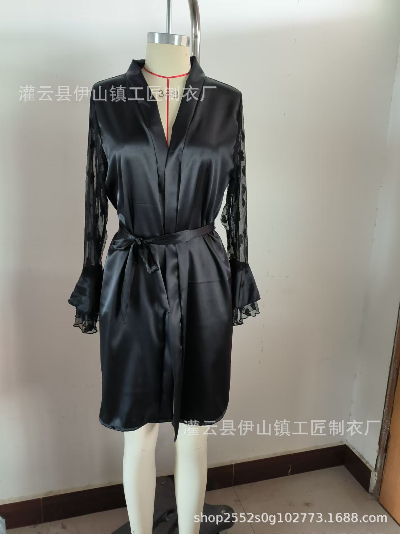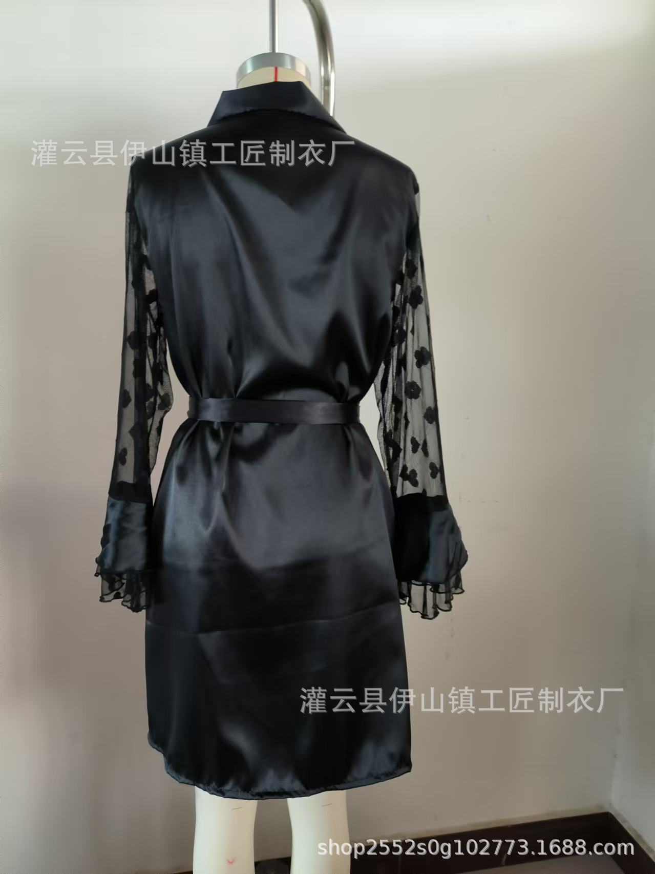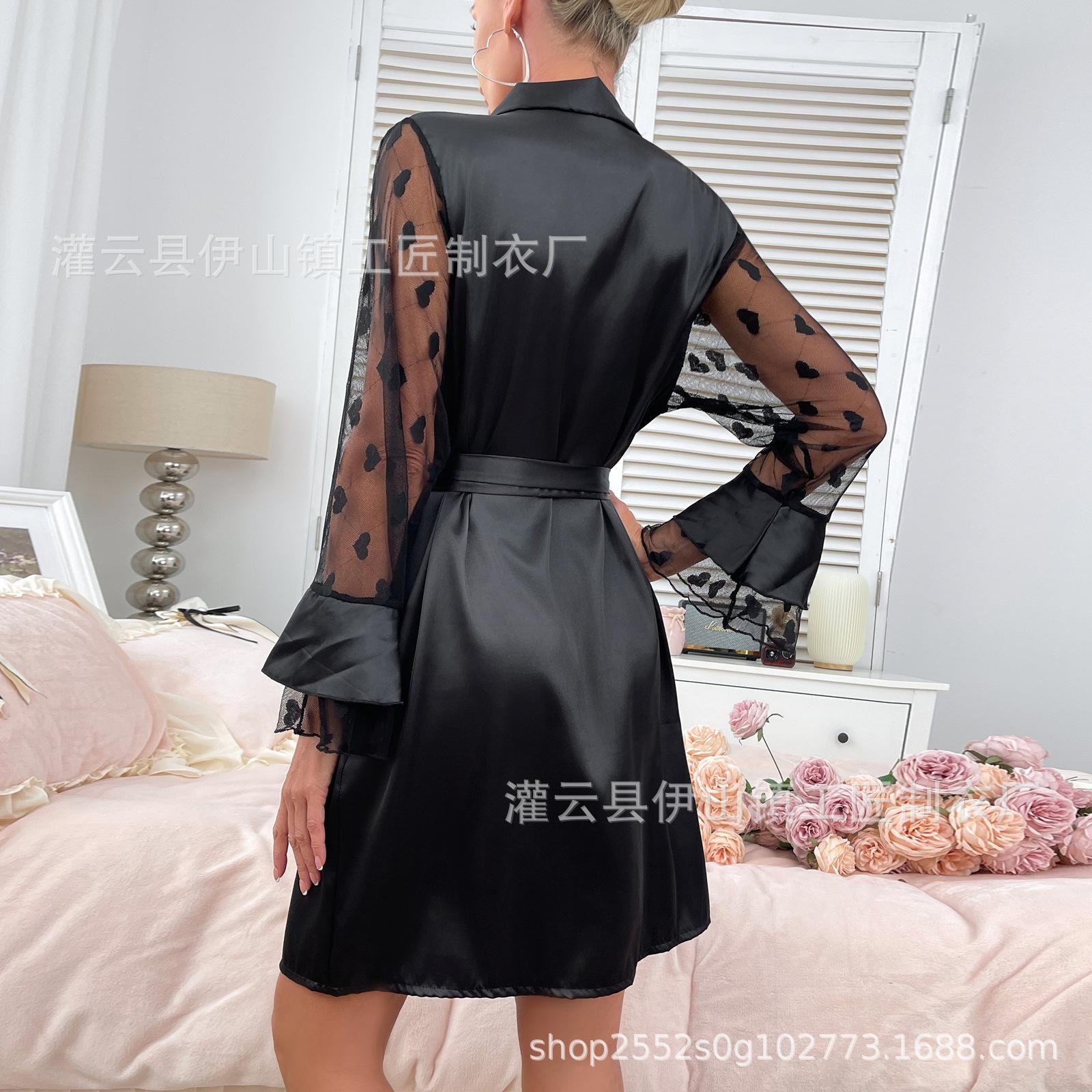 Bata de Noche de Satén Nueva para Mujer de Verano Europea y Americana Transfronteriza Mangas Amorosas Sexy Ropa para el Hogar Pijamas Nobles de Lujo