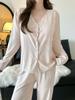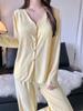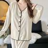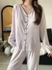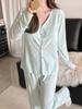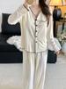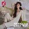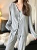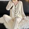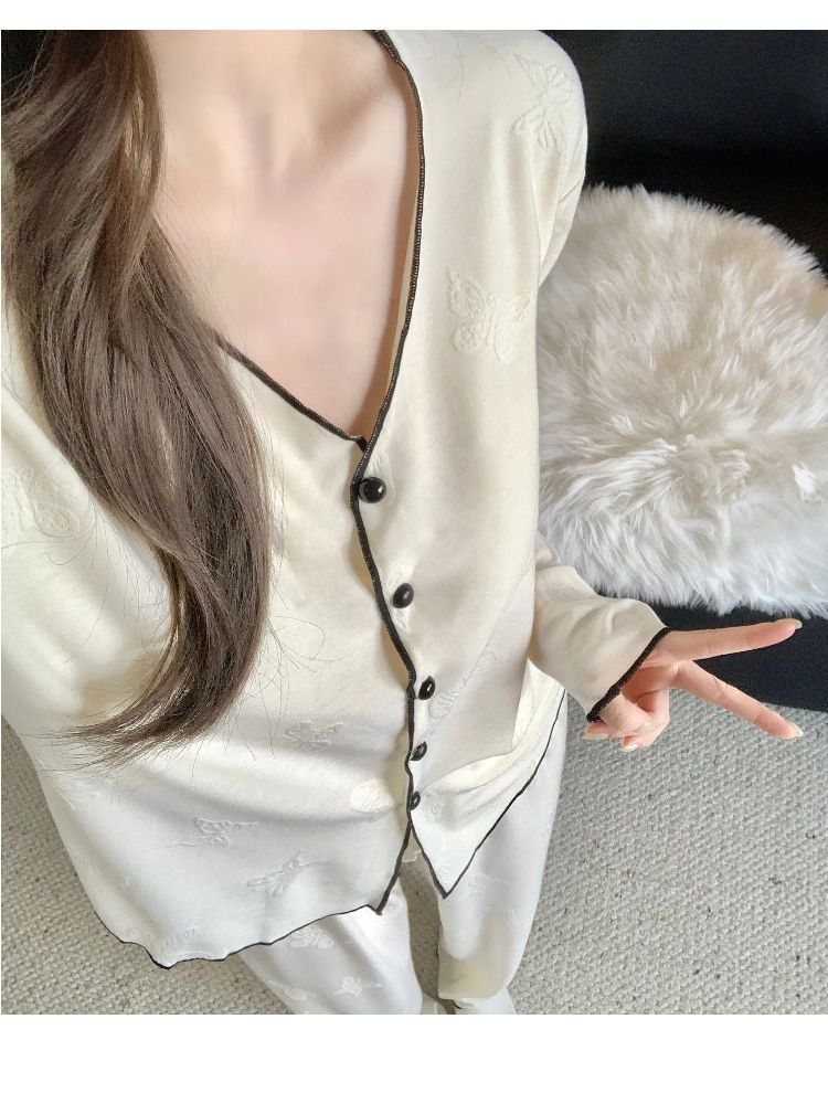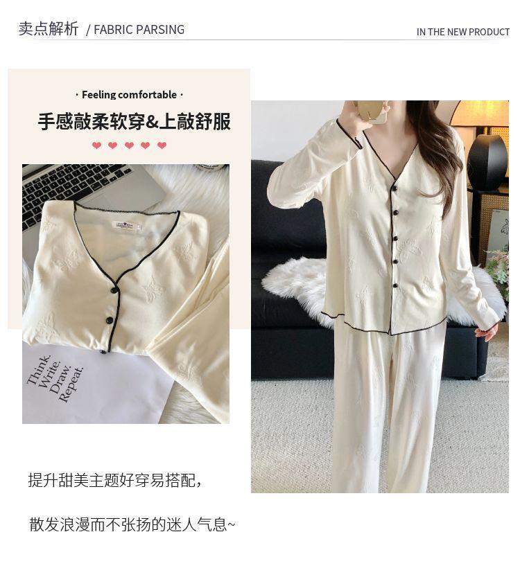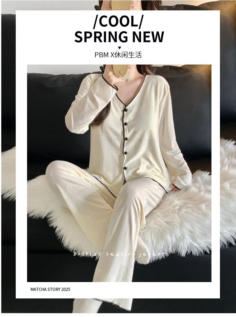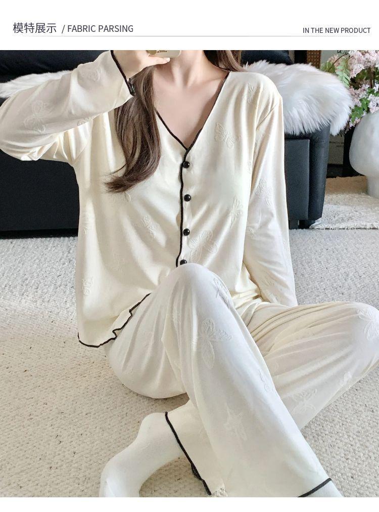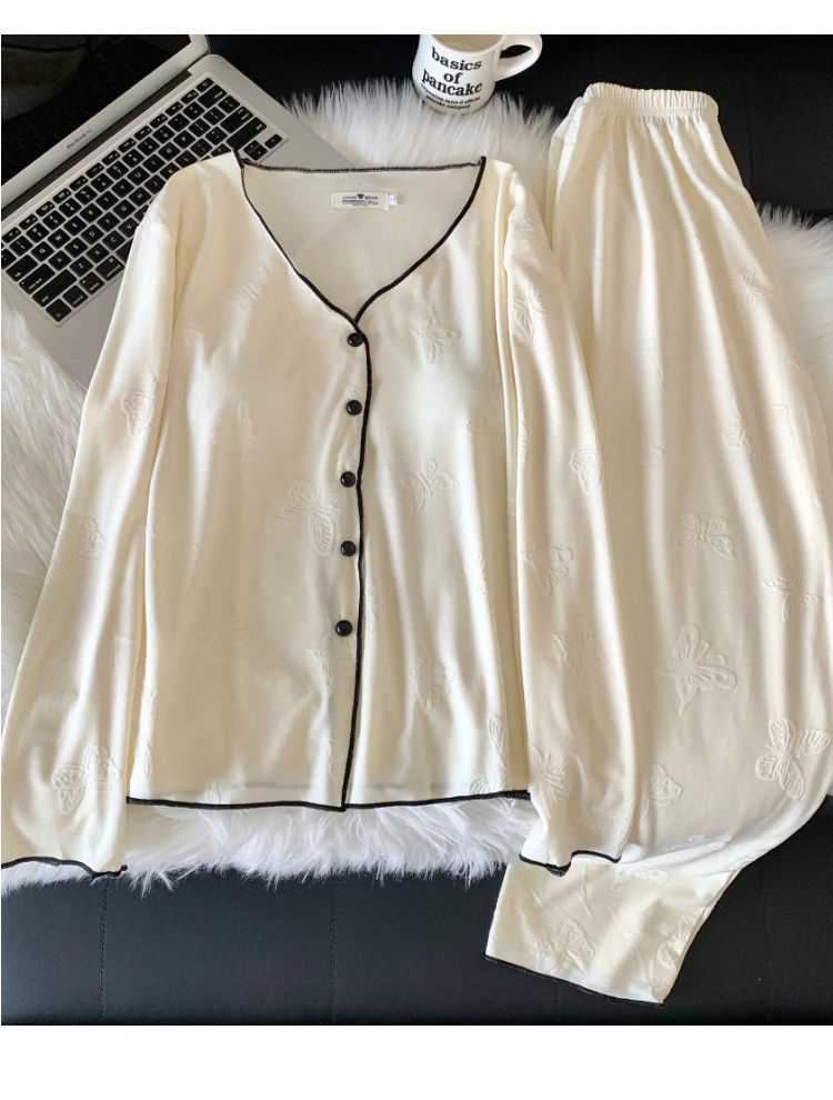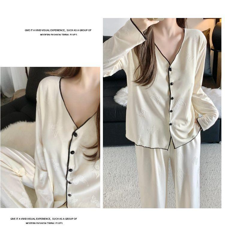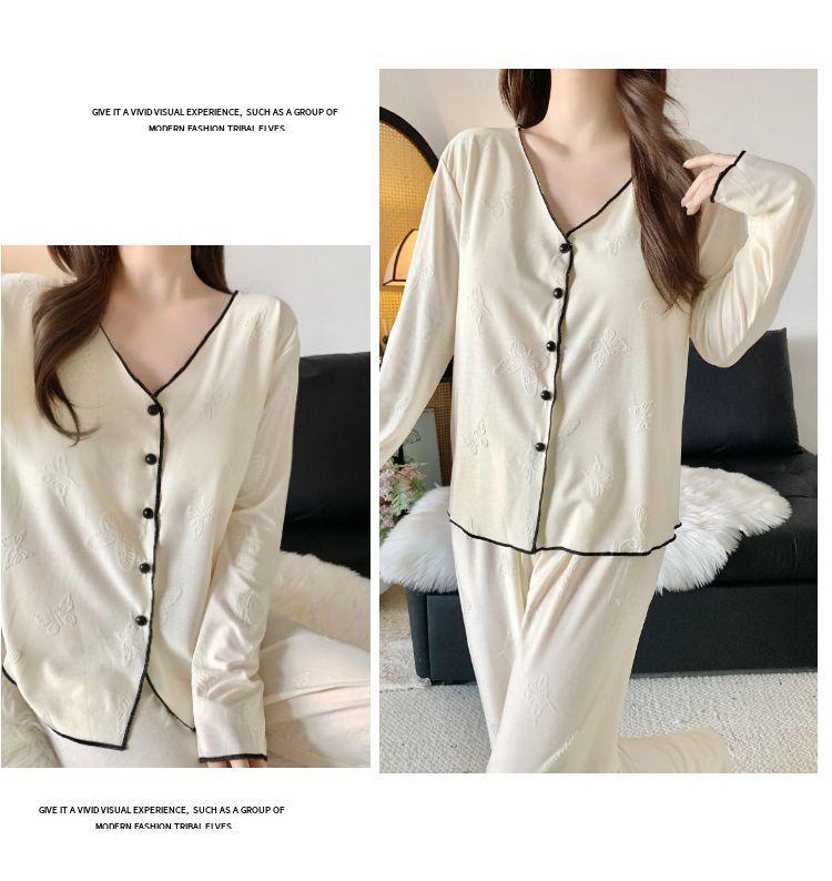 2025 Nuevo Pijama Casual Simple de Algodón Tencel con Relieve de Mariposa para Primavera y Otoño para Mujer, Conjunto de Ropa de Dormir de Manga Larga y Pantalón Largo