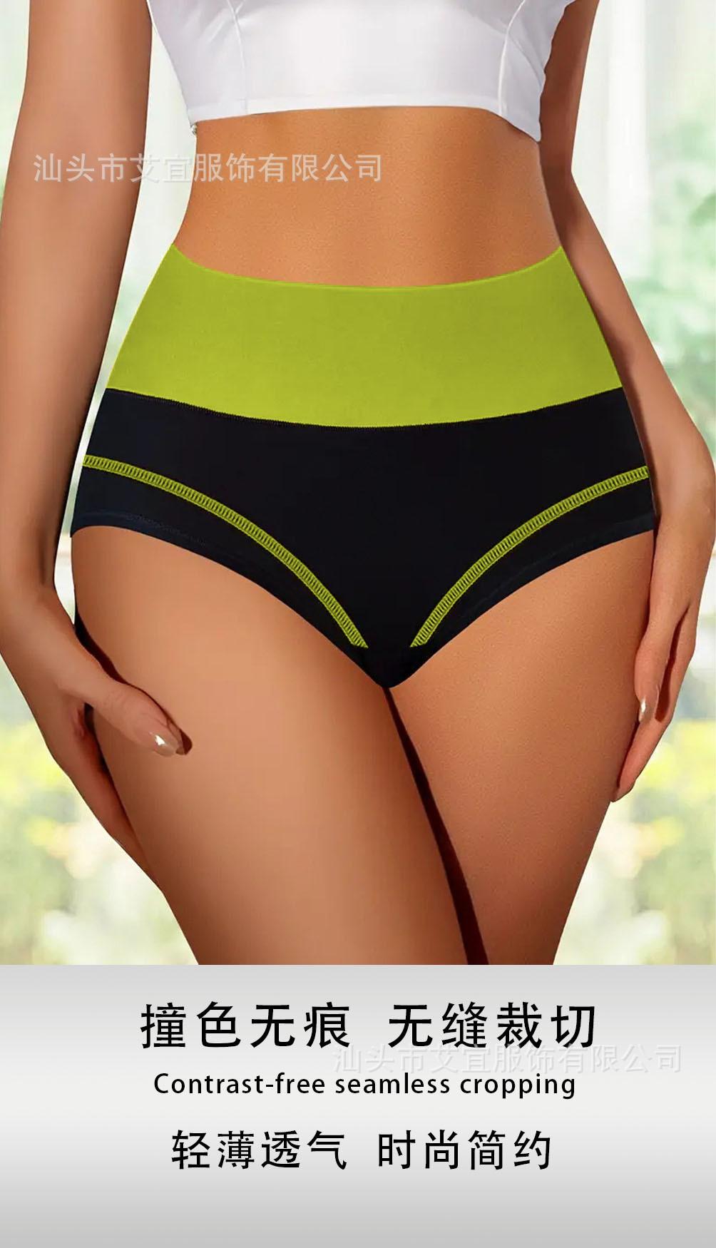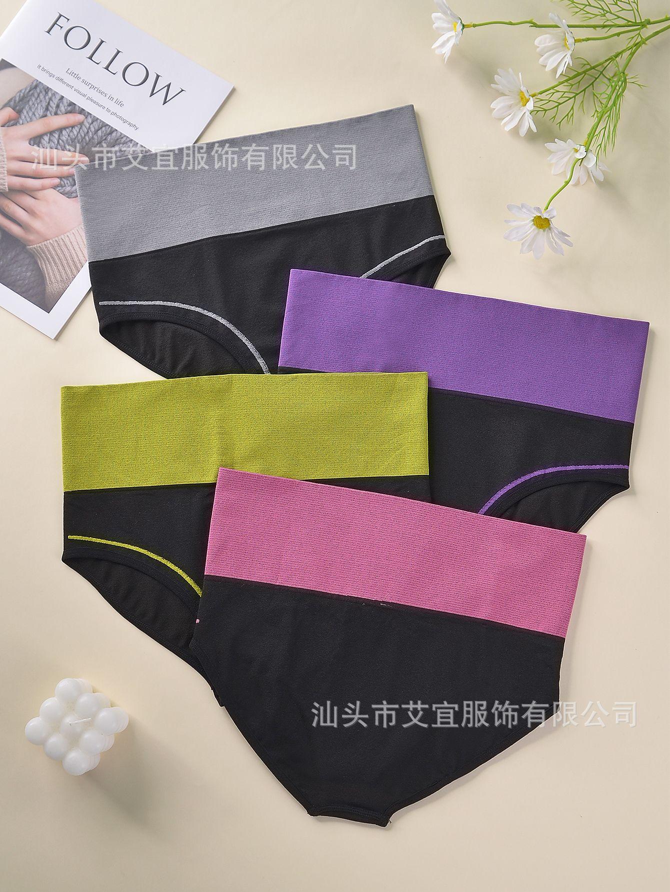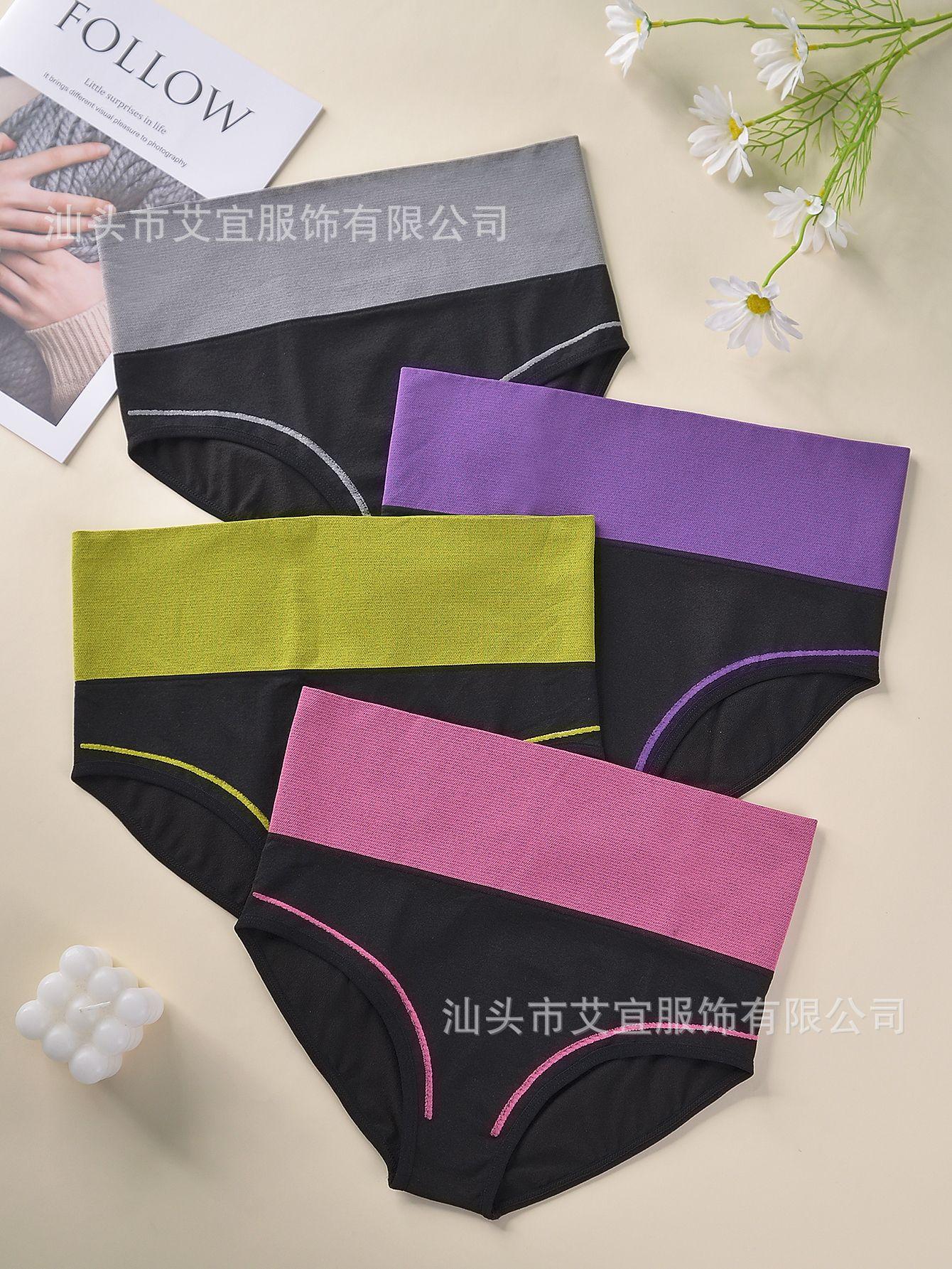Amazon Paquete de 4 Ropa Interior Seamless de Cintura Alta para Mujer, Absorbe la Humedad, Transpirable, Diseño de Bloques de Color, Tejido Suave para Uso Diario