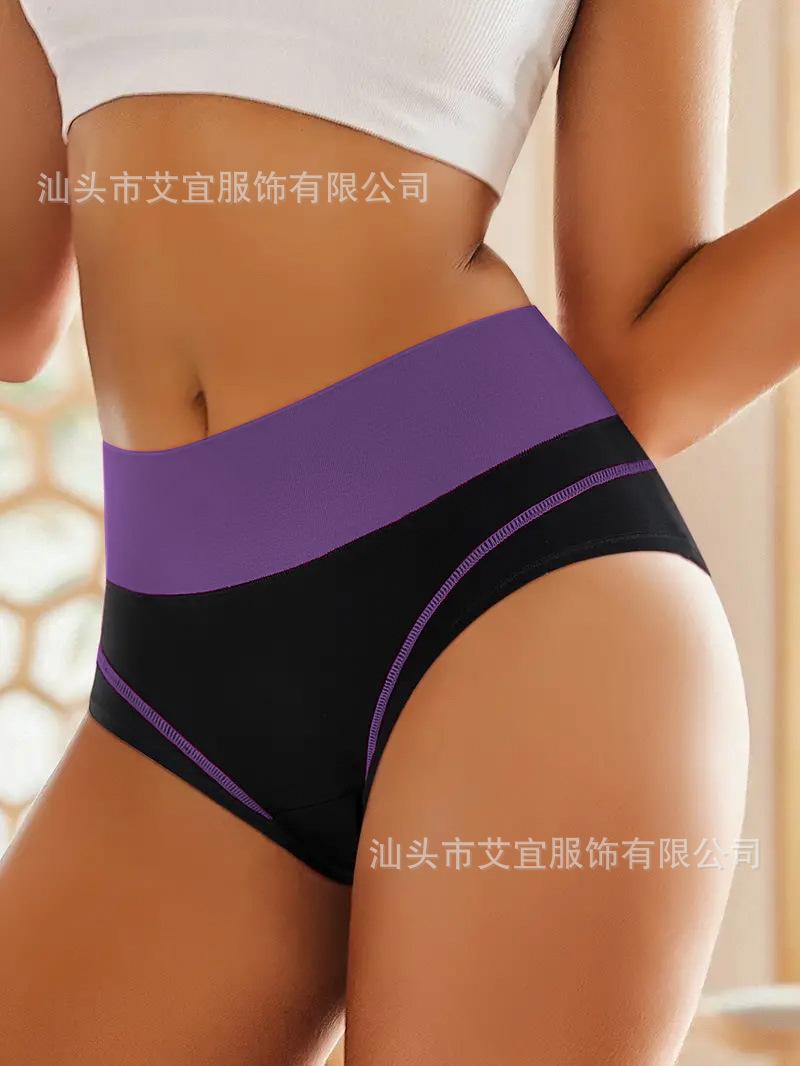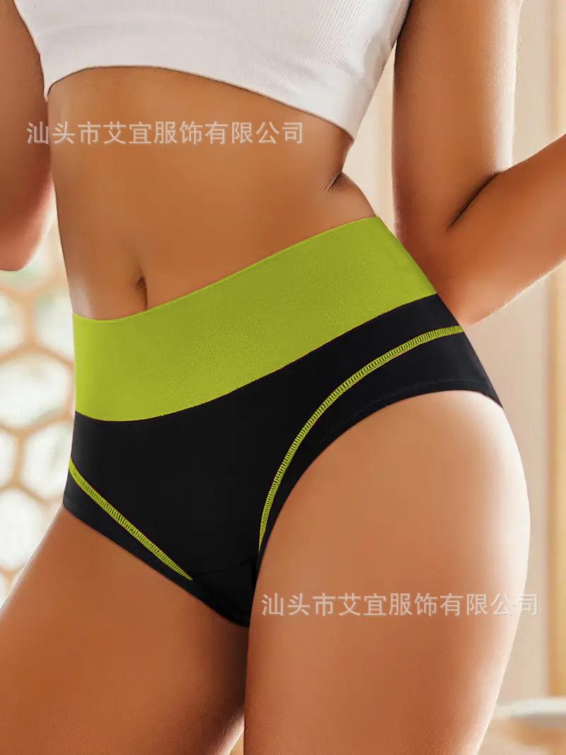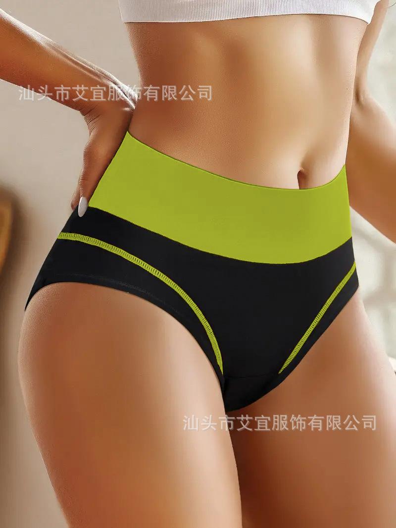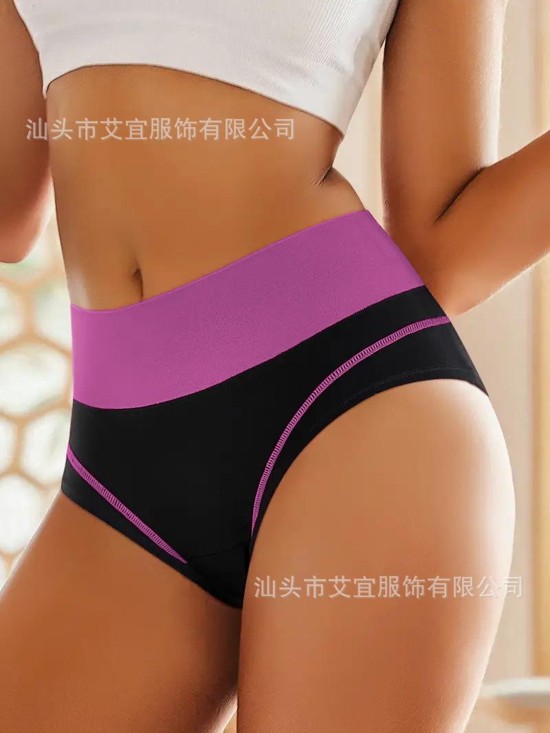 Amazon Paquete de 4 Ropa Interior Seamless de Cintura Alta para Mujer, Absorbe la Humedad, Transpirable, Diseño de Bloques de Color, Tejido Suave para Uso Diario