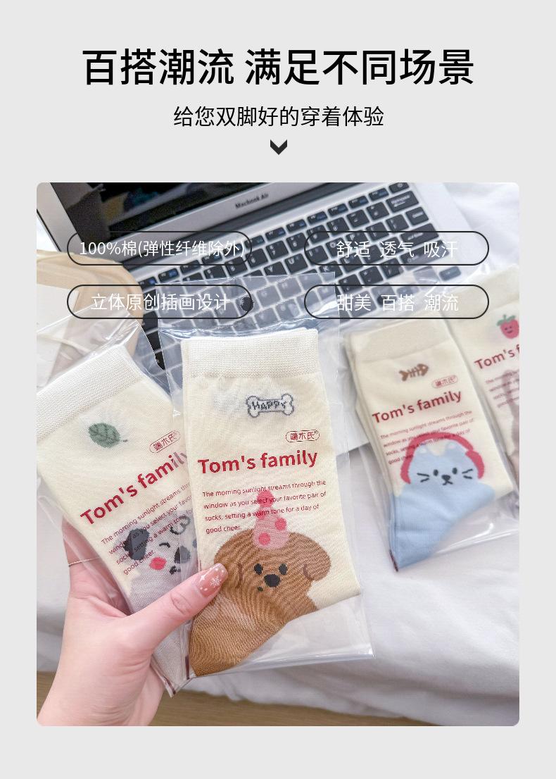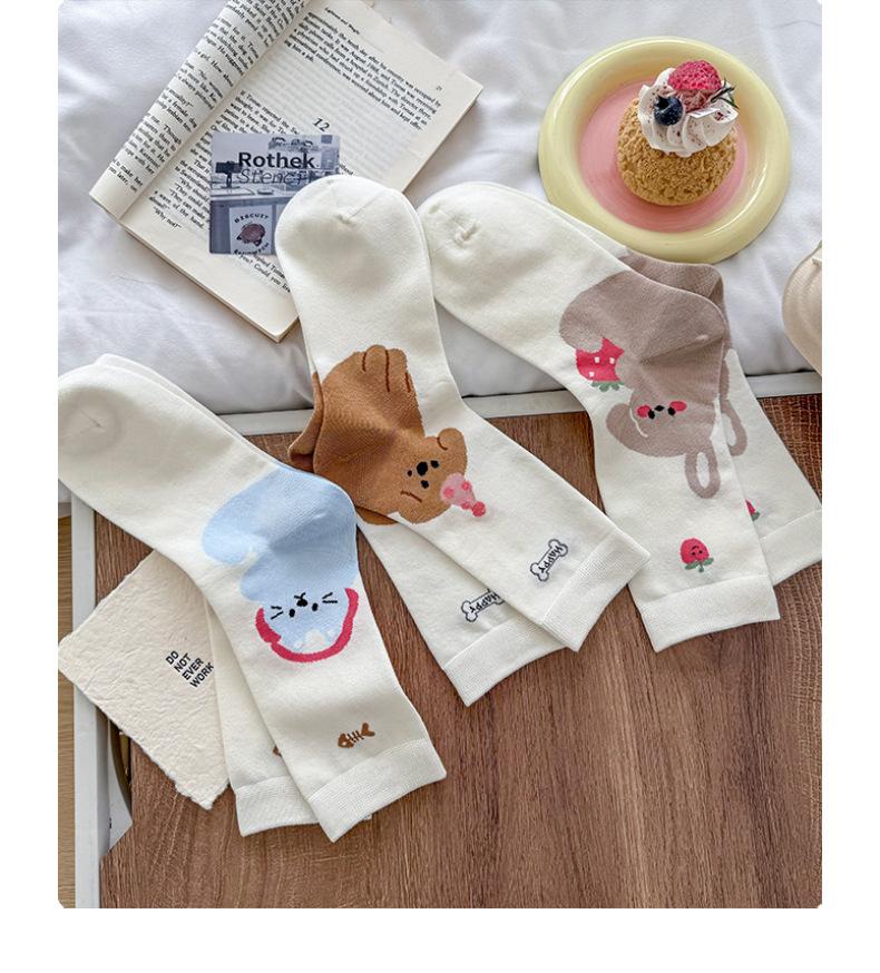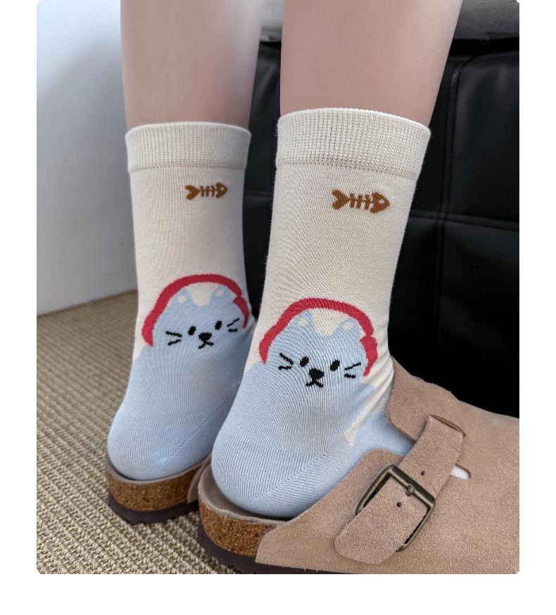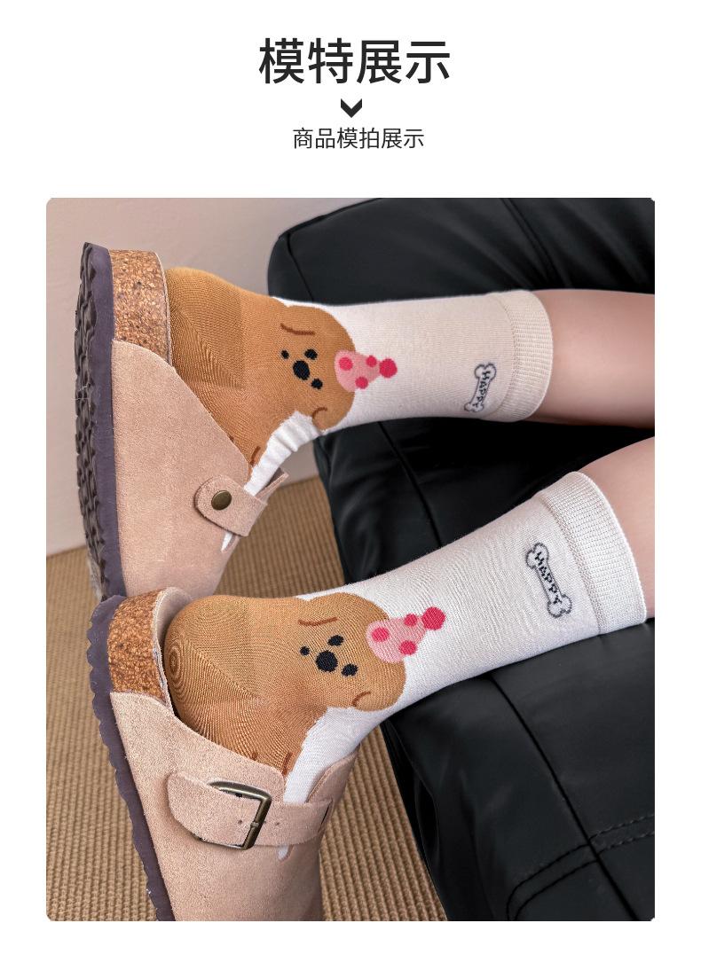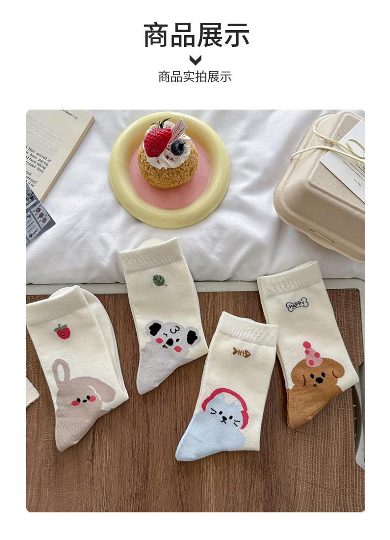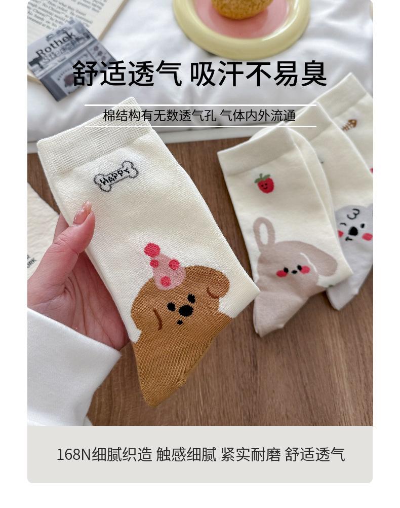Calcetines para Mujer Algodón Puro Primavera Nuevo Lindo Animal de Dibujos Animados Talón Sin Costuras Media Caña Absorbentes de Sudor Transpirables Calcetines Apilados