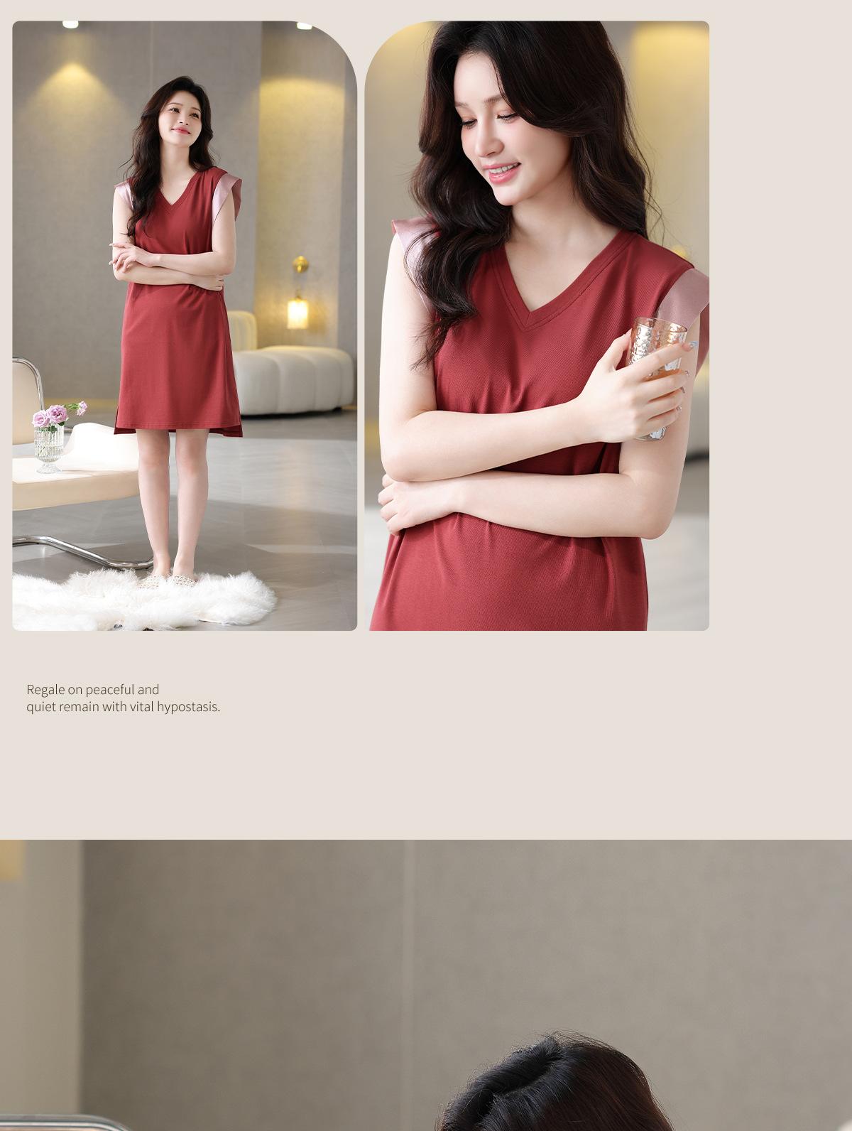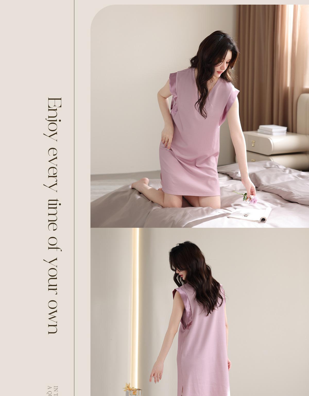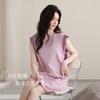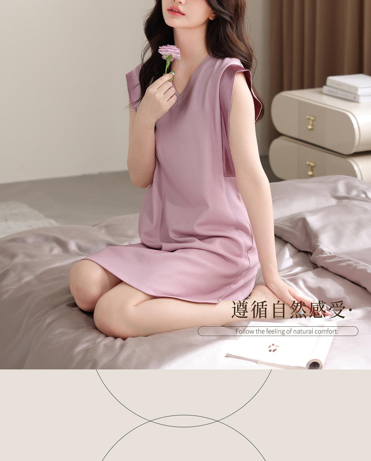 [Super Suave] Vestido de Pijama Estilo Nuevo con Almohadillas para el Busto para Mujer, Camisón Francés Modal Puro de Manga Corta Fresco para Verano