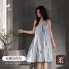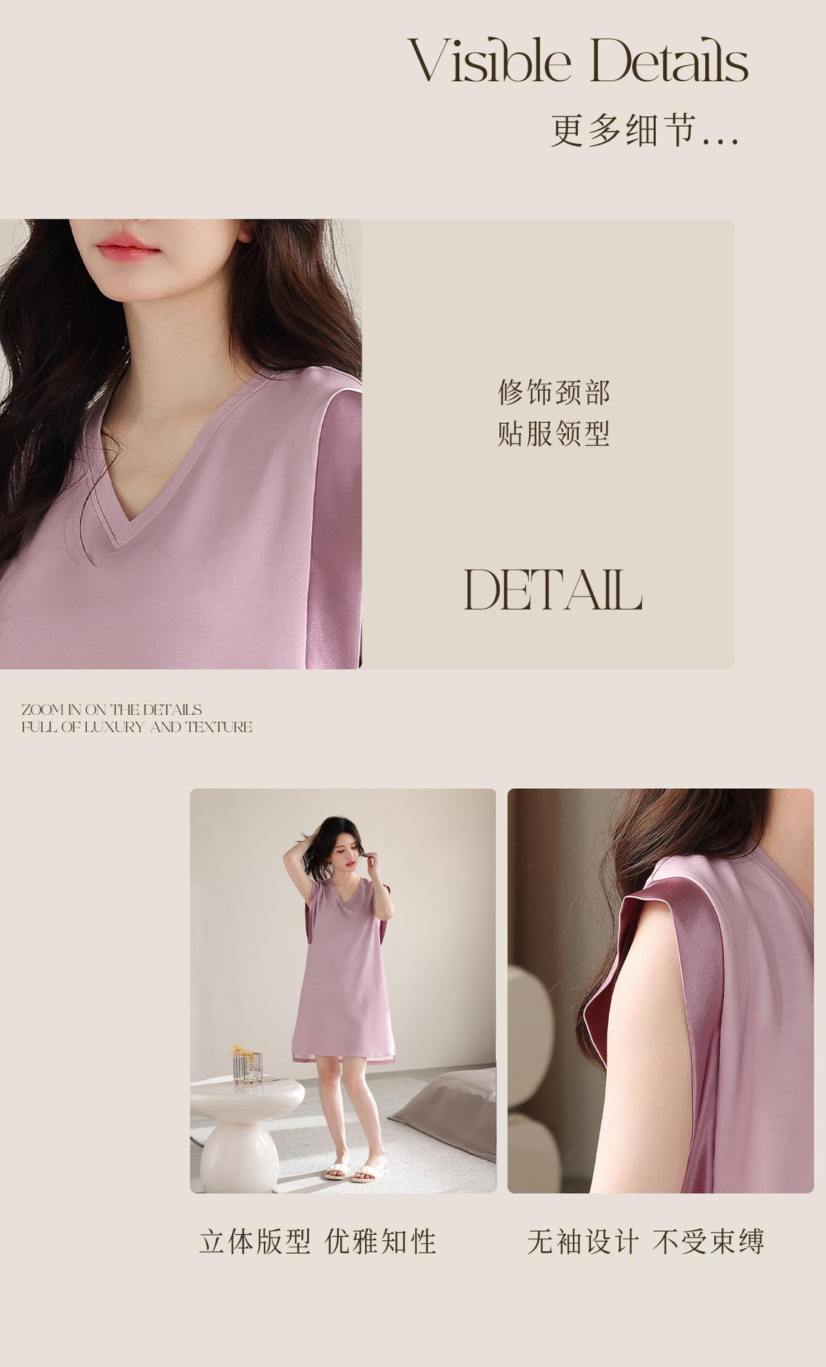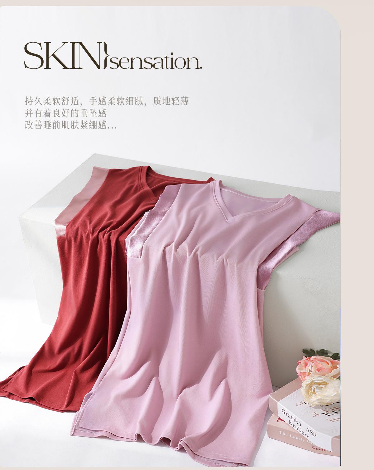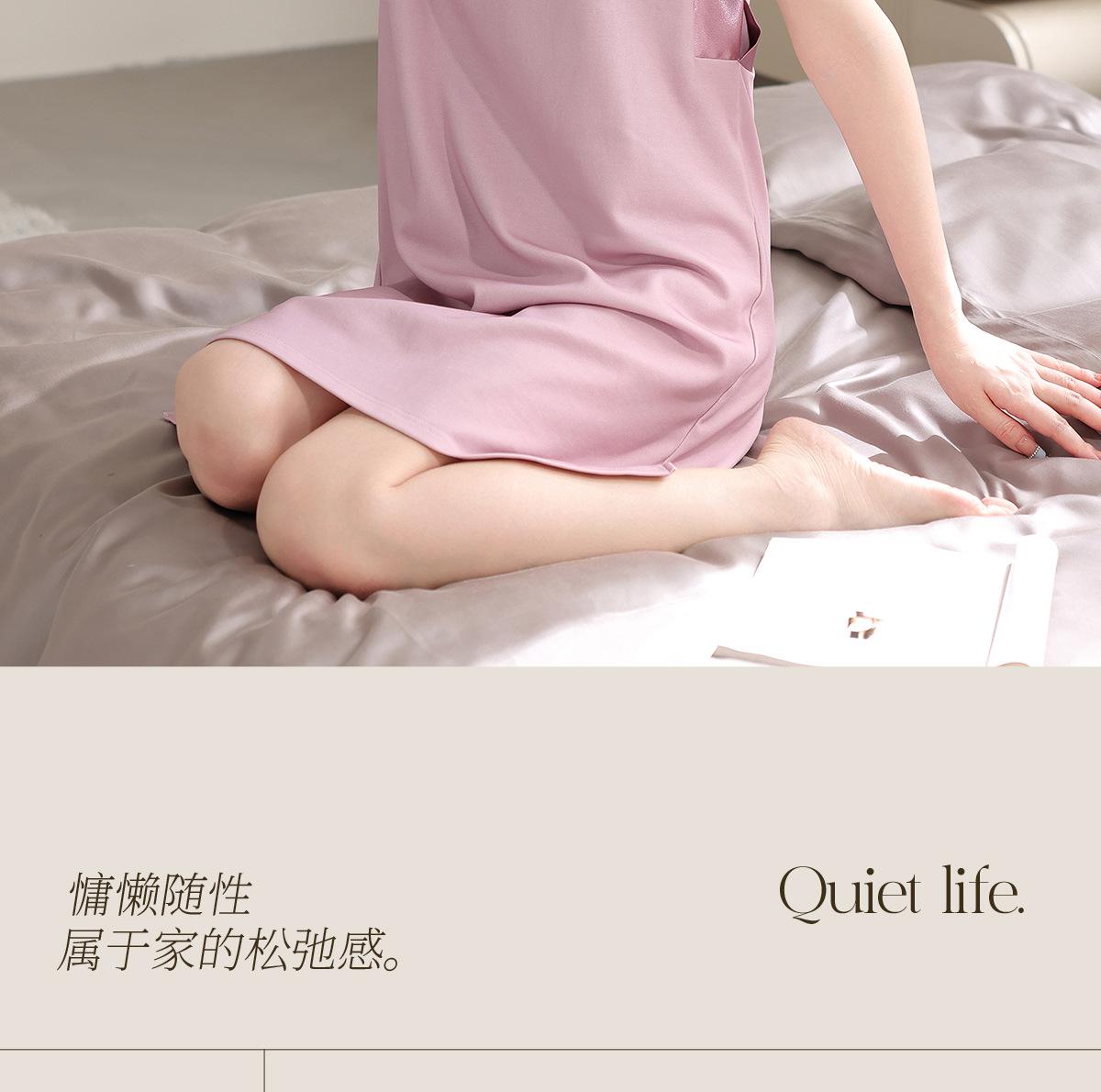 [Super Suave] Vestido de Pijama Estilo Nuevo con Almohadillas para el Busto para Mujer, Camisón Francés Modal Puro de Manga Corta Fresco para Verano