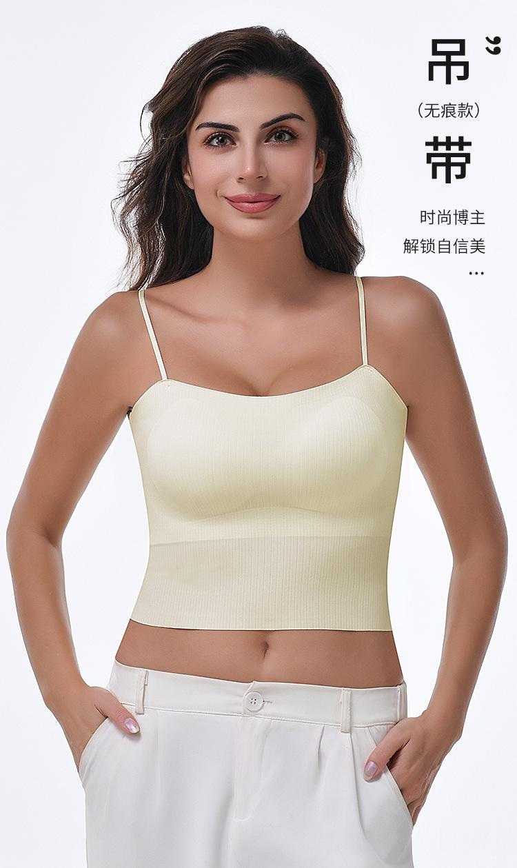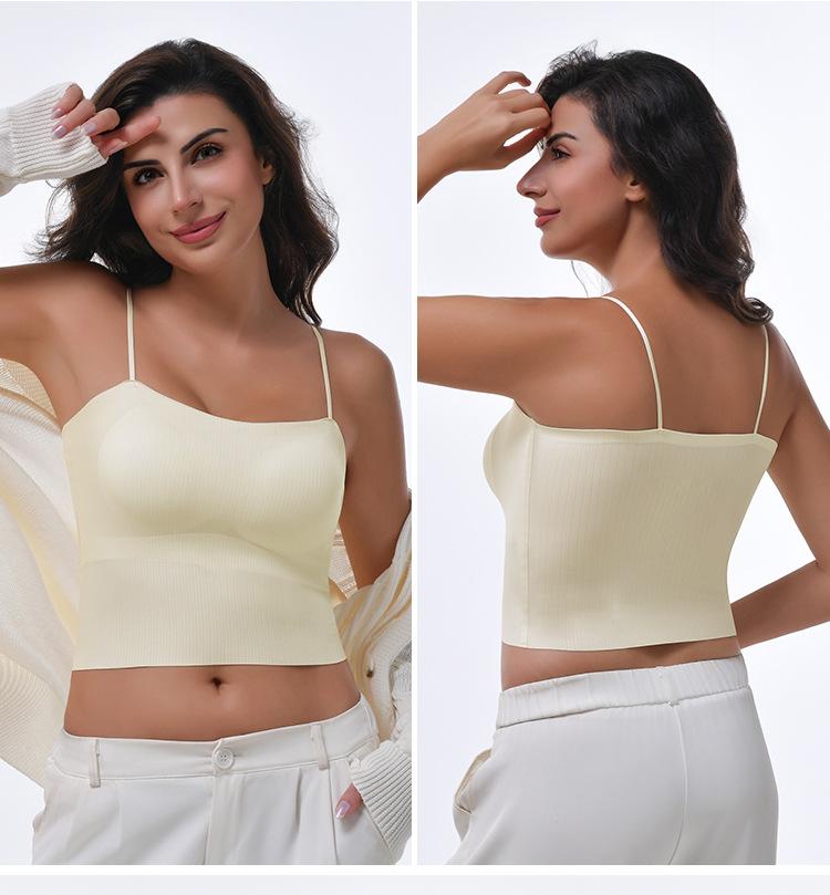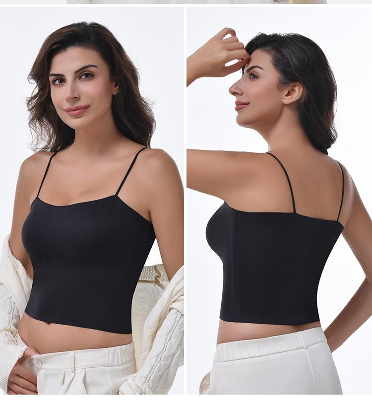 Ropa Interior de Espalda Hermosa sin Marcas para Mujer Pecho Pequeño Push-up de Una Pieza Copa Fija Verano Camisola Delgada Copa que No se Mueve para Usar por Fuera