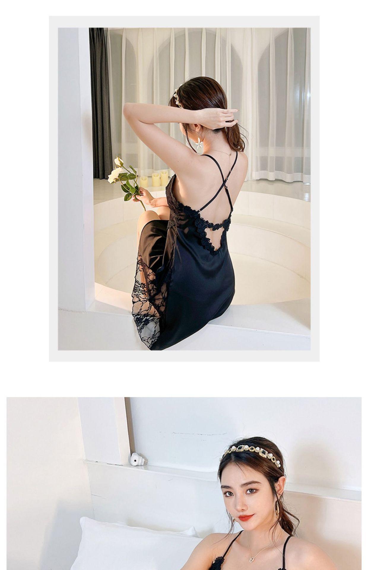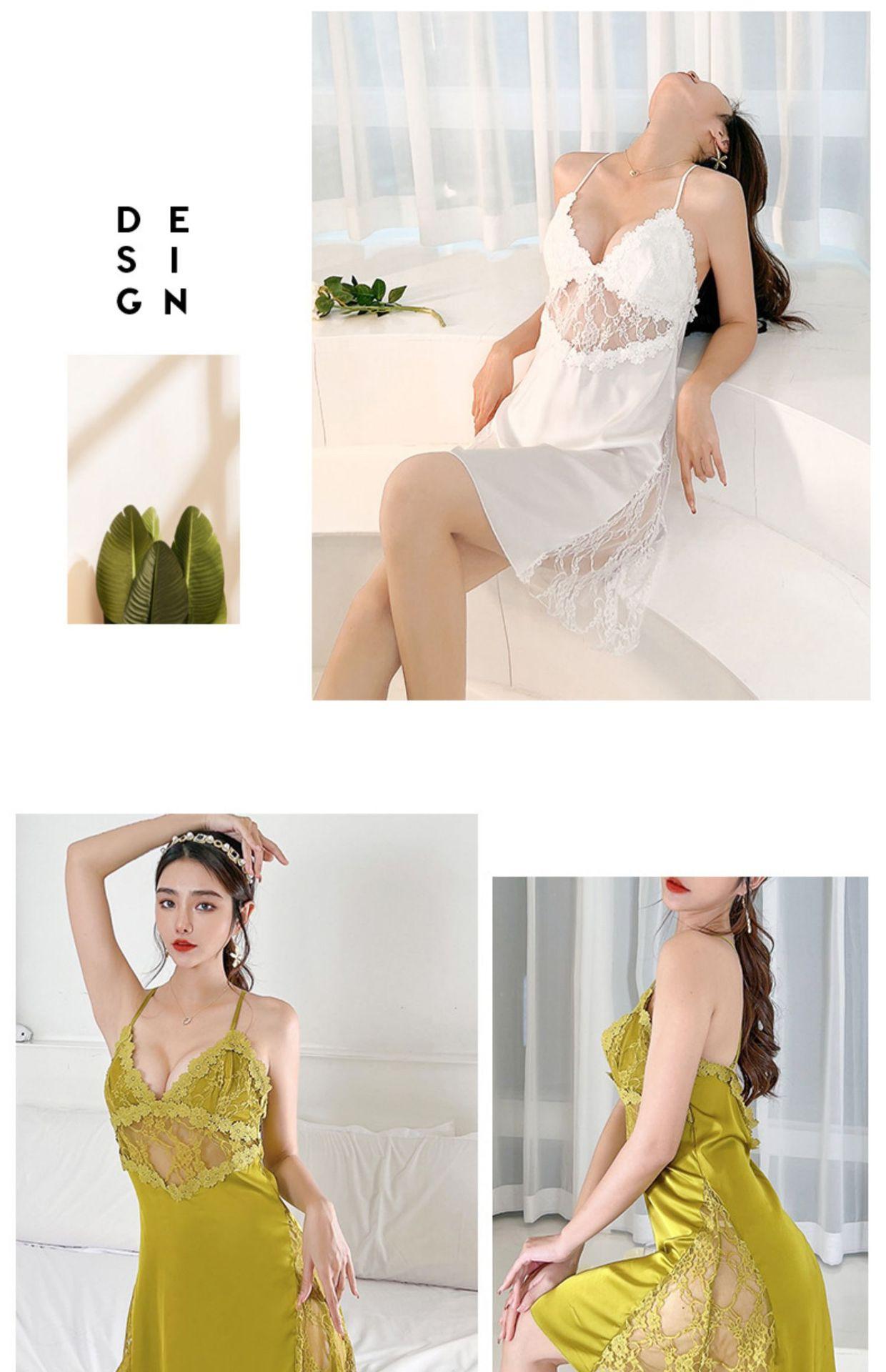 WXLK Satin Silk-Black Nightgown with Chest Pad, WXLK Satin Silk-White Nightgown with Chest Pad, WXLK Satin Sil...