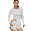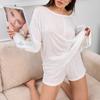 Pijama transpirable de jacquard de punto europeo y americano de comercio exterior de primavera y verano de 2025, traje de manga larga con pantalones cortos, ropa de hogar de dos piezas para mujer